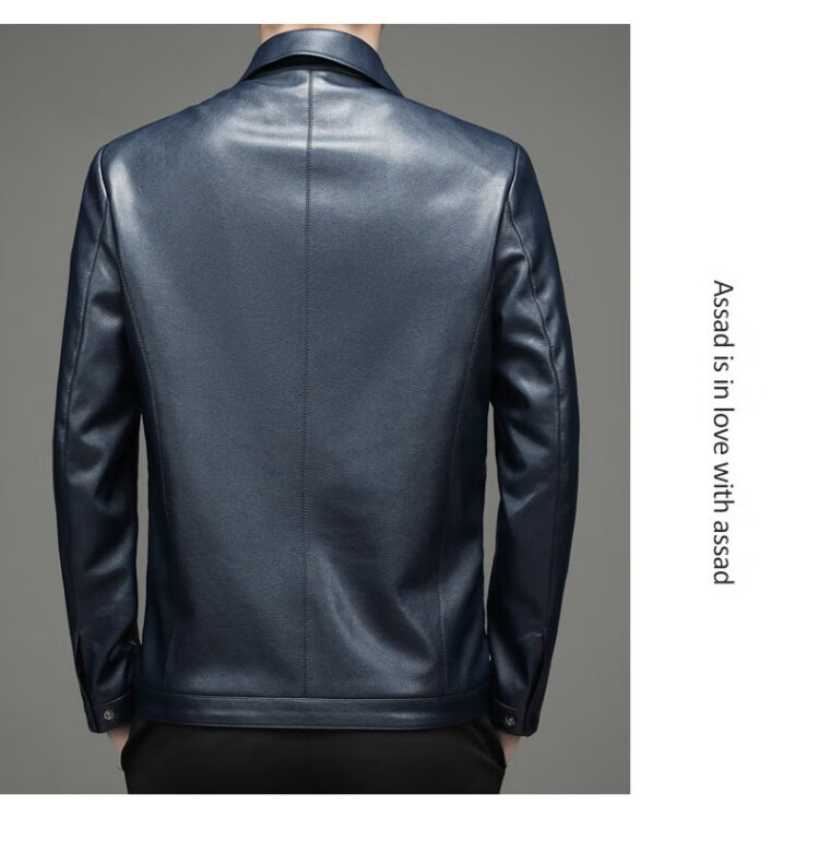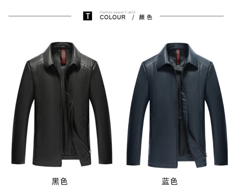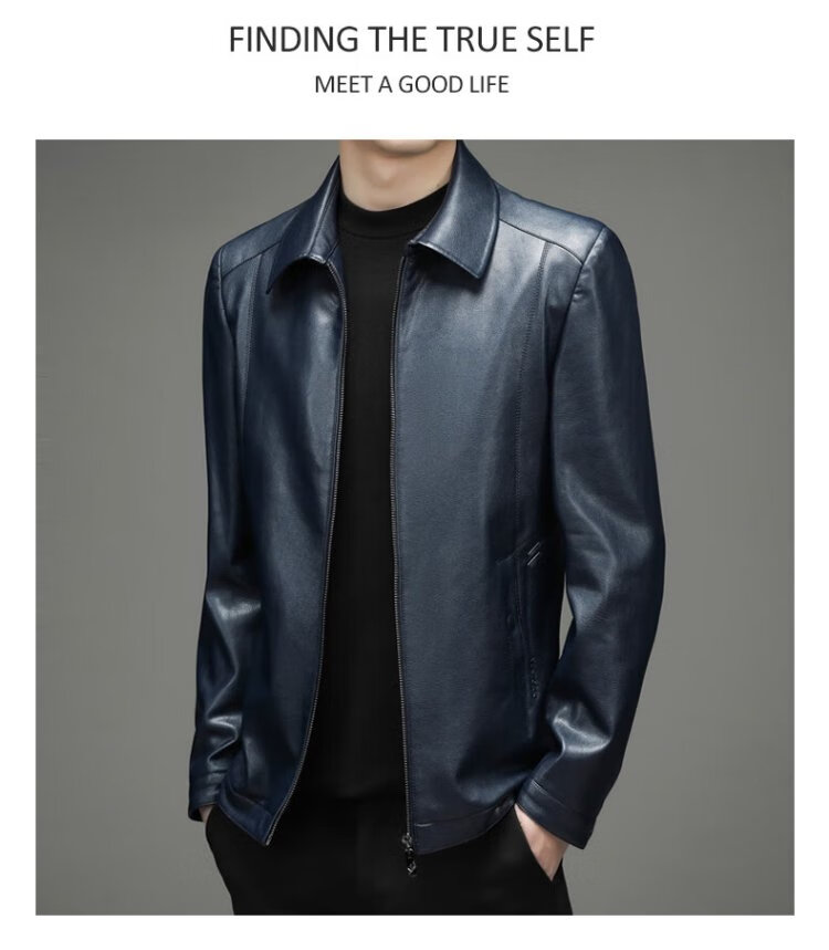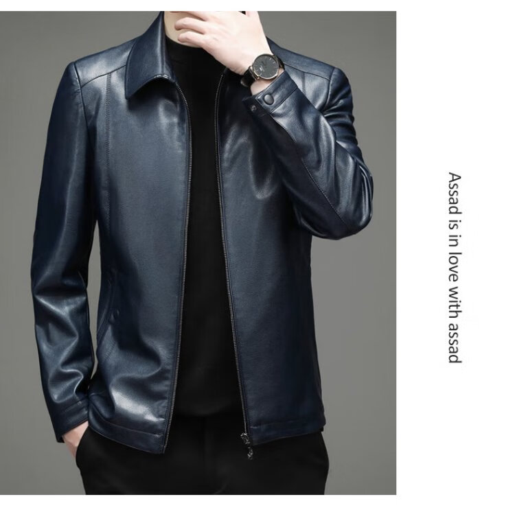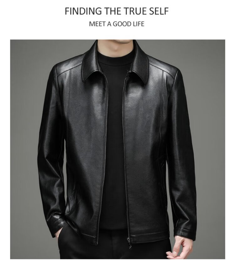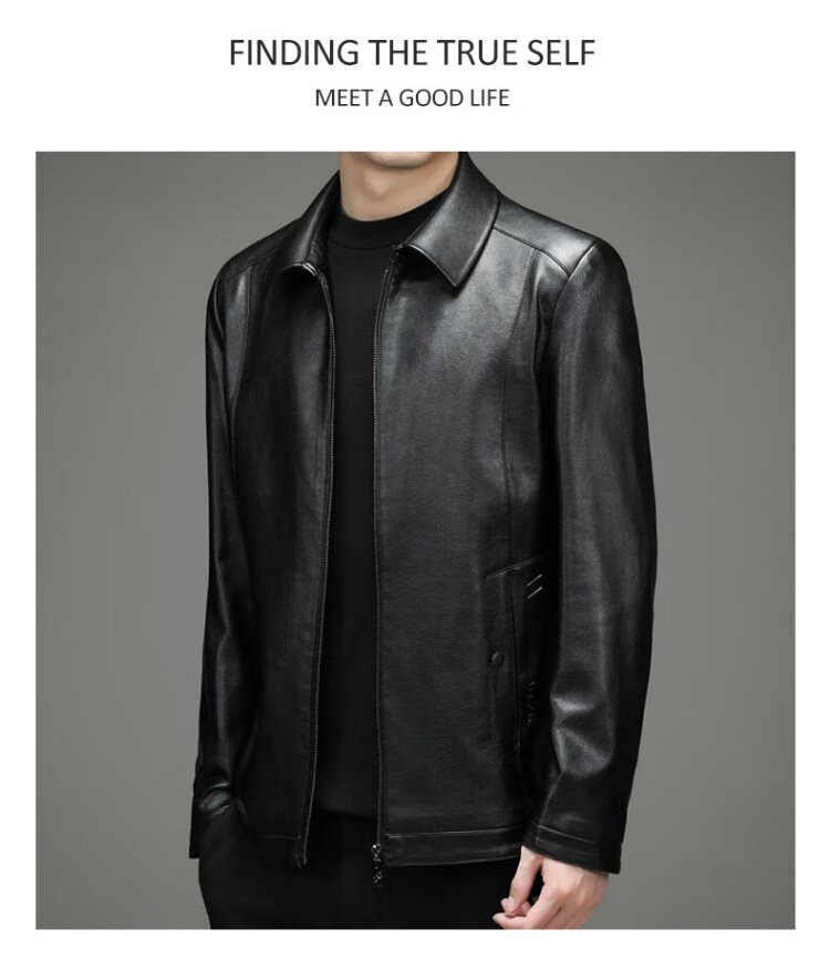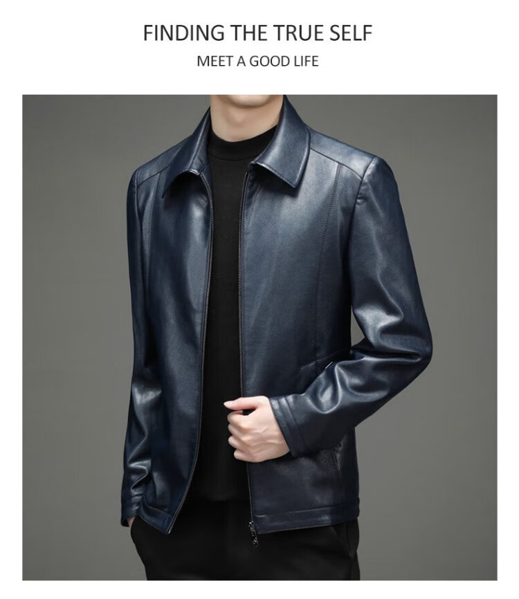 Yalu leather jacket men's spring and autumn business casual lapel solid color jacket young and middle-aged men's dad wear comfortable jacket top