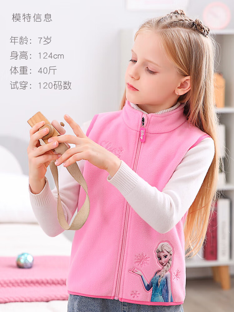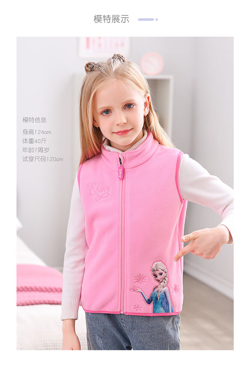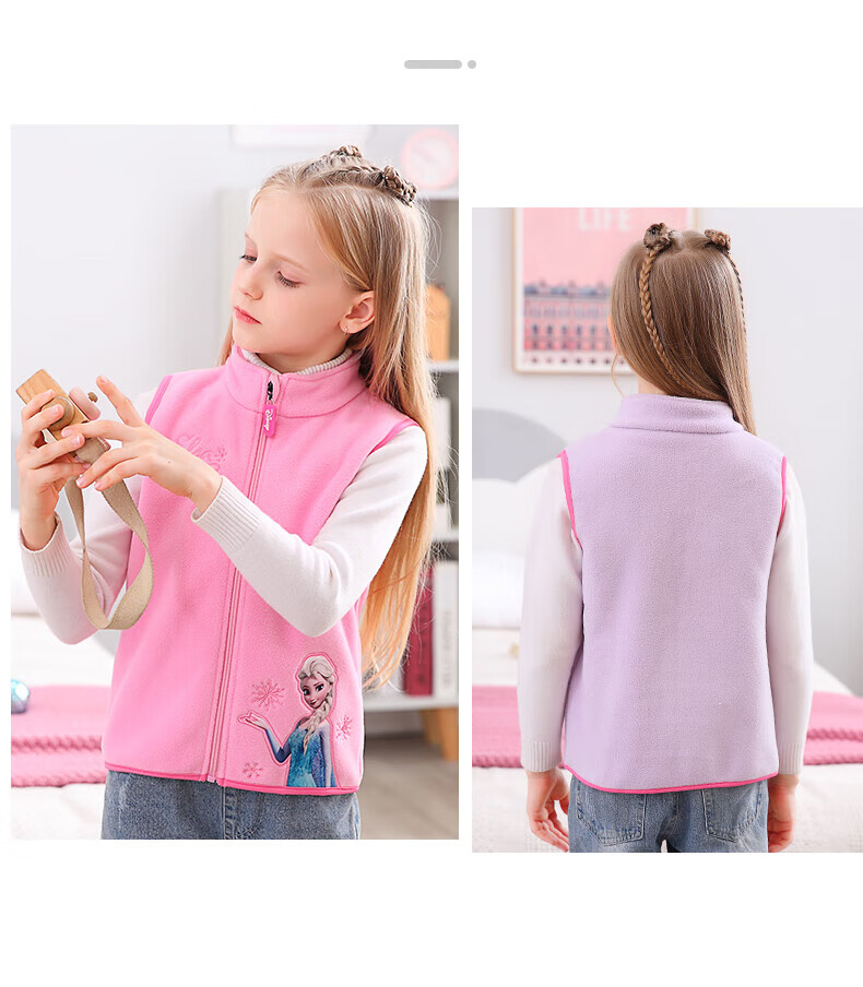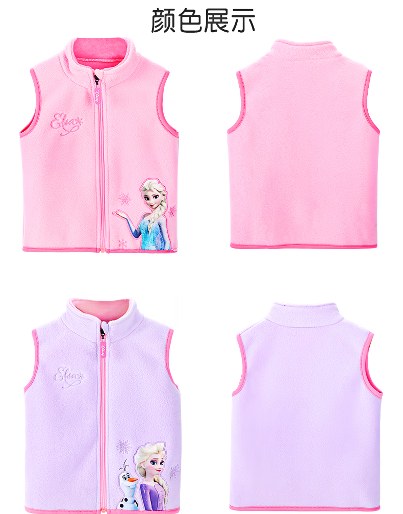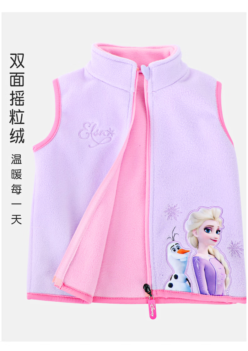 Disney Elsa Girls' Vest Autumn and Winter Children's Vest Spring and Autumn Outerwear Elsa Princess Baby Polar Fleece Vest JXAM3001D Purple 130