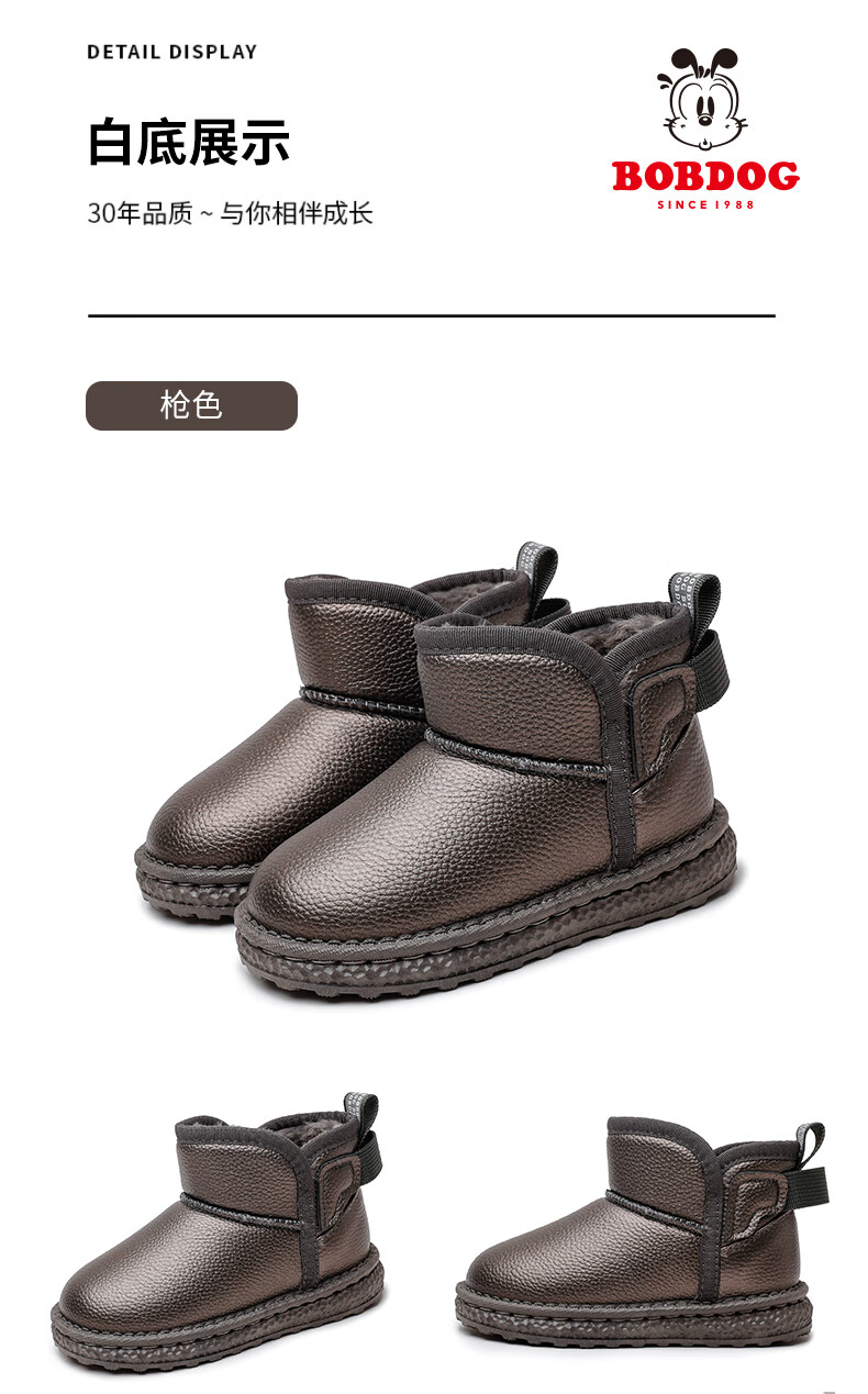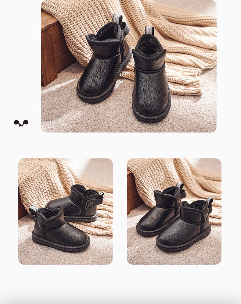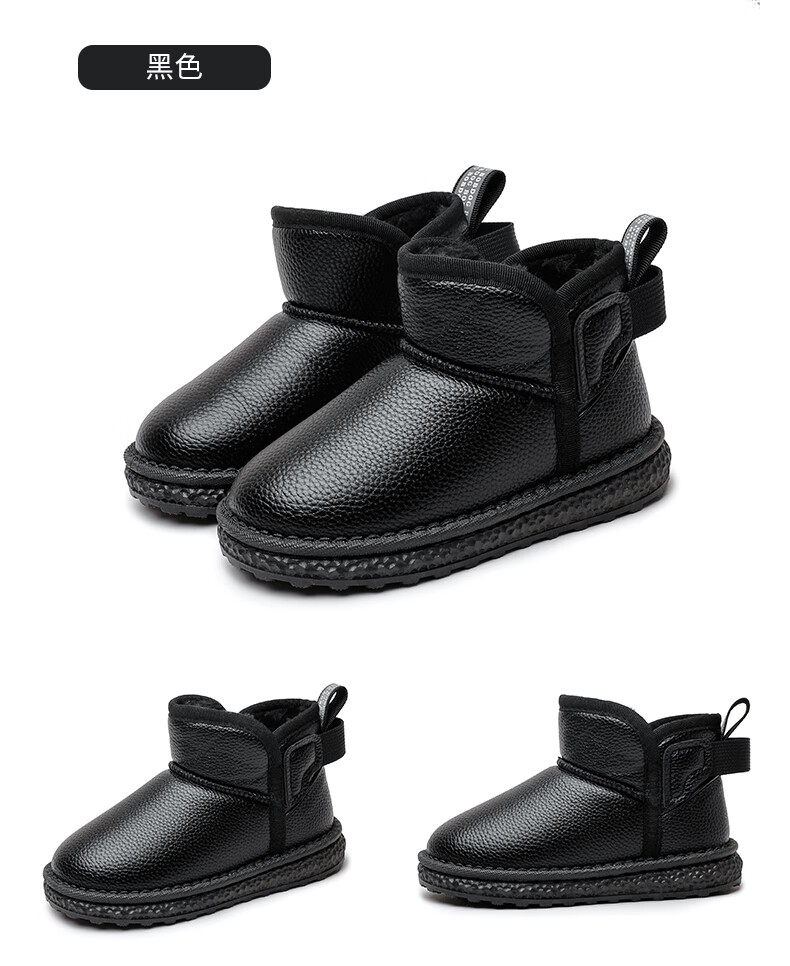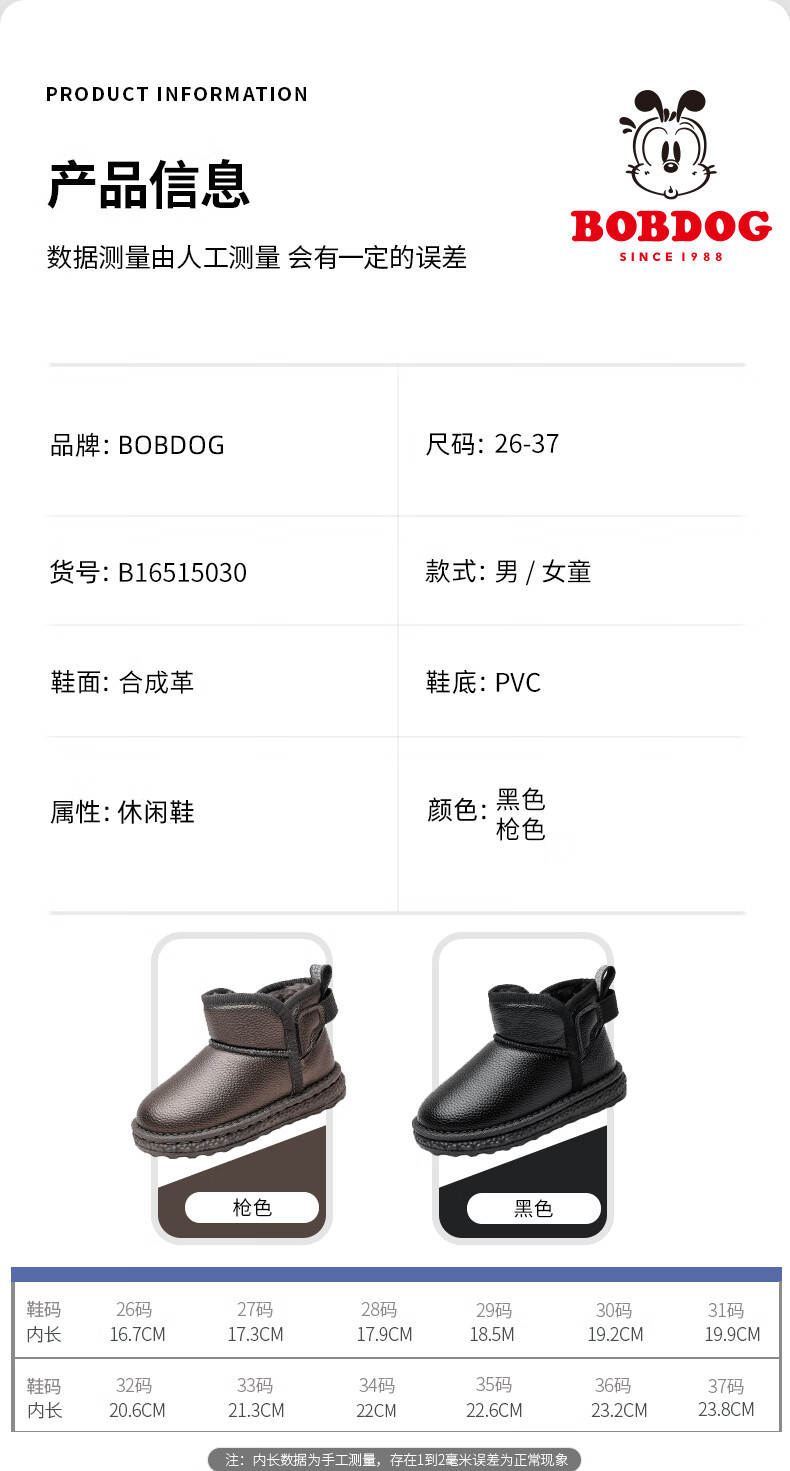 BOBDOG BOBDOG children's shoes girls boots winter soft sole plus velvet children's snow boots B16515030 black 26
