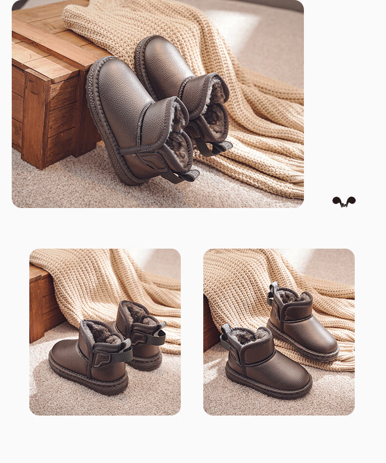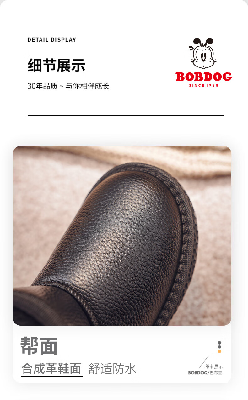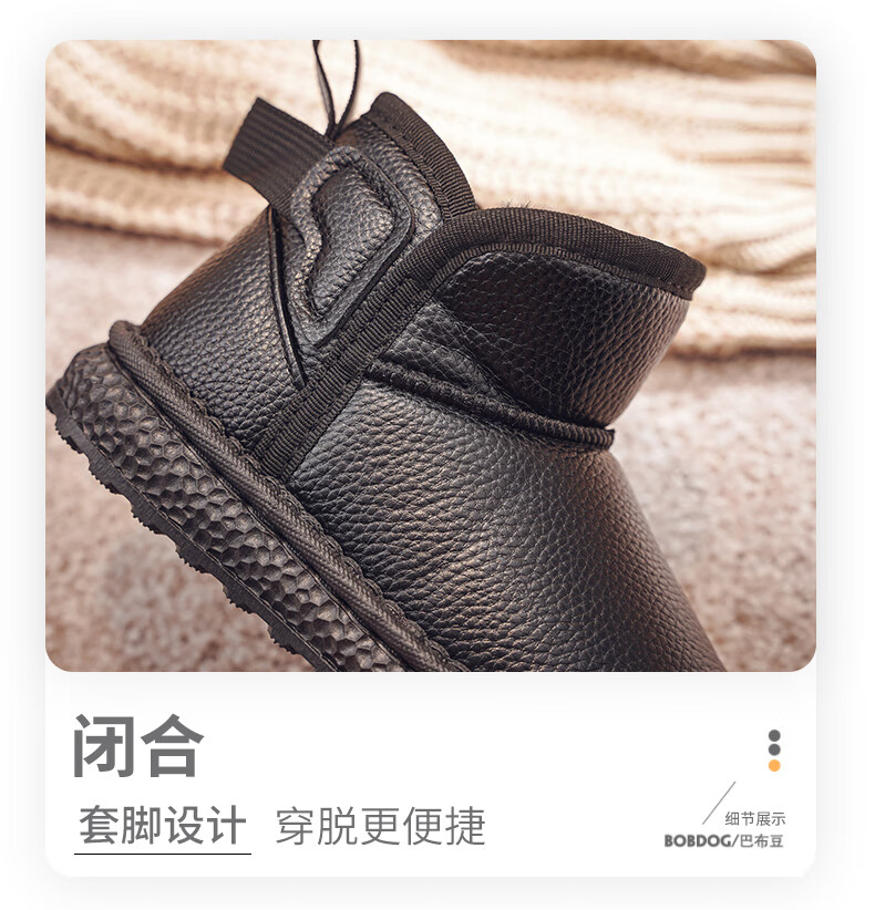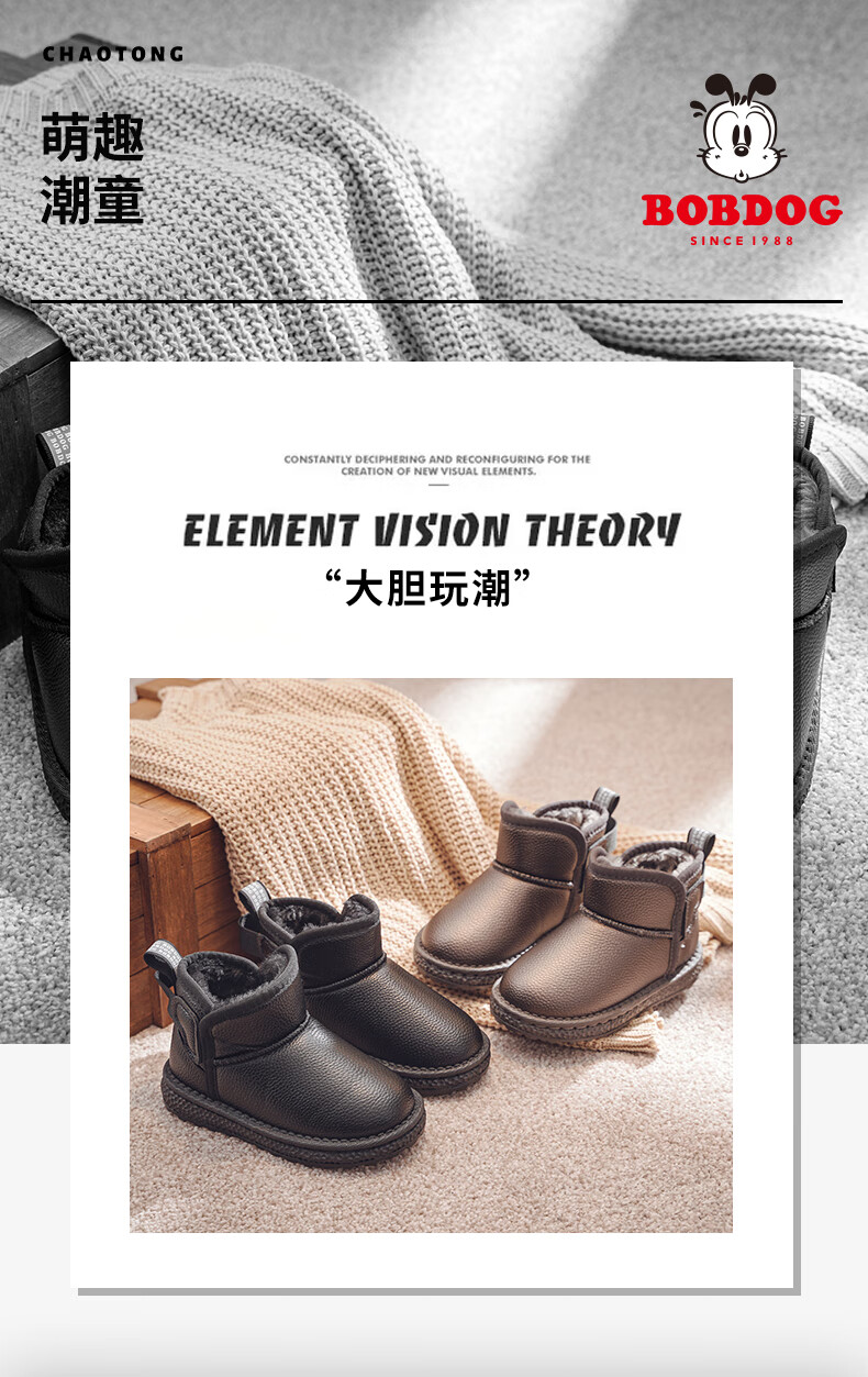 BOBDOG BOBDOG children's shoes girls boots winter soft sole plus velvet children's snow boots B16515030 black 26