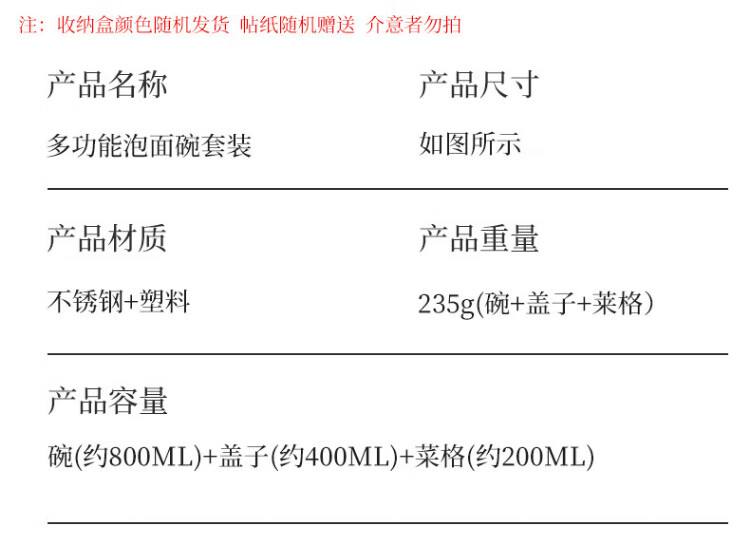 Baijie instant noodle bowl with lid lunch box student lunch box instant noodle bowl soup bowl rice bowl household bowls and chopsticks tableware set multi-layer bowl