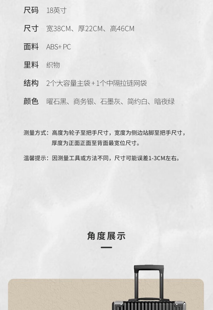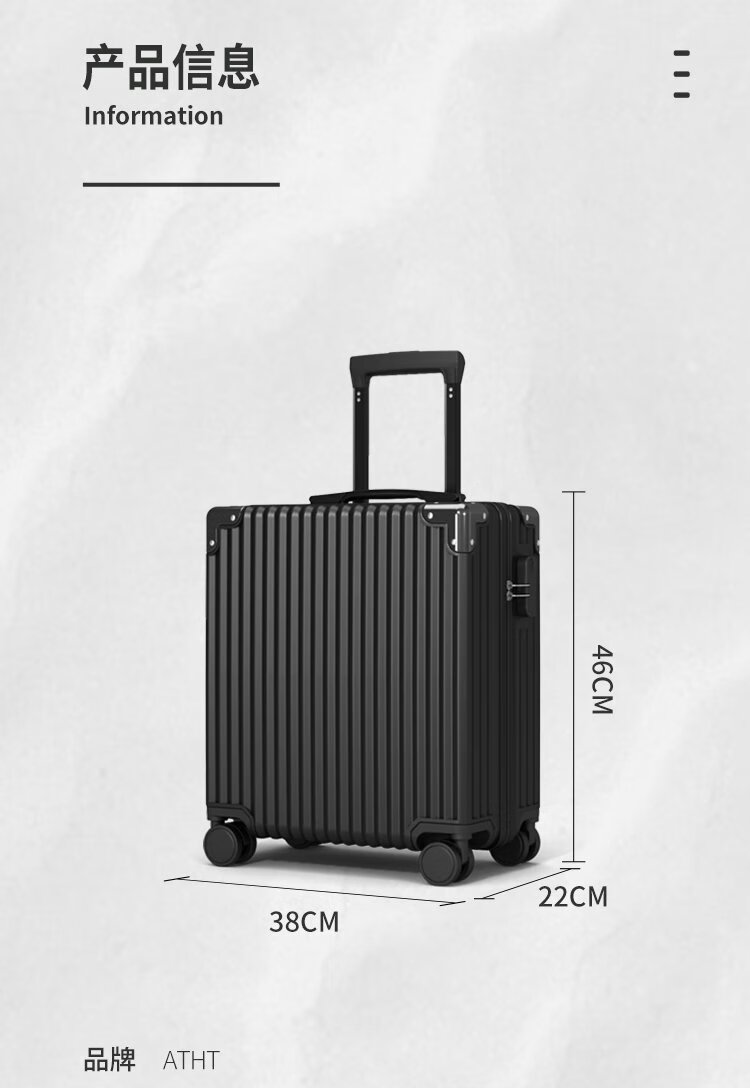 ATHT行李箱男小型旅行箱飞机商务登机箱18英寸密码拉杆箱女皮箱子黑色