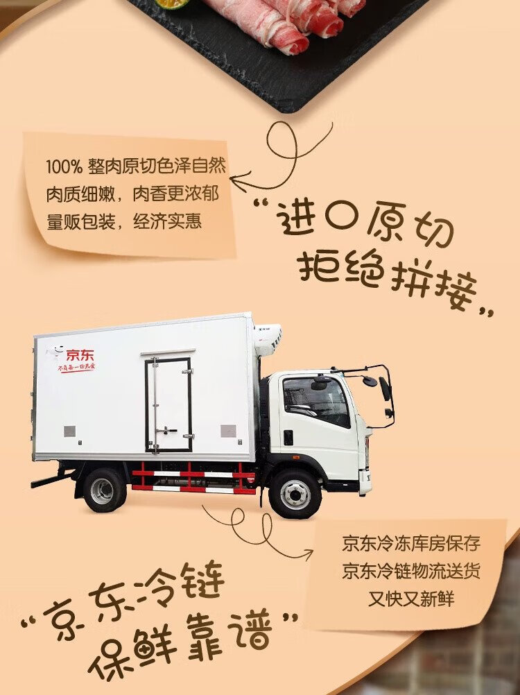 Xianjingcai imported from Brazil raw cut beef brisket rolls 2Jin Jin equals 0.5kg Shabu-shabu hot pot ingredients Jingdong's own brand real raw cut