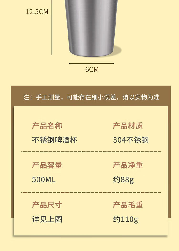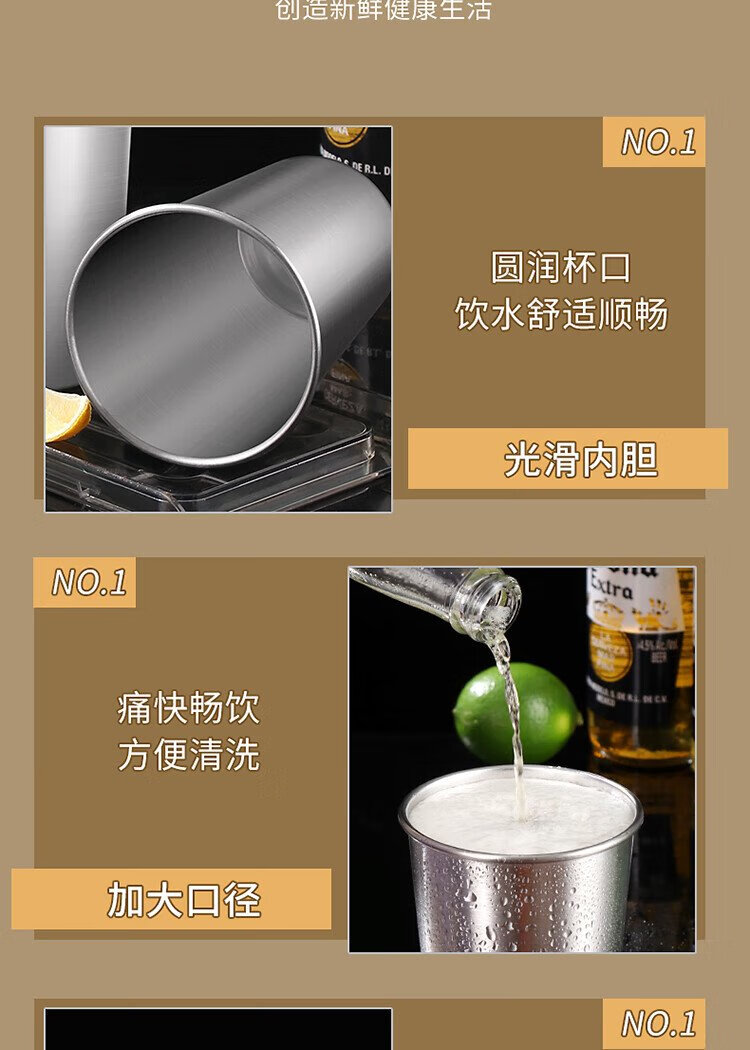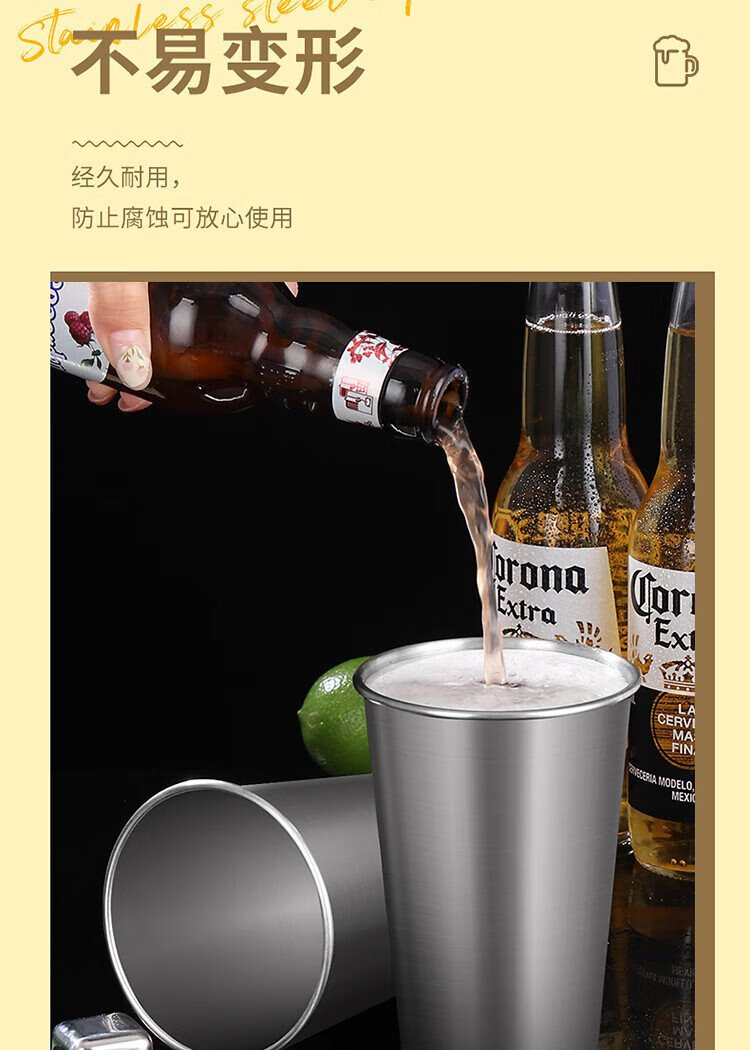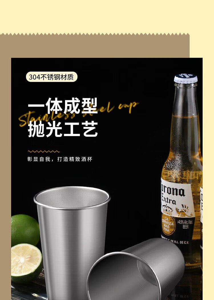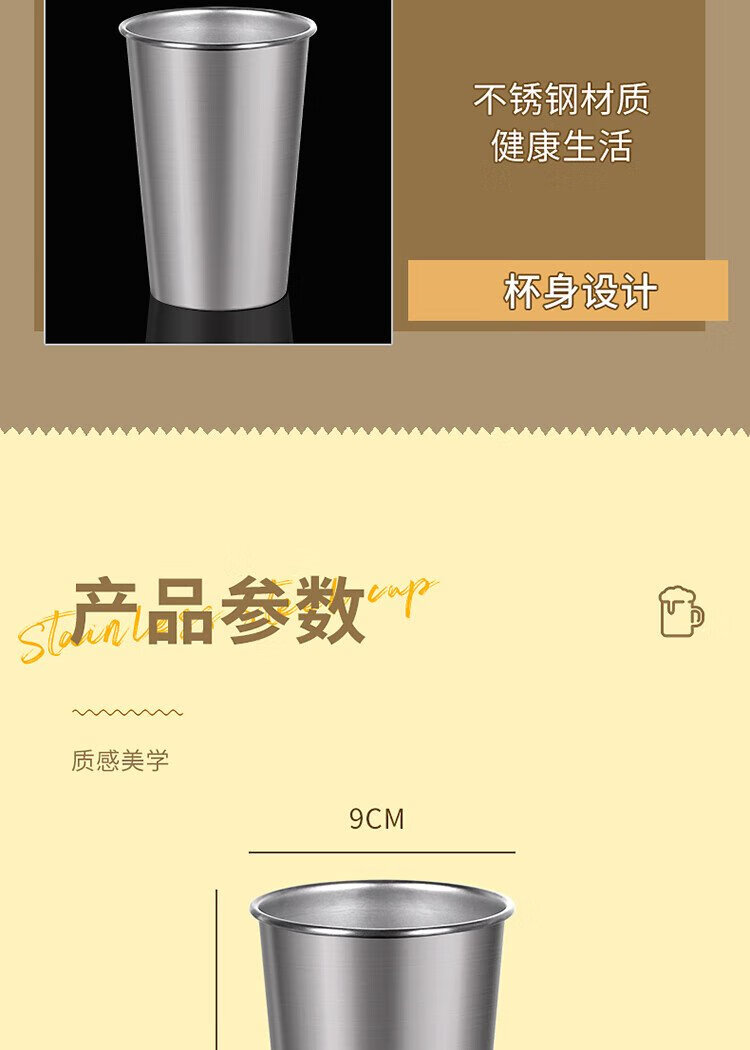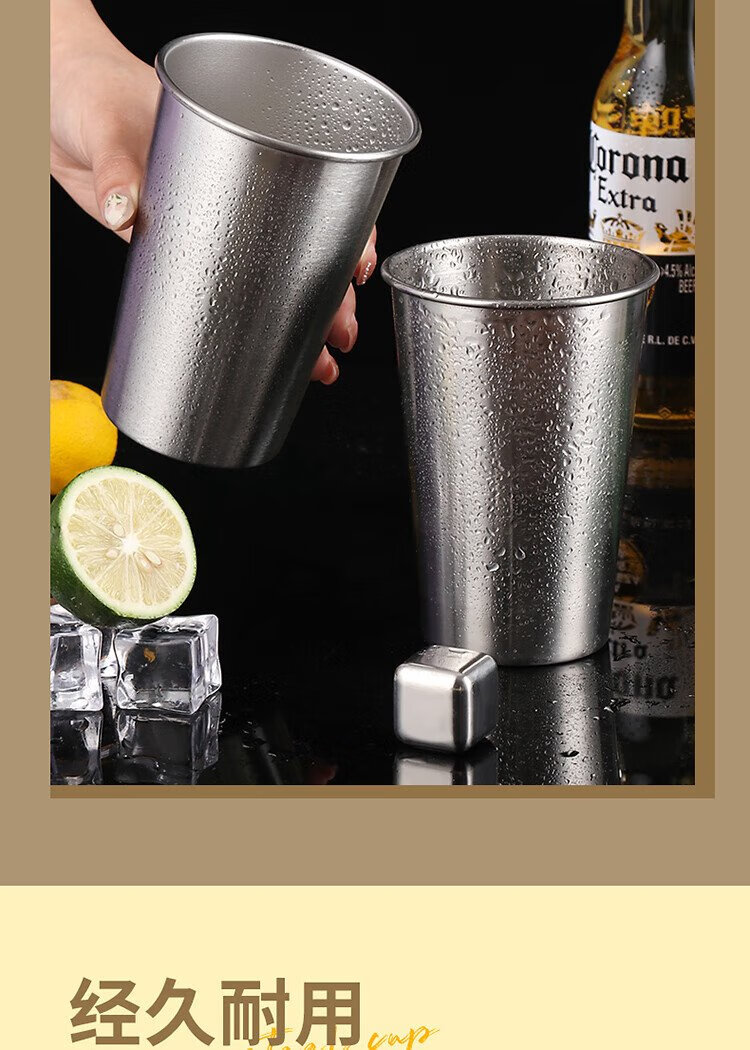 Baijie 304 stainless steel water cup, beer cup, anti-fall juice cup, cold drink cup, tea cup, 500ml outdoor camping cup