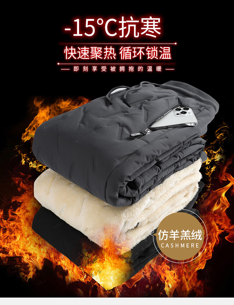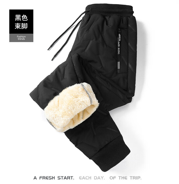 Scarecrow (MEXICAN) casual pants for young men, plus fleece pants for men, thickened warm cotton pants, windproof and waterproof pants, black leggings 2XL