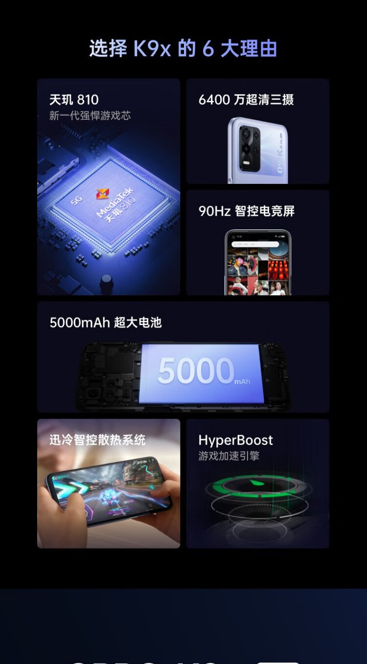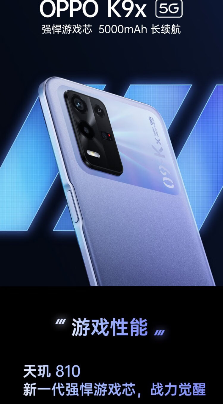 OPPO K9x 5G mobile phone 8+256GB Obsidian Warrior Dimensity 810 5000mAh long battery life 64 million triple camera camera phone