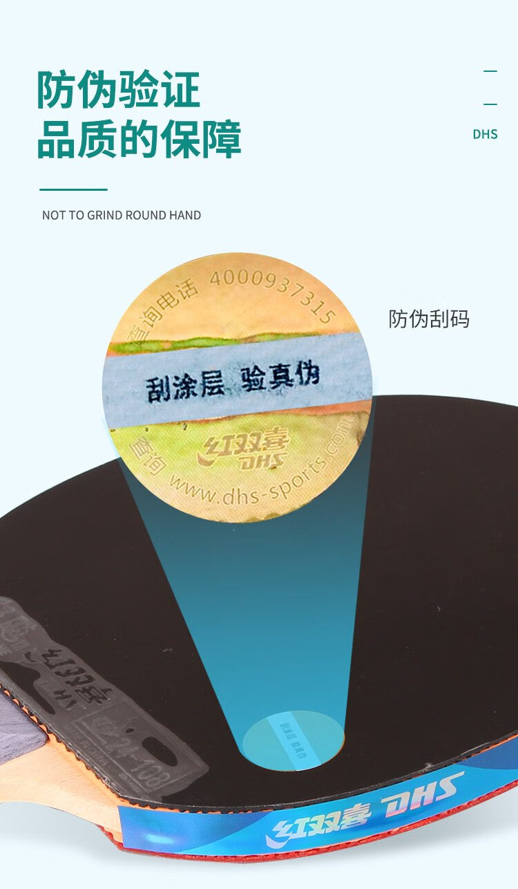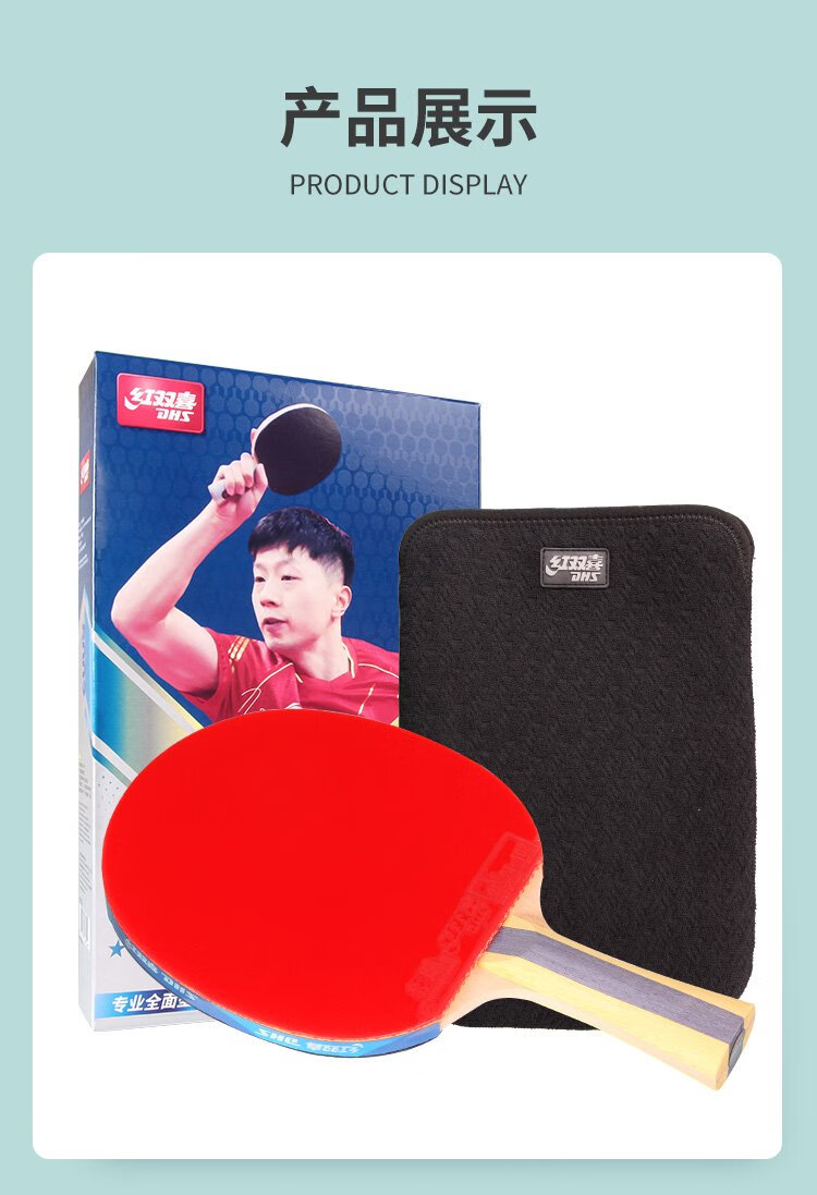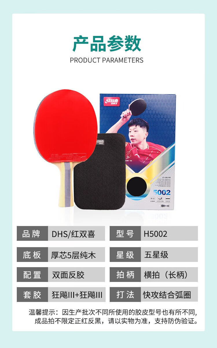 Red Double Happiness 5-star horizontal double-sided reverse-adhesive table tennis racket H5002 contains 6 table tennis balls