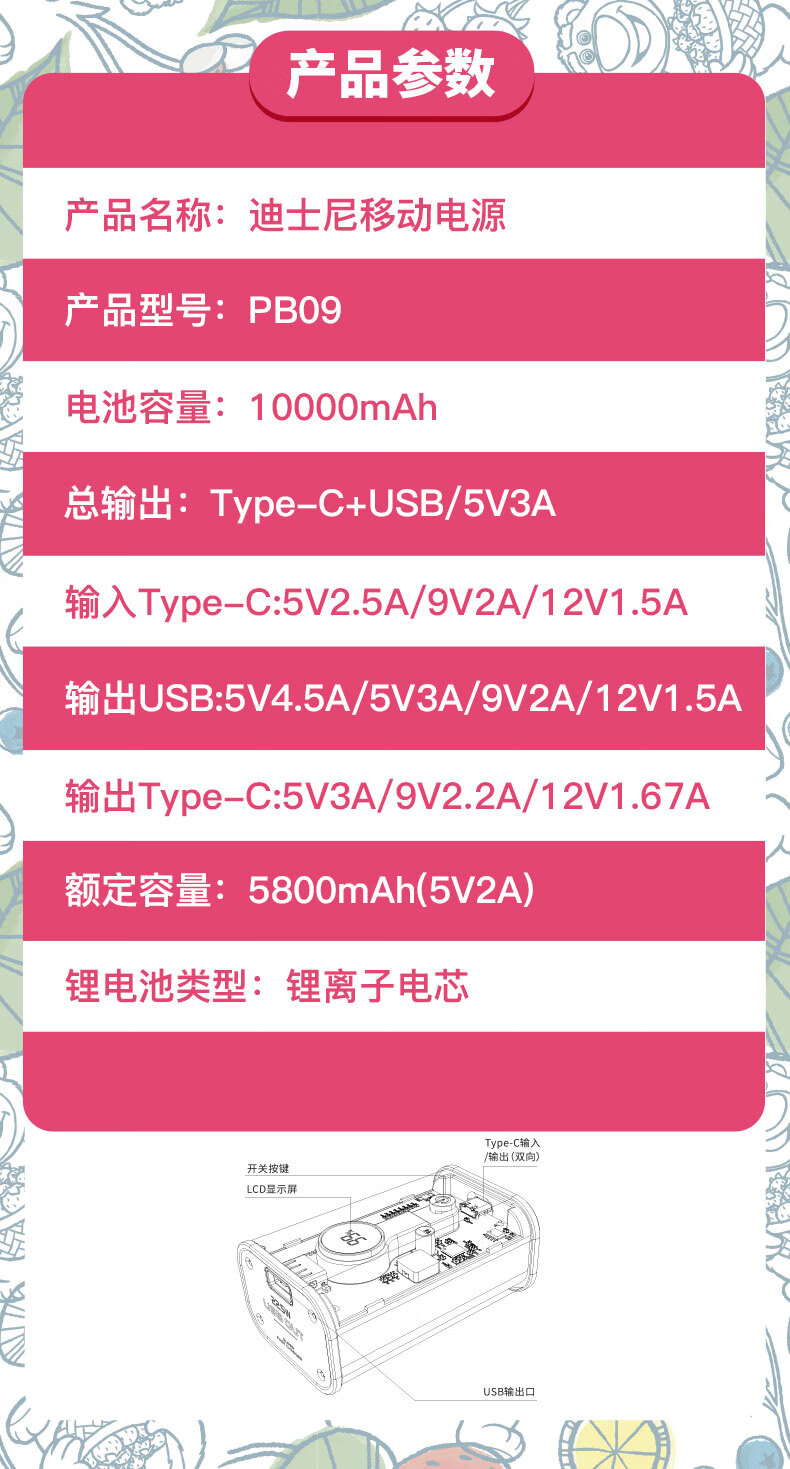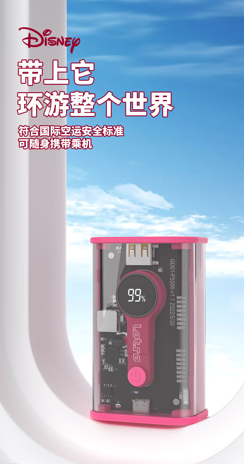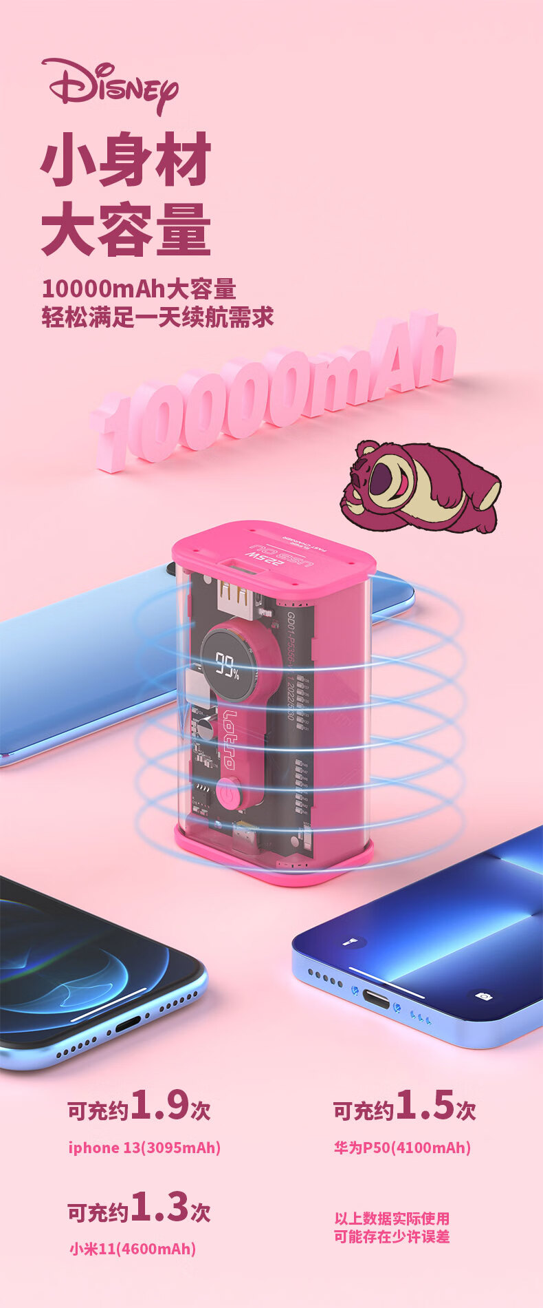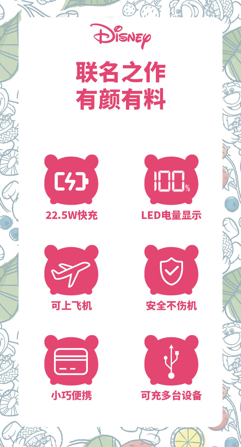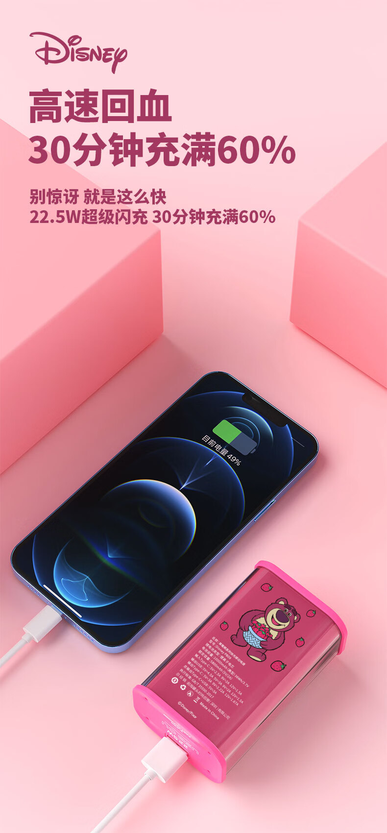 Disney Power Bank 22.5w Flash Charging 10000 mAh Large Capacity Power Bank Portable Outdoor LED Digital Display Power Bank Mobile Phone Universal PB09 Cute Strawberry Bear
