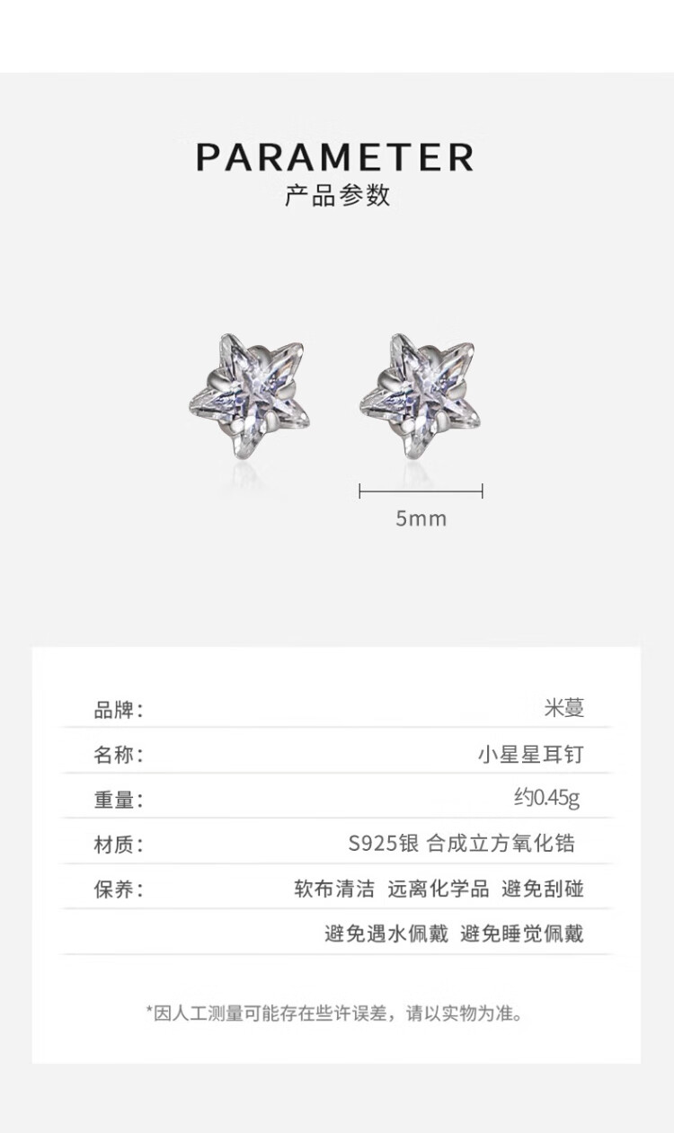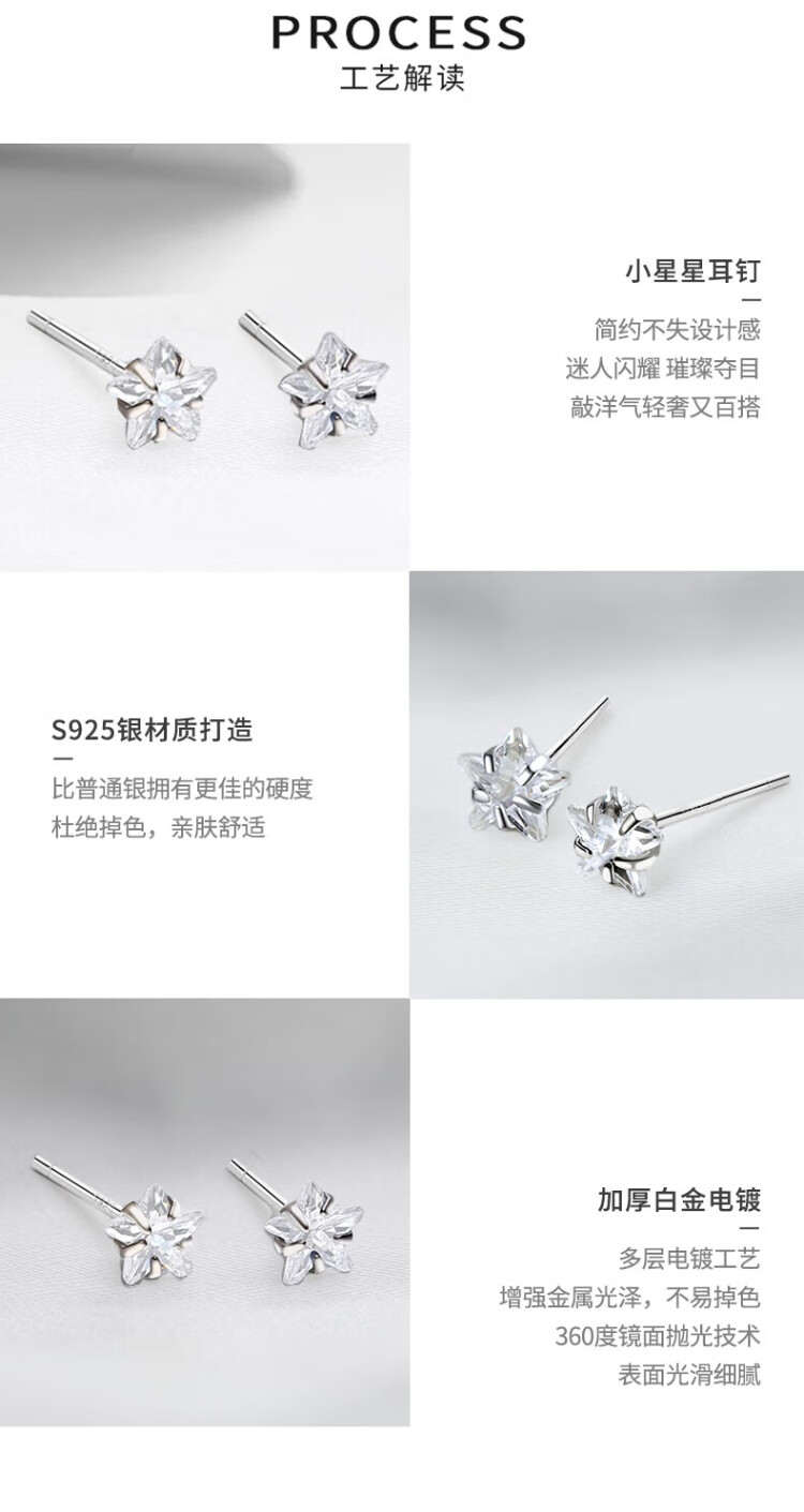 Miman (MIMORE) S925 silver small star earrings for women, trendy, high-end, temperamental earrings, small and simple, no need to pick for sleeping, and pierced ears