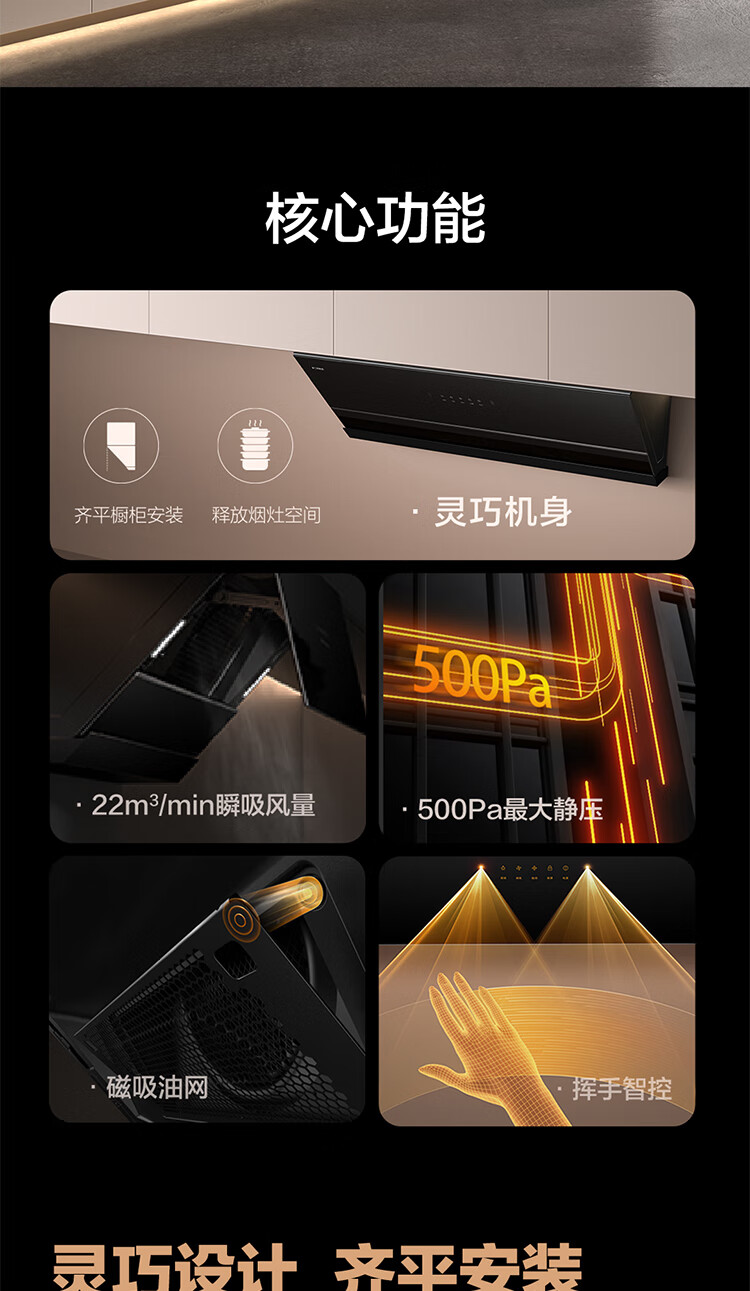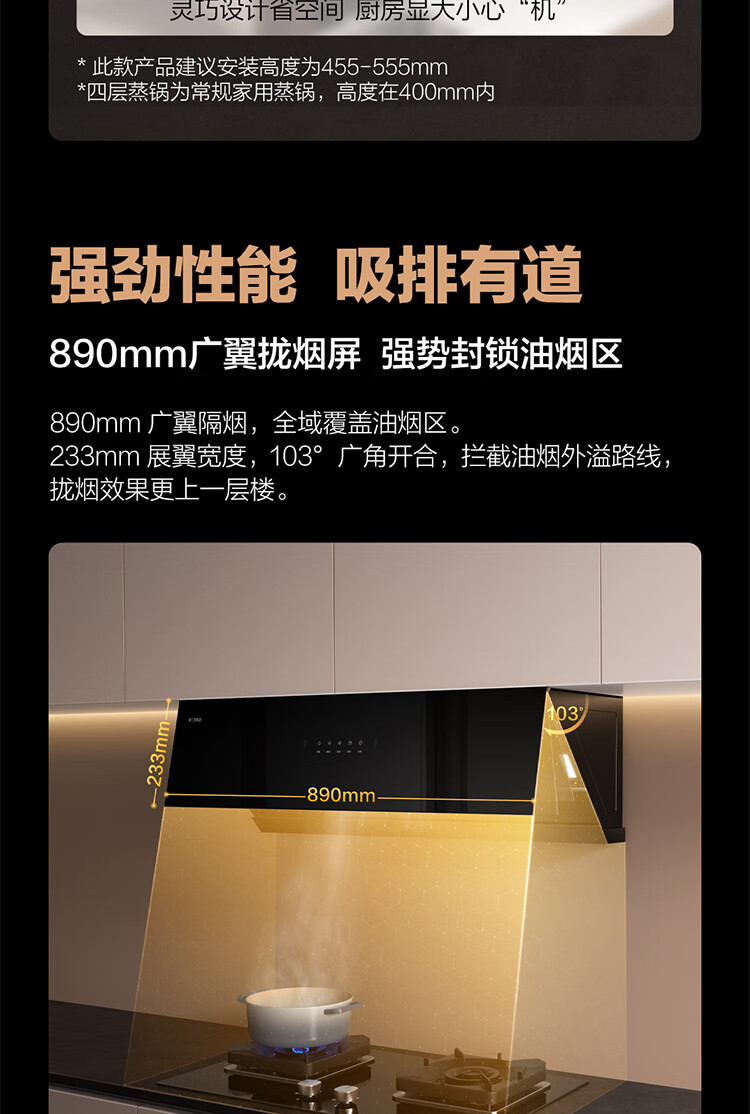 FOTILE range hood stove set side suction range hood set 22 large air volume*wave wave intelligent control 5.0kW*stove hood series JCD7A+TH26B natural gas/liquefied gas