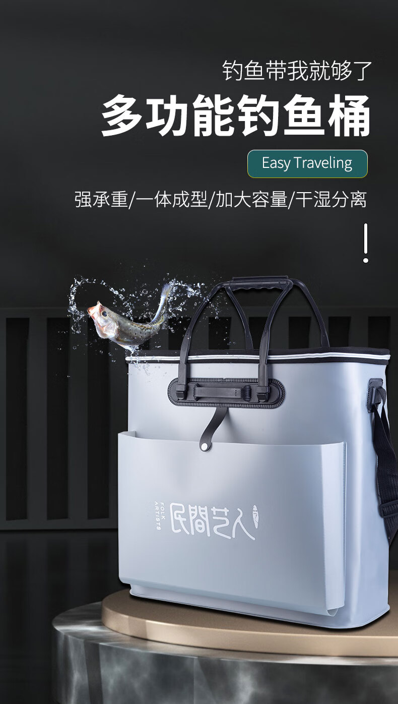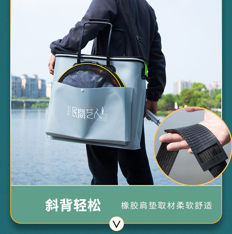 Folk artist's large thickened live fish bucket dry EVA one-piece foldable wet separate fish protection bucket fishing fish bucket