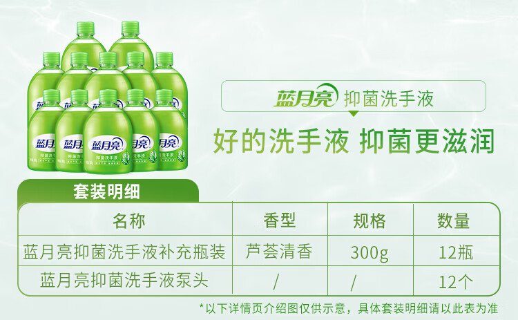 Blue Moon hand sanitizer with rich foam, moisturizing and moisturizing, aloe vera, healthy and antibacterial 99.9% 300g*12 bottles 7.2Jin Jin equals 0.5kg
