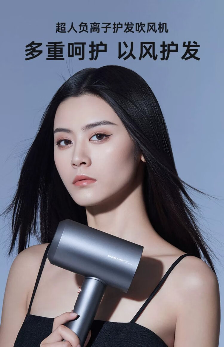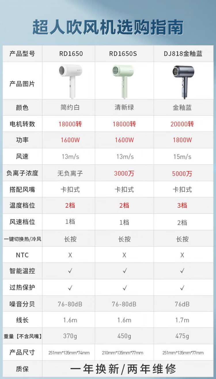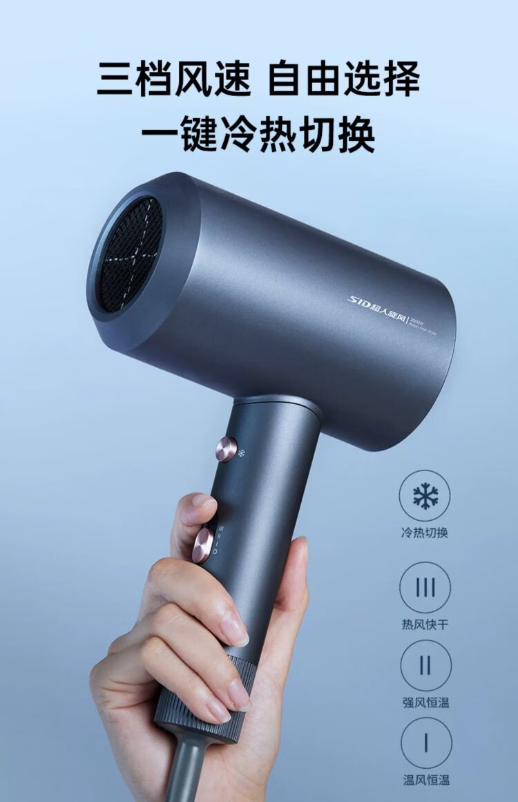 Superman travel essential hair dryer household hair dryer high power negative ion high wind speed drying low noise portable hair dryer birthday gift DJ818 gold glaze blue