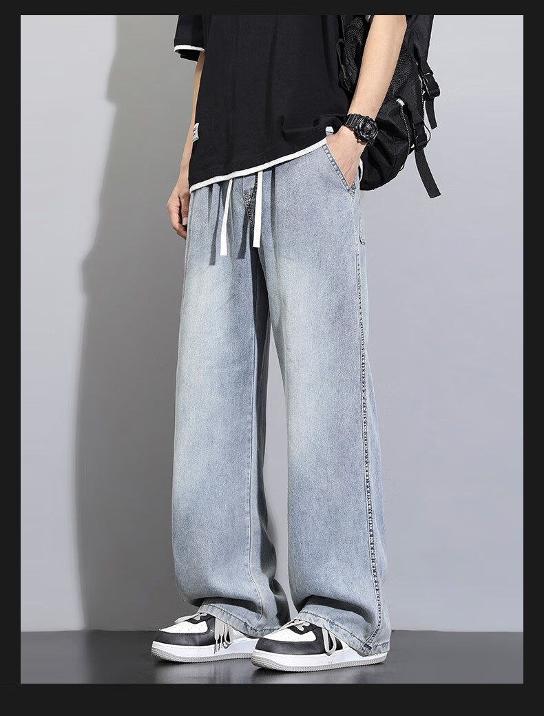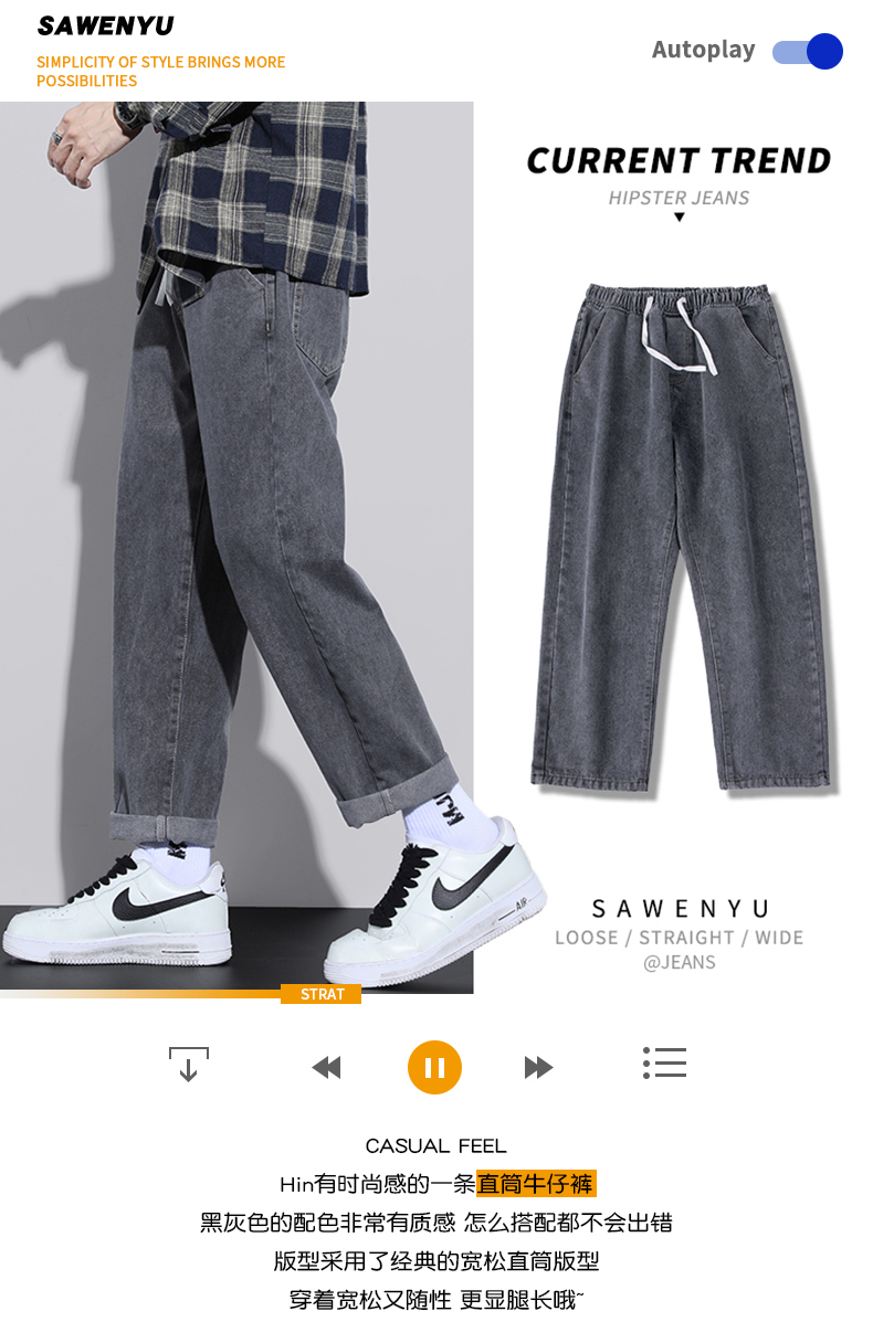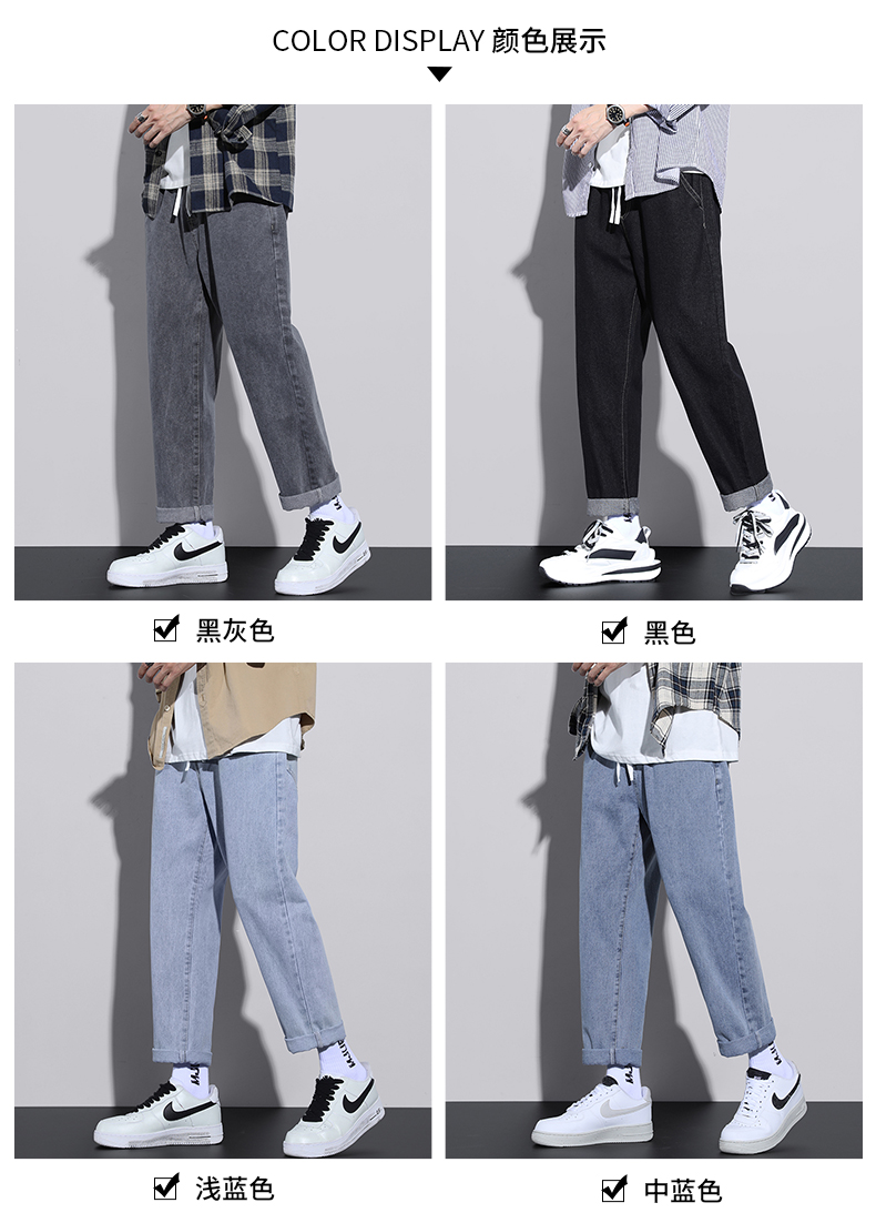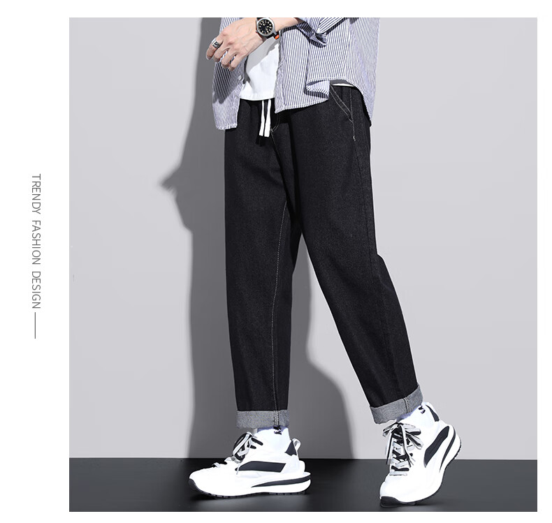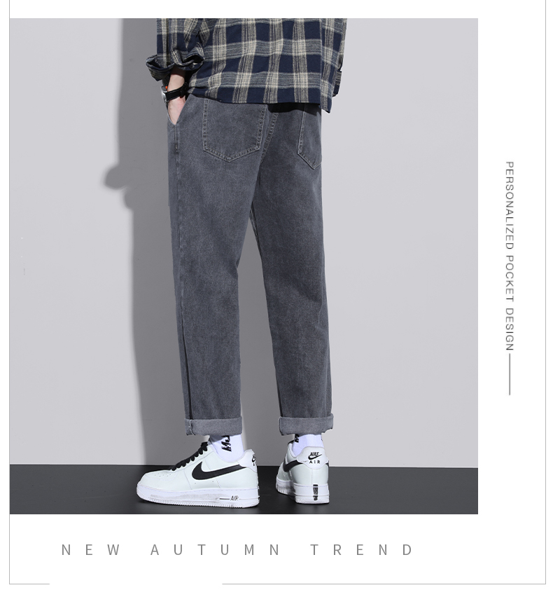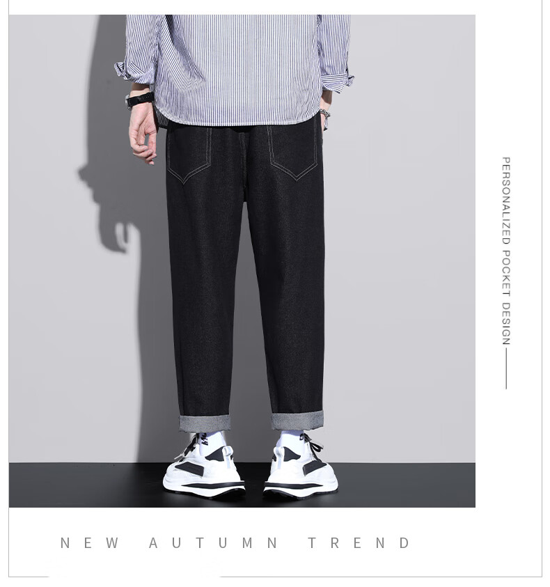 Foss Phil jeans men's autumn and winter loose straight casual American high street trendy trousers S336 black gray XL