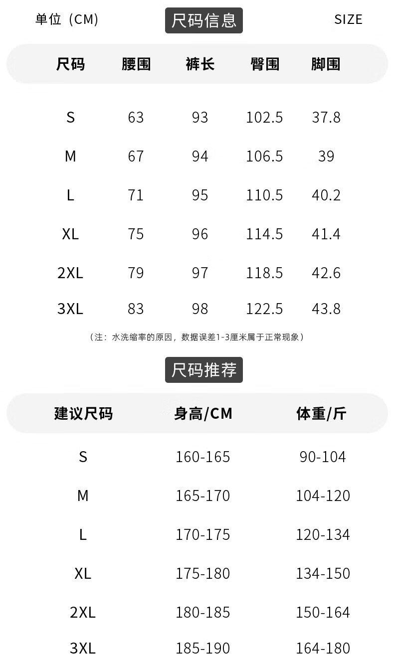 Outseam (cm) 99 cm 101.5 cm 104 cm 106.5 cm 109 cm