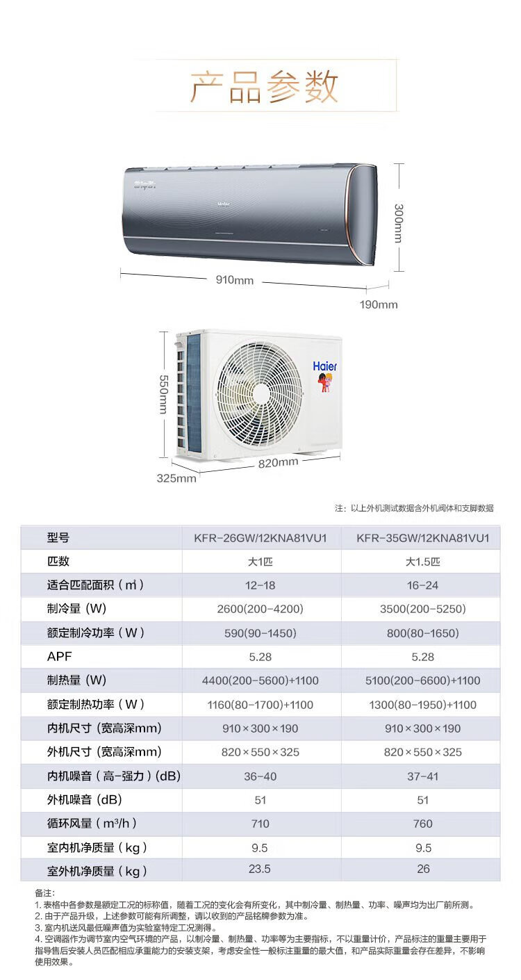 Haier (Haier) 1.5P hanging Thor new level of energy efficiency variable frequency heating and cooling 56 self-cleaning wall-mounted air conditioner KFR-35GW/12KNA81VU1 blue