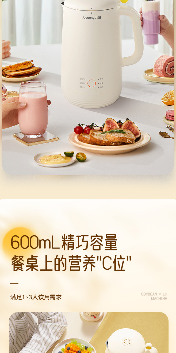 Joyoung Soybean Milk Maker 0.6L, broken wall, filter-free, scheduled time, can be used as milk tea supplement, household multifunctional juicer and food processor DJ06X-D520