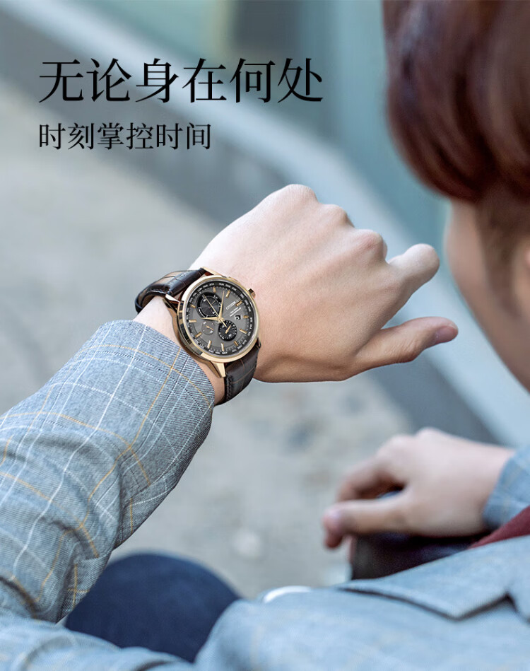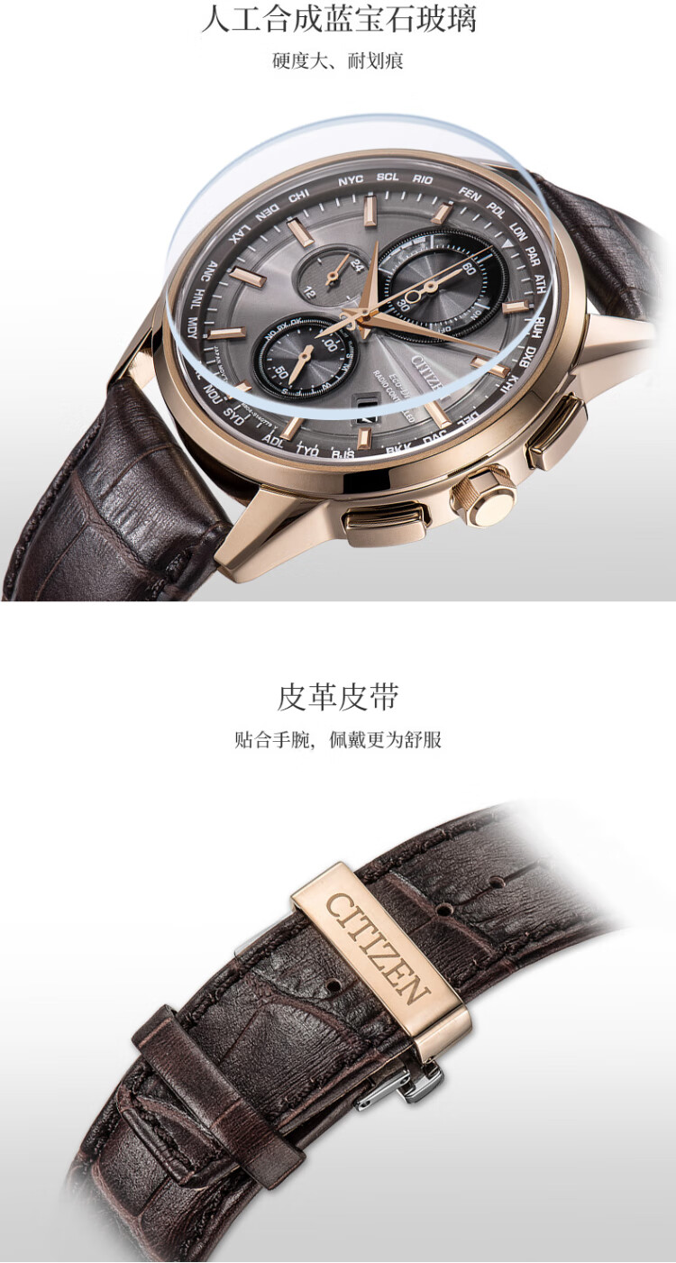 CITIZEN watch men's Japanese and Korean watch light kinetic energy radio wave three-eye sun display belt business New Year gift AT8113-12H
