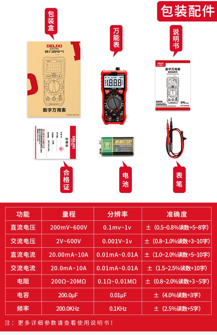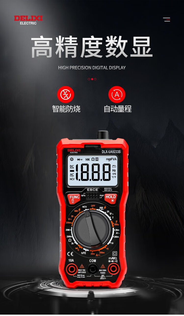 DELIXI ELECTRIC smart anti-burn multimeter digital backlight digital display household high-precision voltage/current/resistance/capacitance/frequency