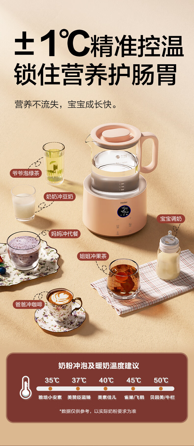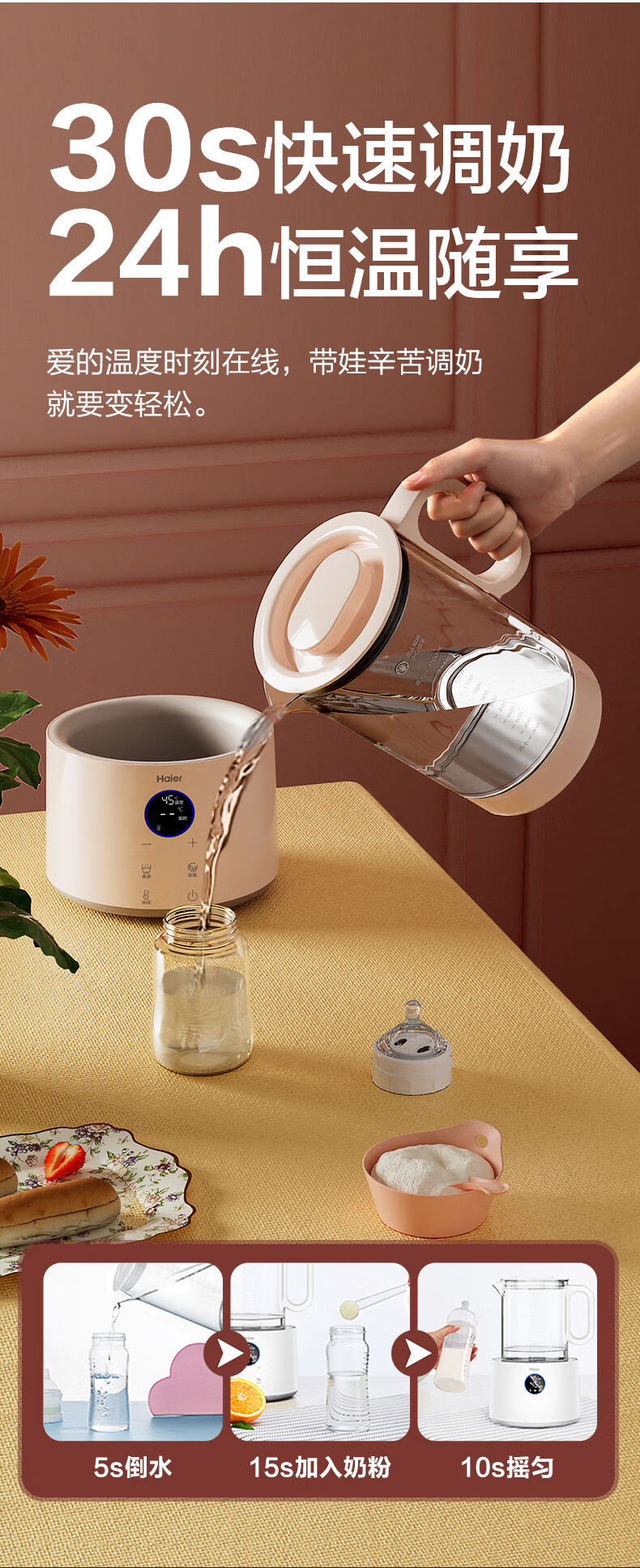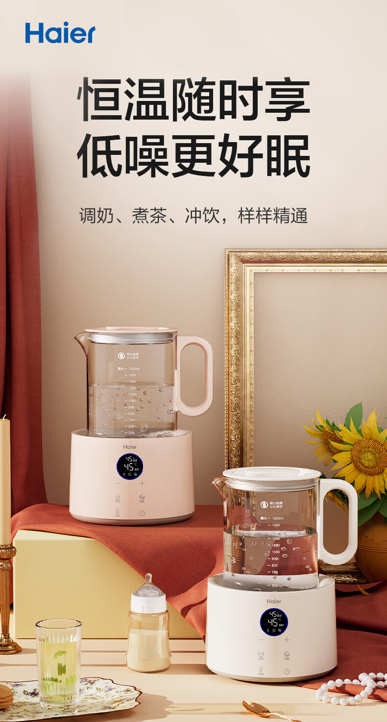 Haier thermostatic kettle baby milk mixer glass milk powder machine warm milk warmer thermal insulation electric kettle T17E