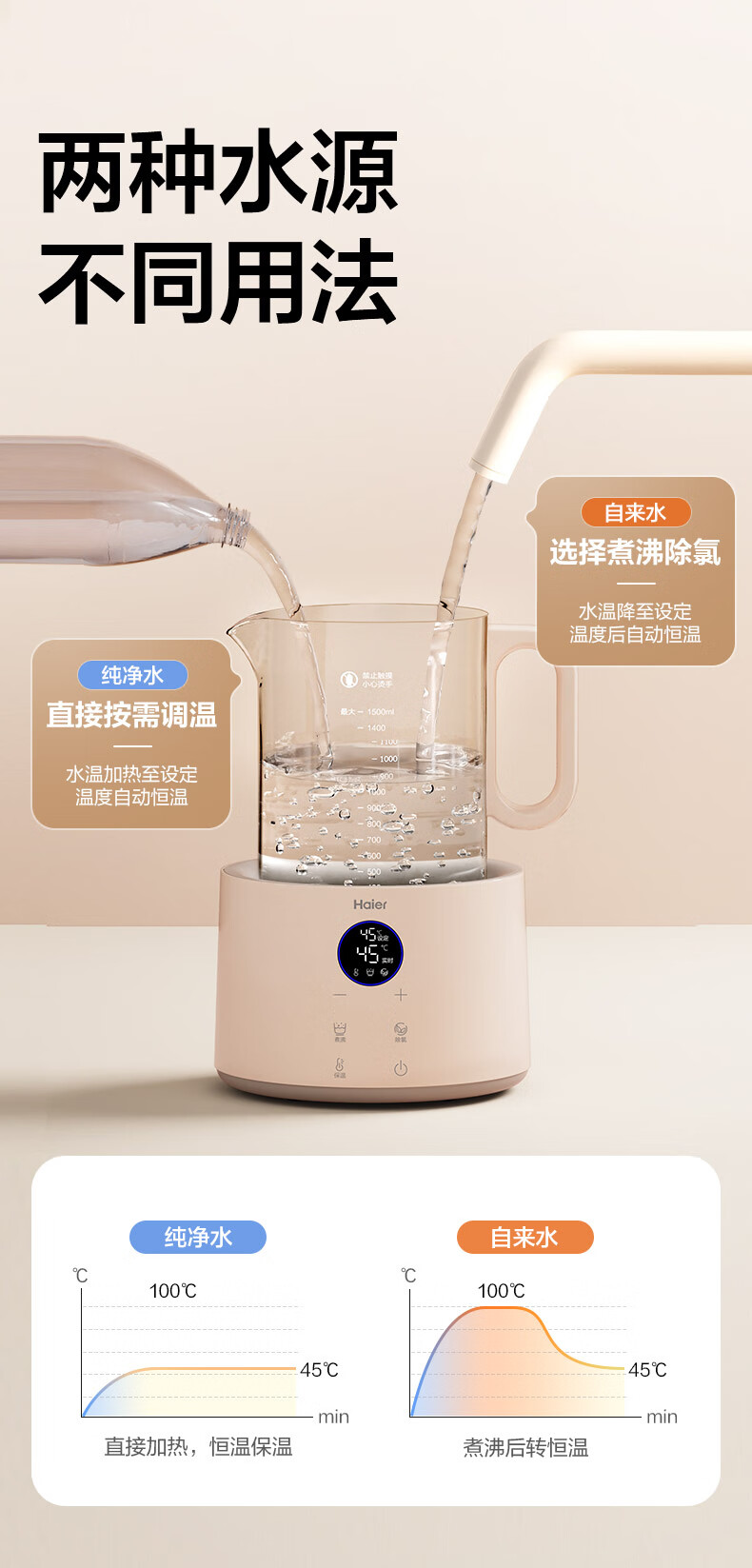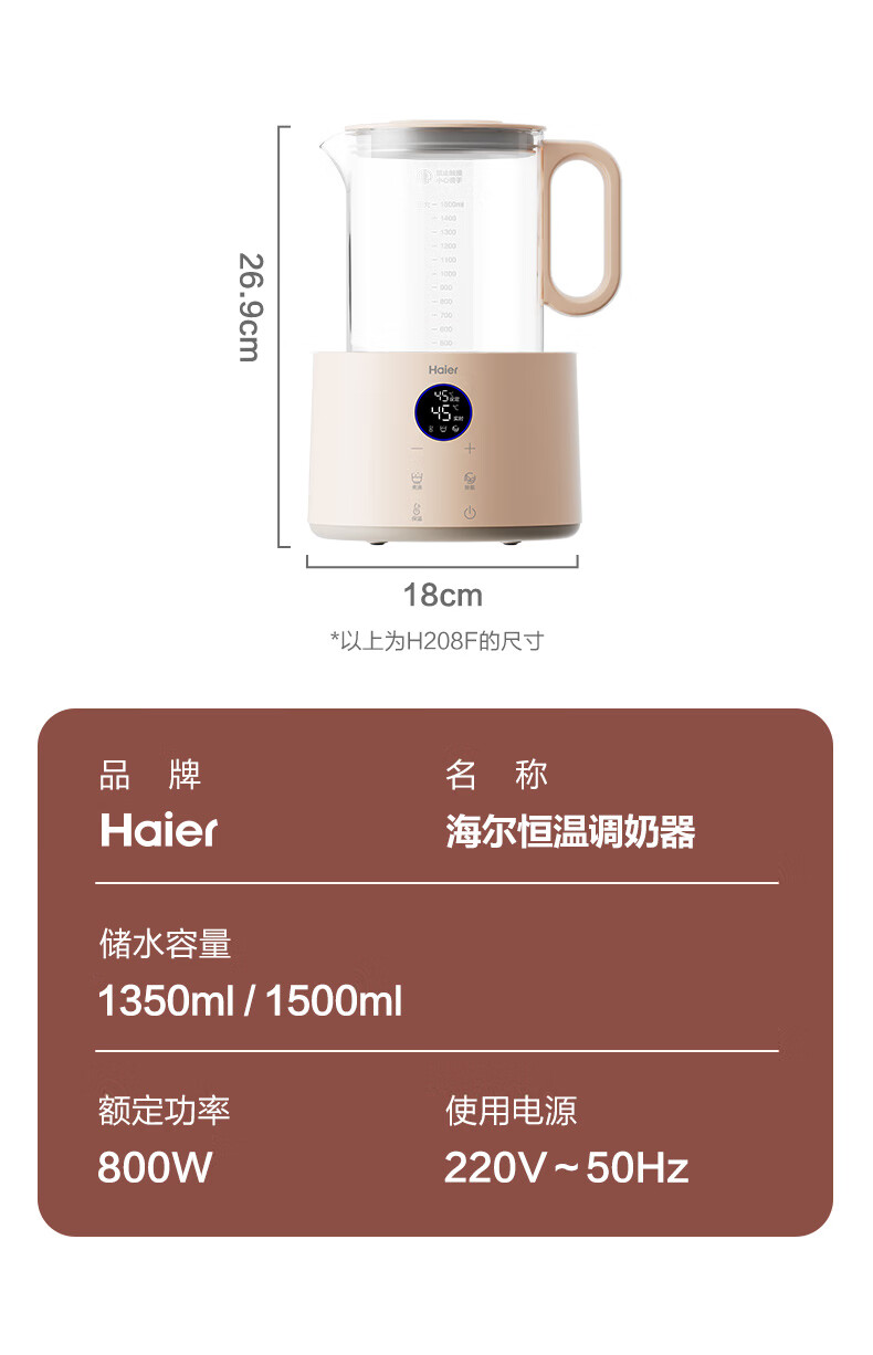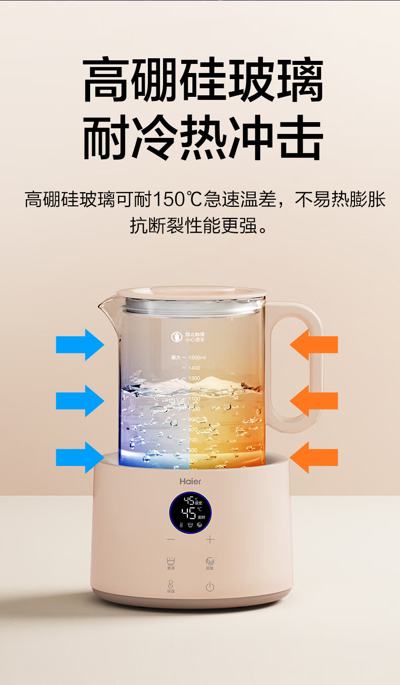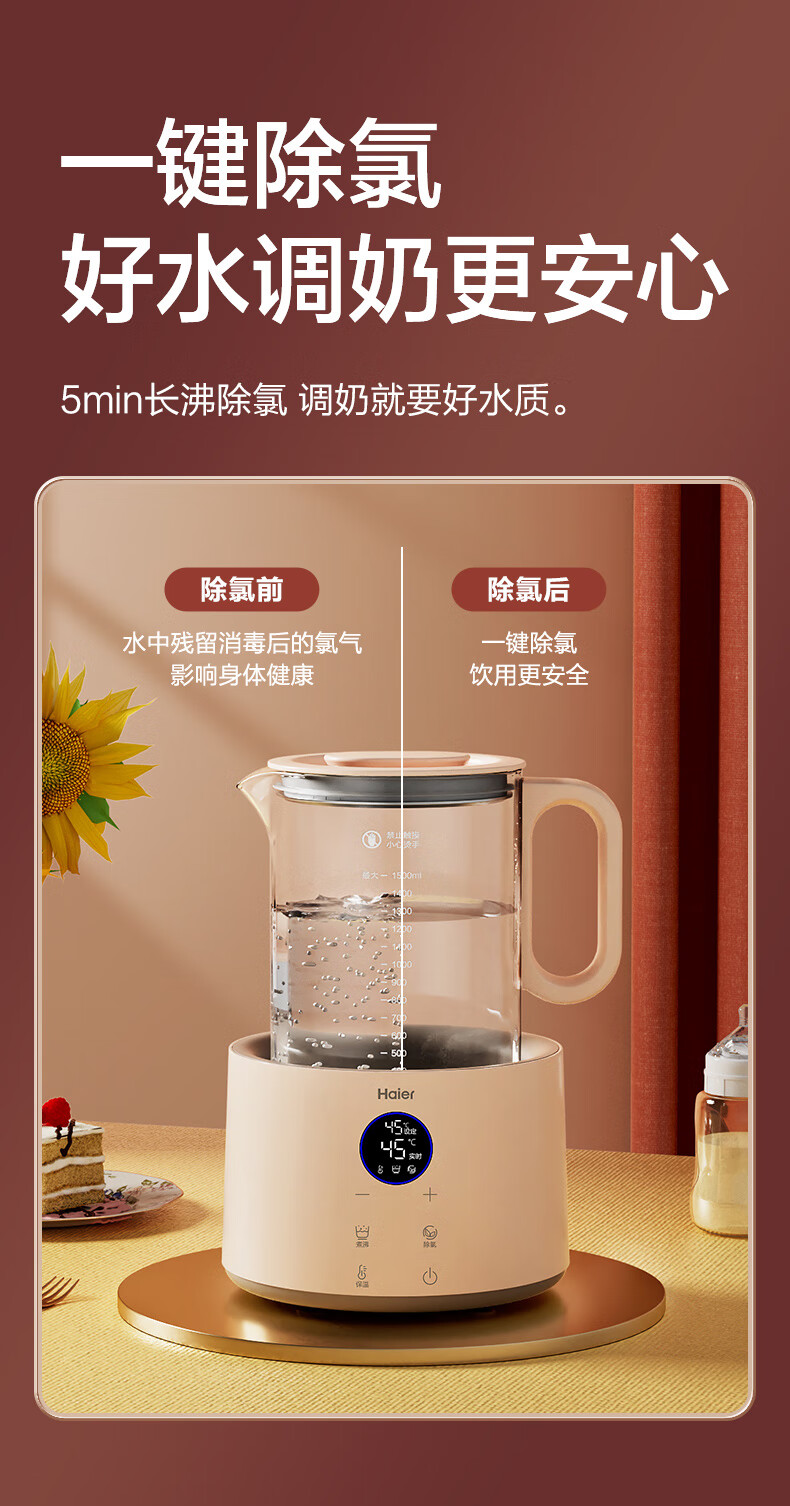 Haier thermostatic kettle baby milk mixer glass milk powder machine warm milk warmer thermal insulation electric kettle T17E