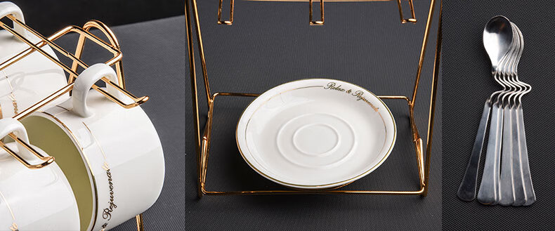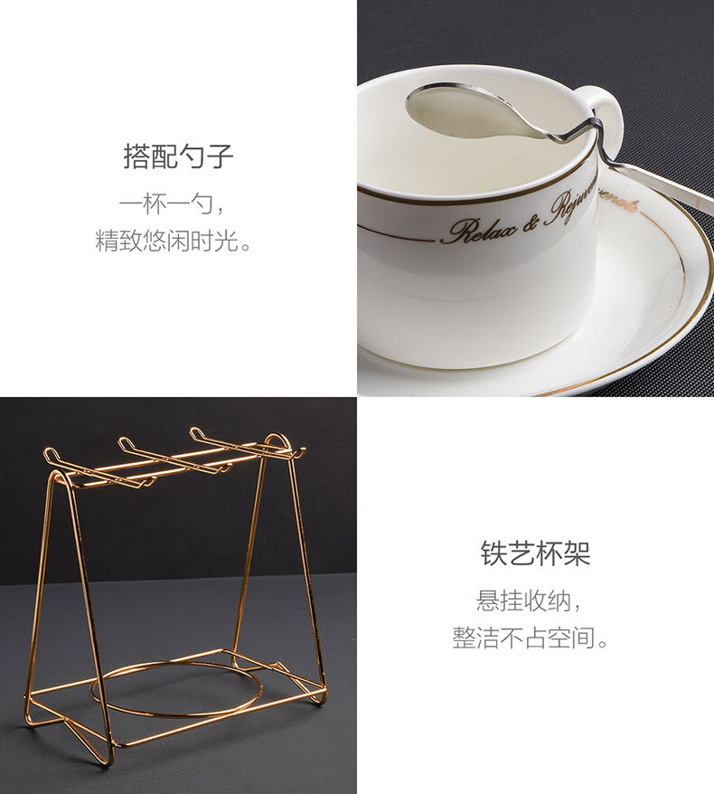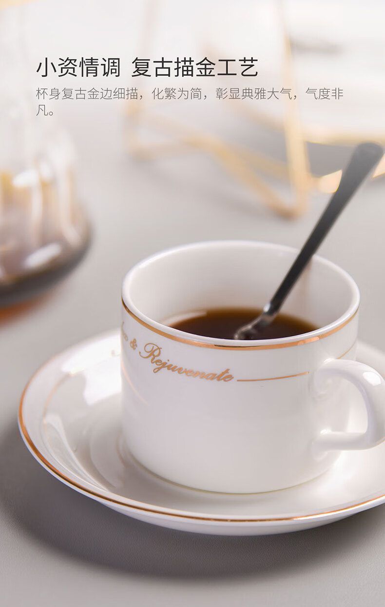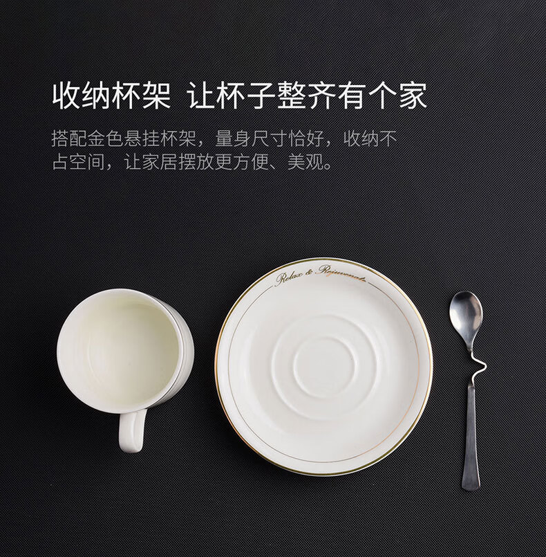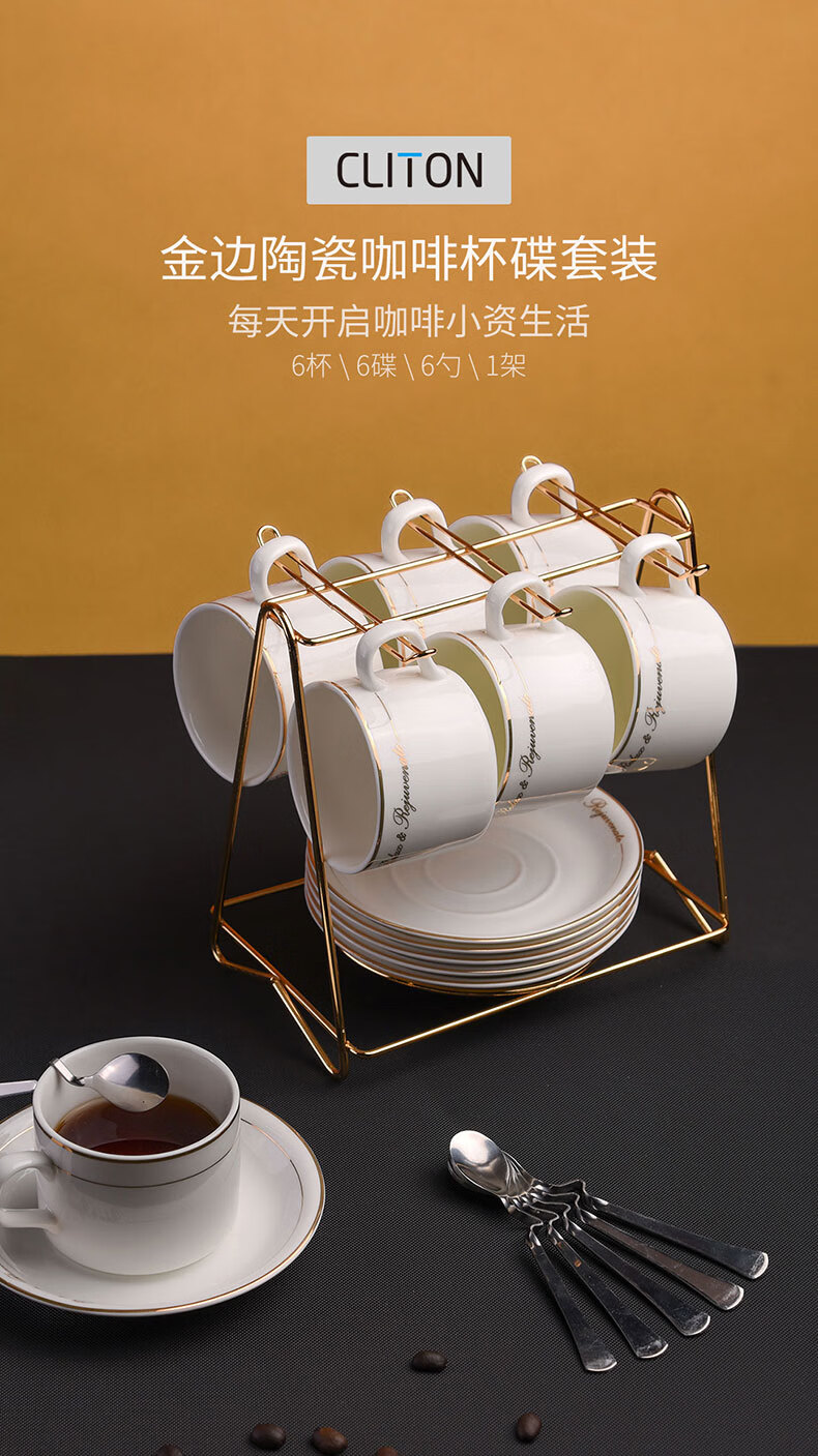 CLITON coffee cup and saucer set European-style gold-rimmed ceramic cup Western-style black tea cup breakfast cup milk cup 6 cups 6 saucers 6 + cup holder