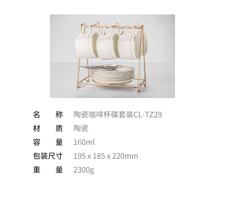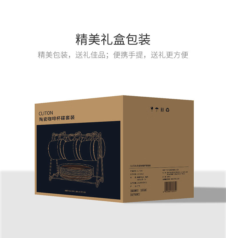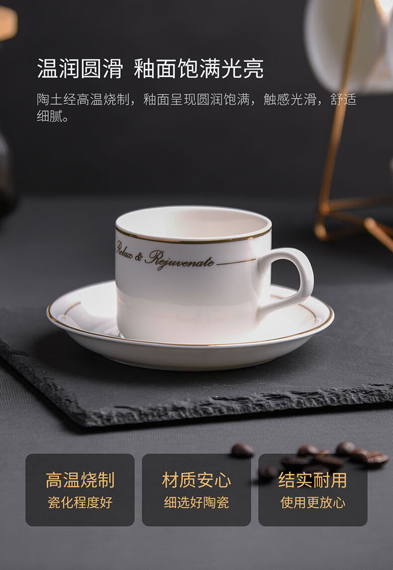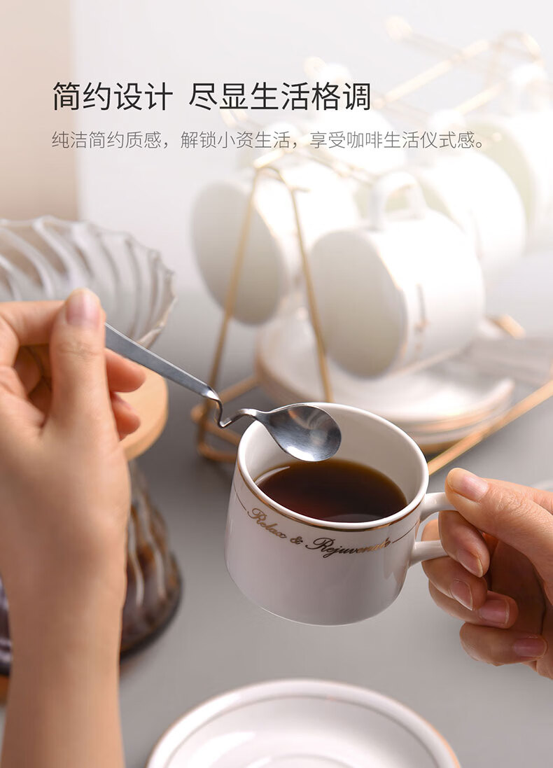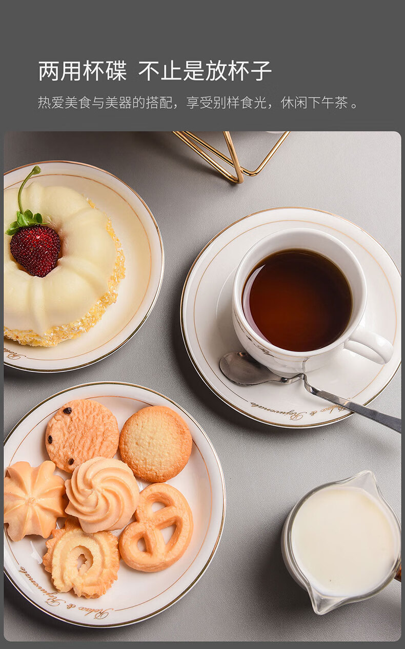 CLITON coffee cup and saucer set European-style gold-rimmed ceramic cup Western-style black tea cup breakfast cup milk cup 6 cups 6 saucers 6 + cup holder