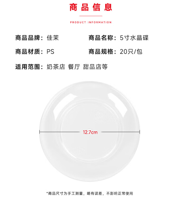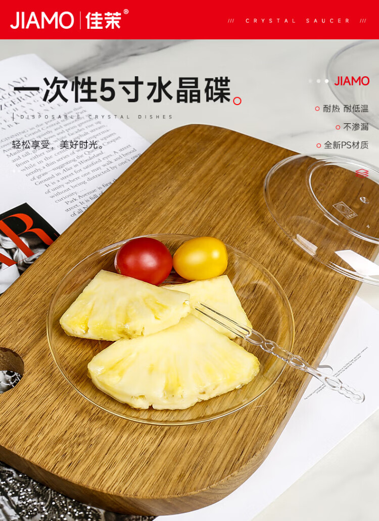 Jiamo disposable plates 13cm 5 inches 20 crystal plates cake dishes picnic snacks thickened aviation plates