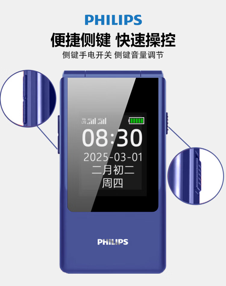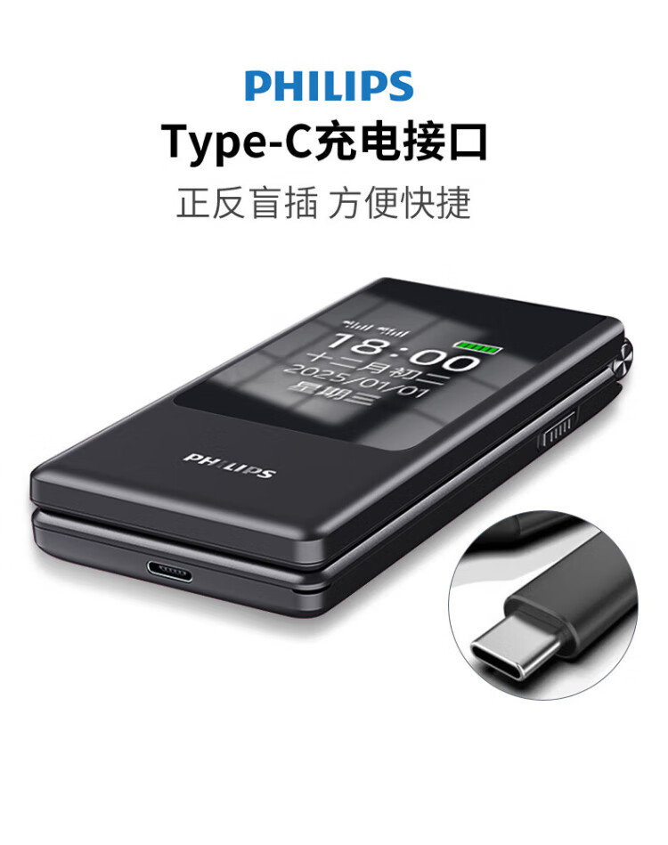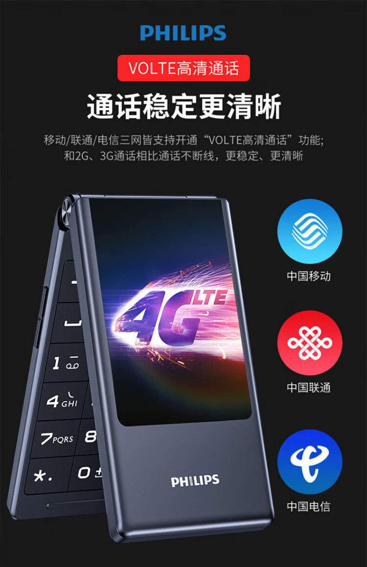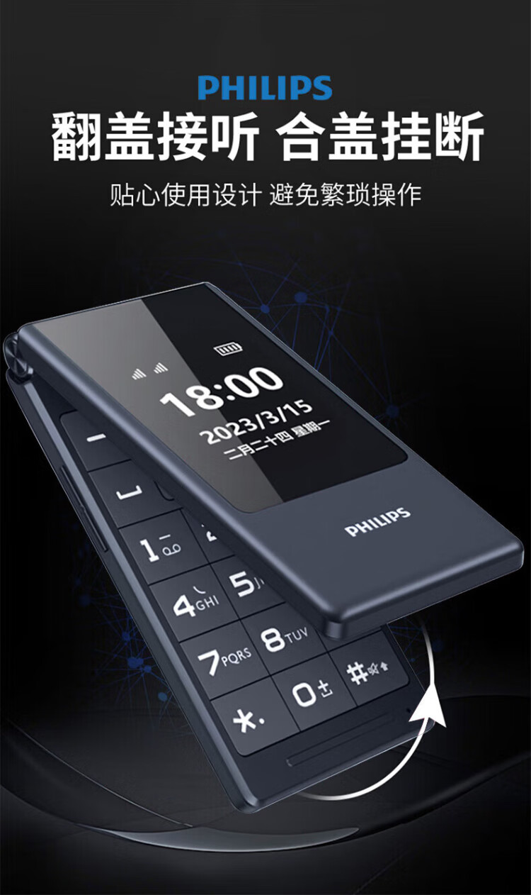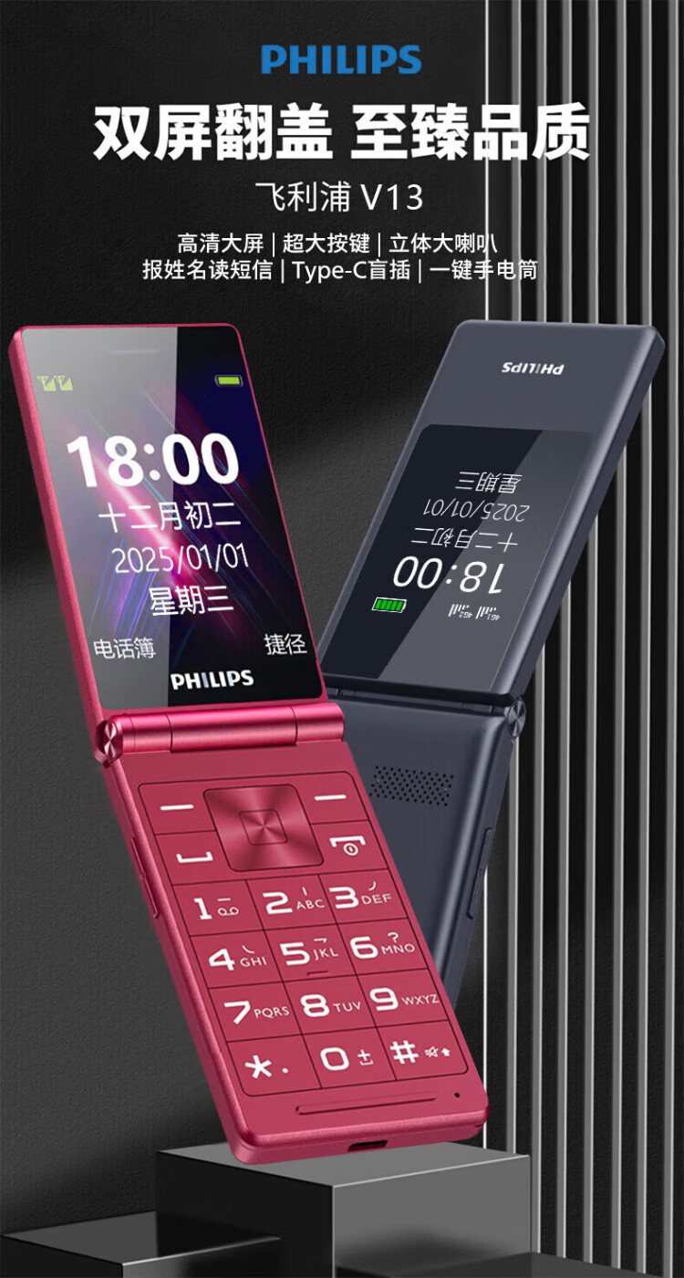 Philips (PHILIPS) V13P Starry Sky Black 4G Full Network Flip Mobile Phone for the Elderly Super Long Standby Elderly Phone Dual SIM Dual Standby Loud Big Button Network Anti-addiction Intelligent Student Function Phone