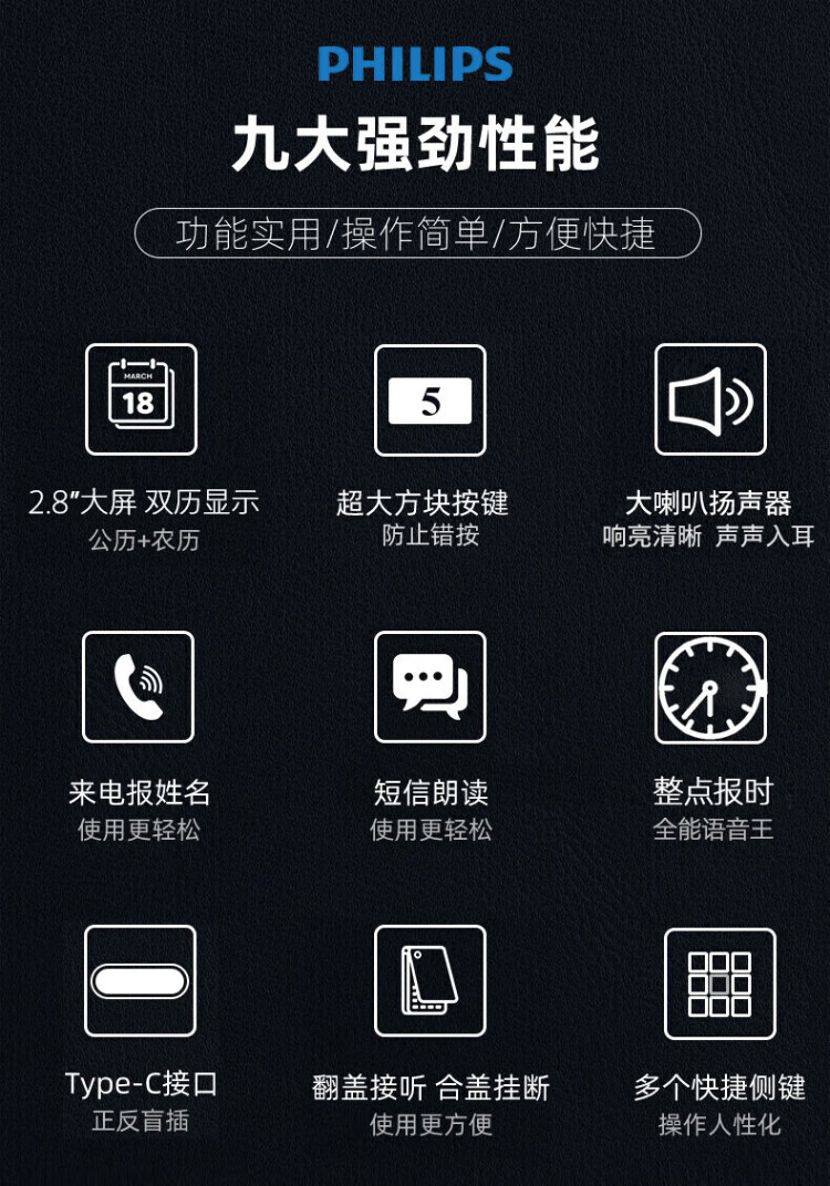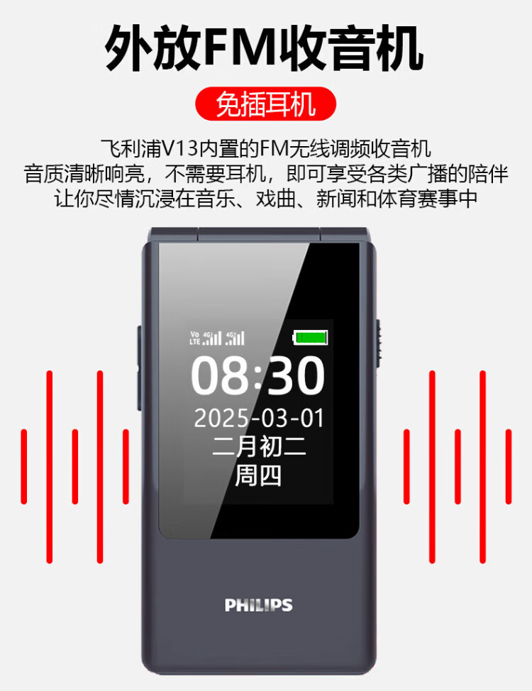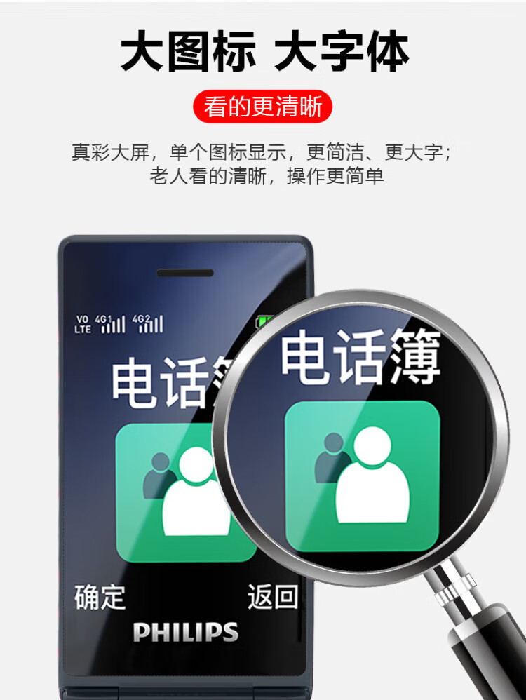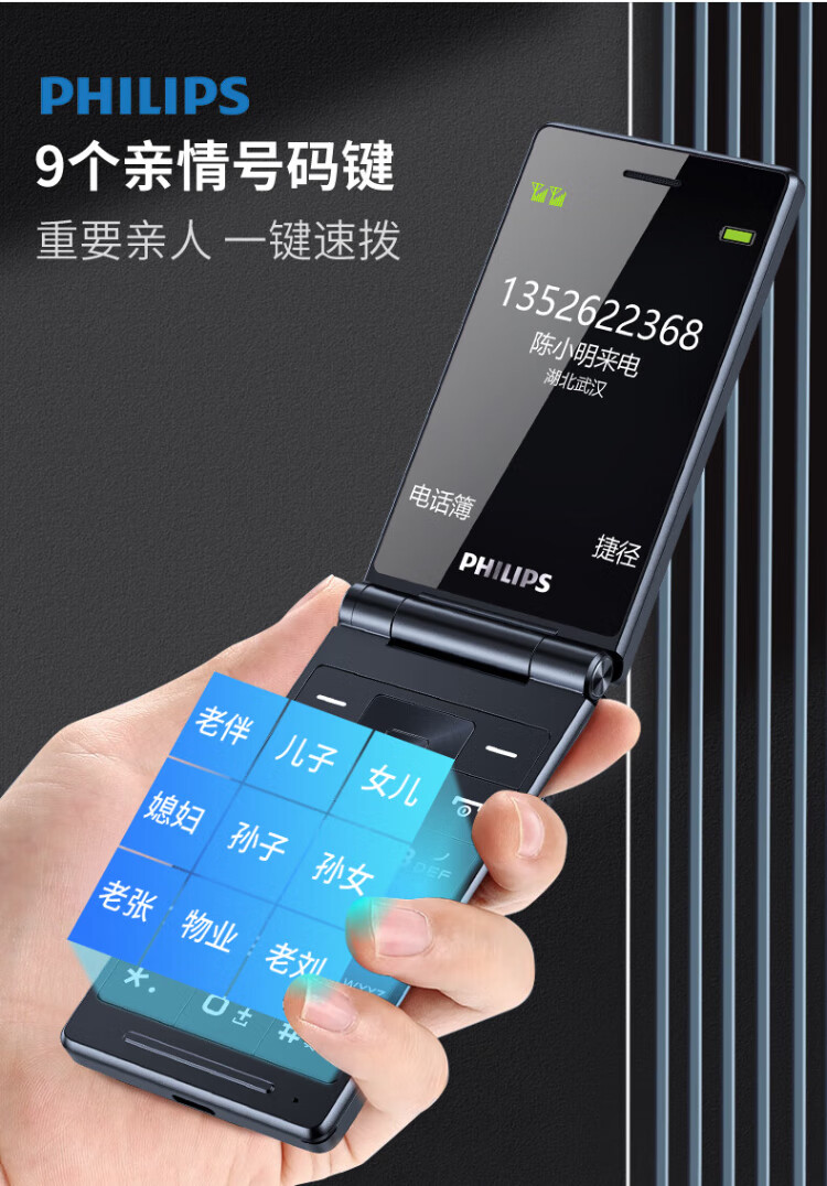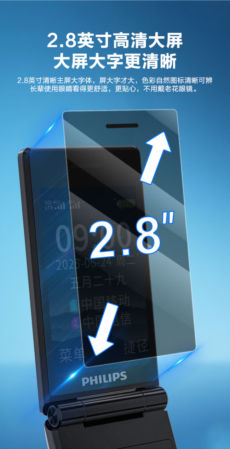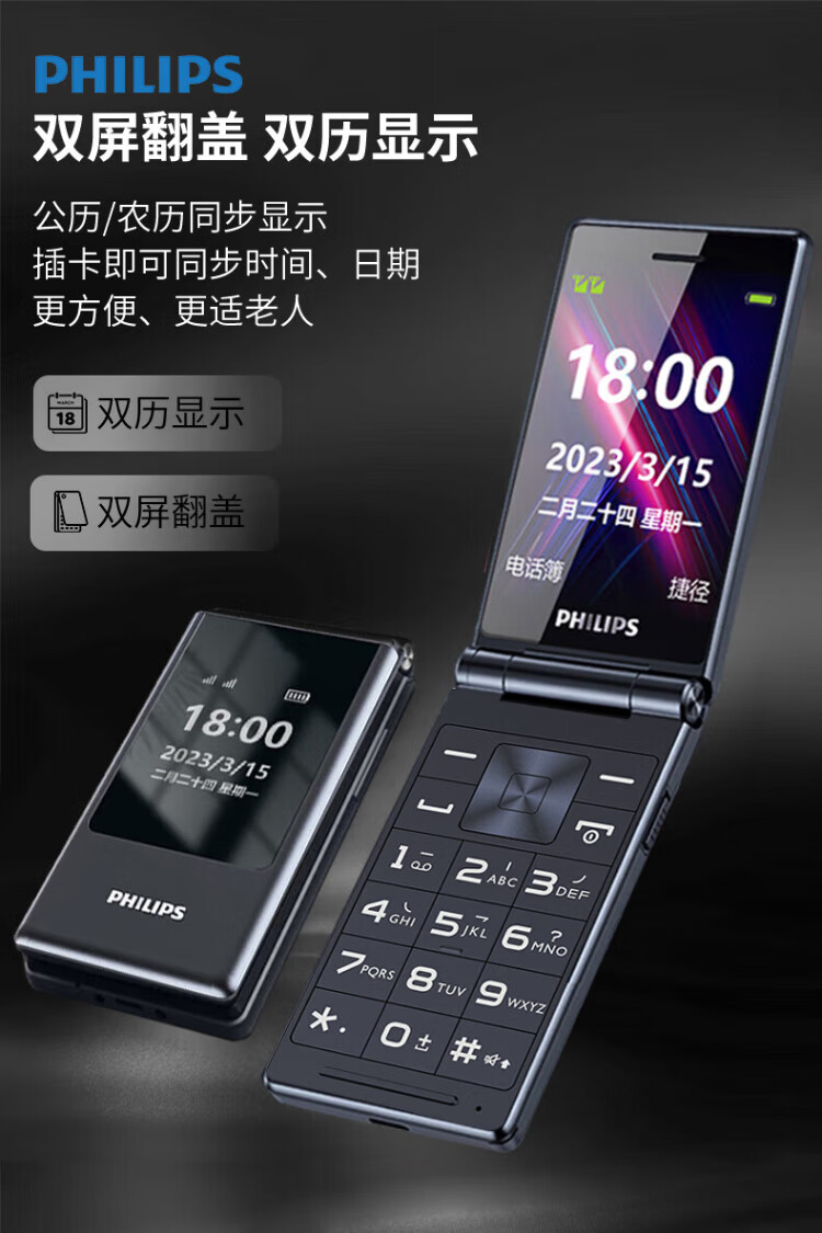 Philips (PHILIPS) V13P Starry Sky Black 4G Full Network Flip Mobile Phone for the Elderly Super Long Standby Elderly Phone Dual SIM Dual Standby Loud Big Button Network Anti-addiction Intelligent Student Function Phone