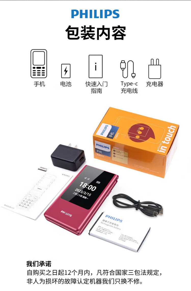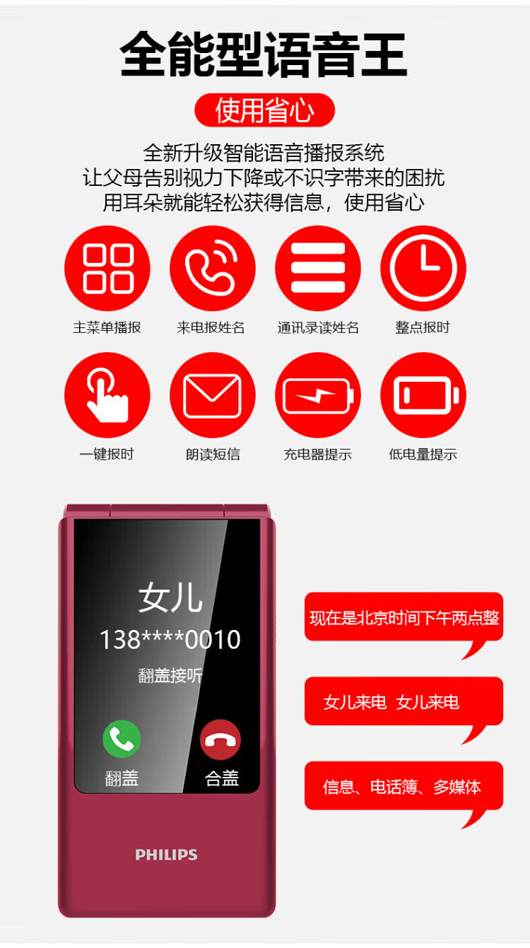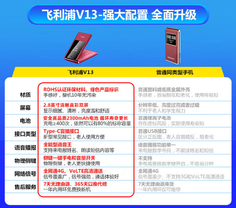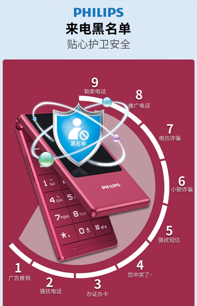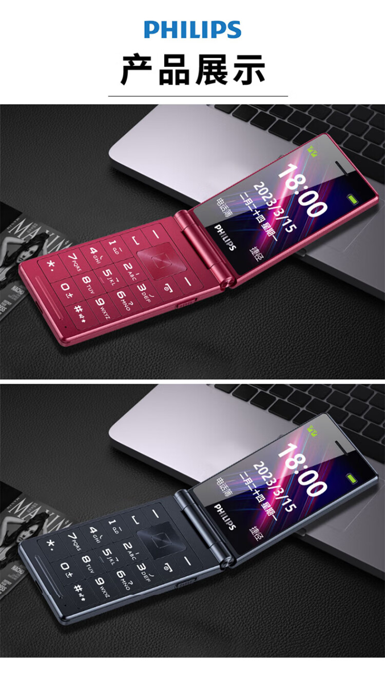 Philips (PHILIPS) V13P Starry Sky Black 4G Full Network Flip Mobile Phone for the Elderly Super Long Standby Elderly Phone Dual SIM Dual Standby Loud Big Button Network Anti-addiction Intelligent Student Function Phone