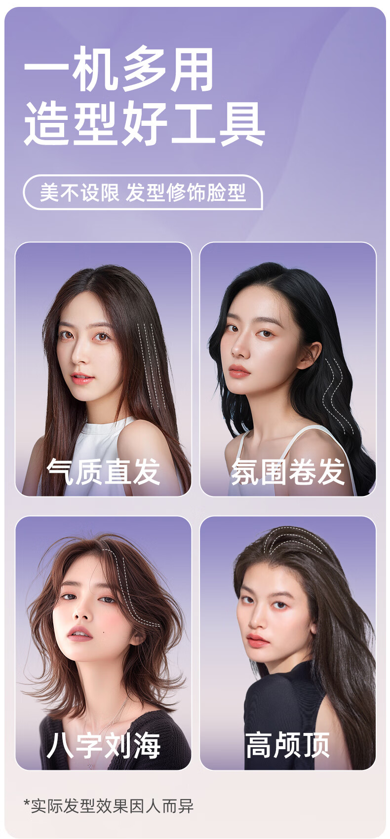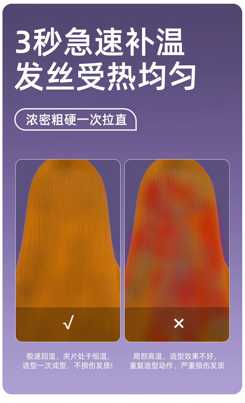 Lena Straight Board Clamp Negative Ion Splint Curling Wand Does Not Harm Hair Curling and Straightening Dual-Purpose Straightening Wand for Women Electric Straightening Board Hair Bangs Clip Hair Board Ironing Board Birthday Gift LN-H2 Purple