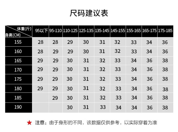 China (cm) 160-165/84-86 165-170 / 88-90 167-172 / 92-96 168-173 / 98-102 170-176 / 106-110