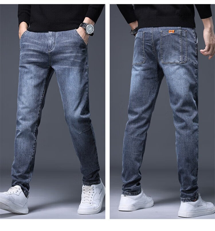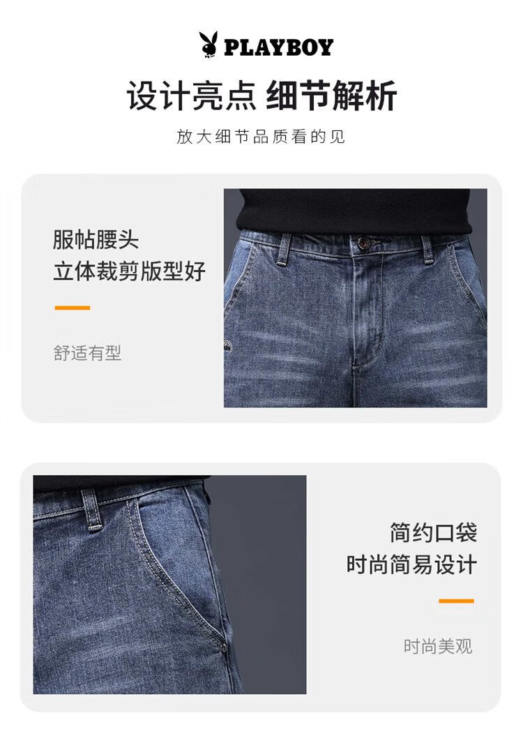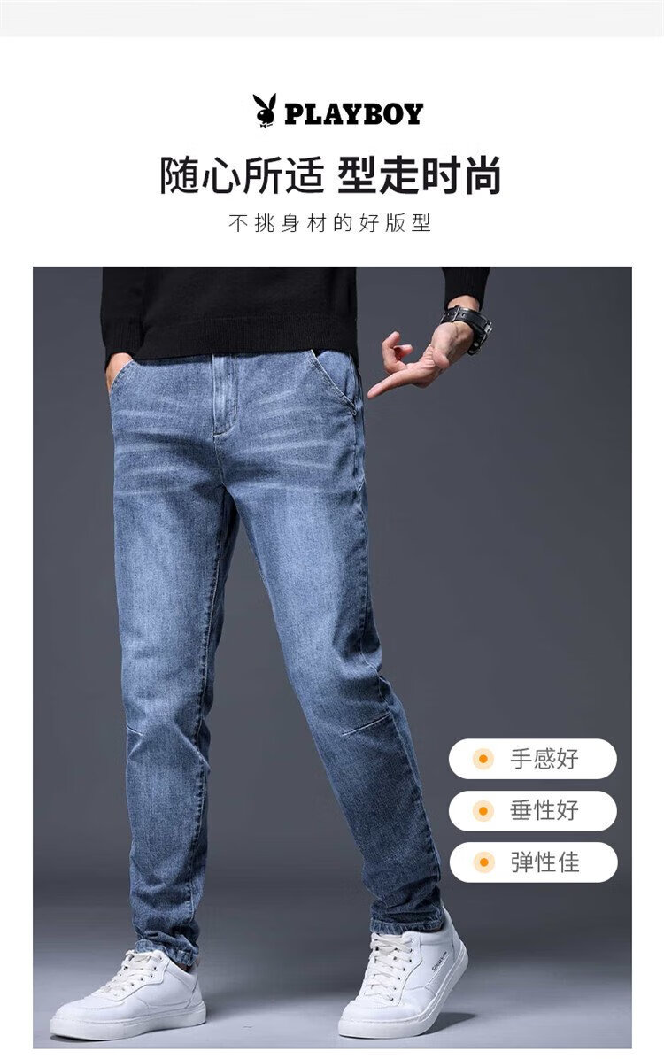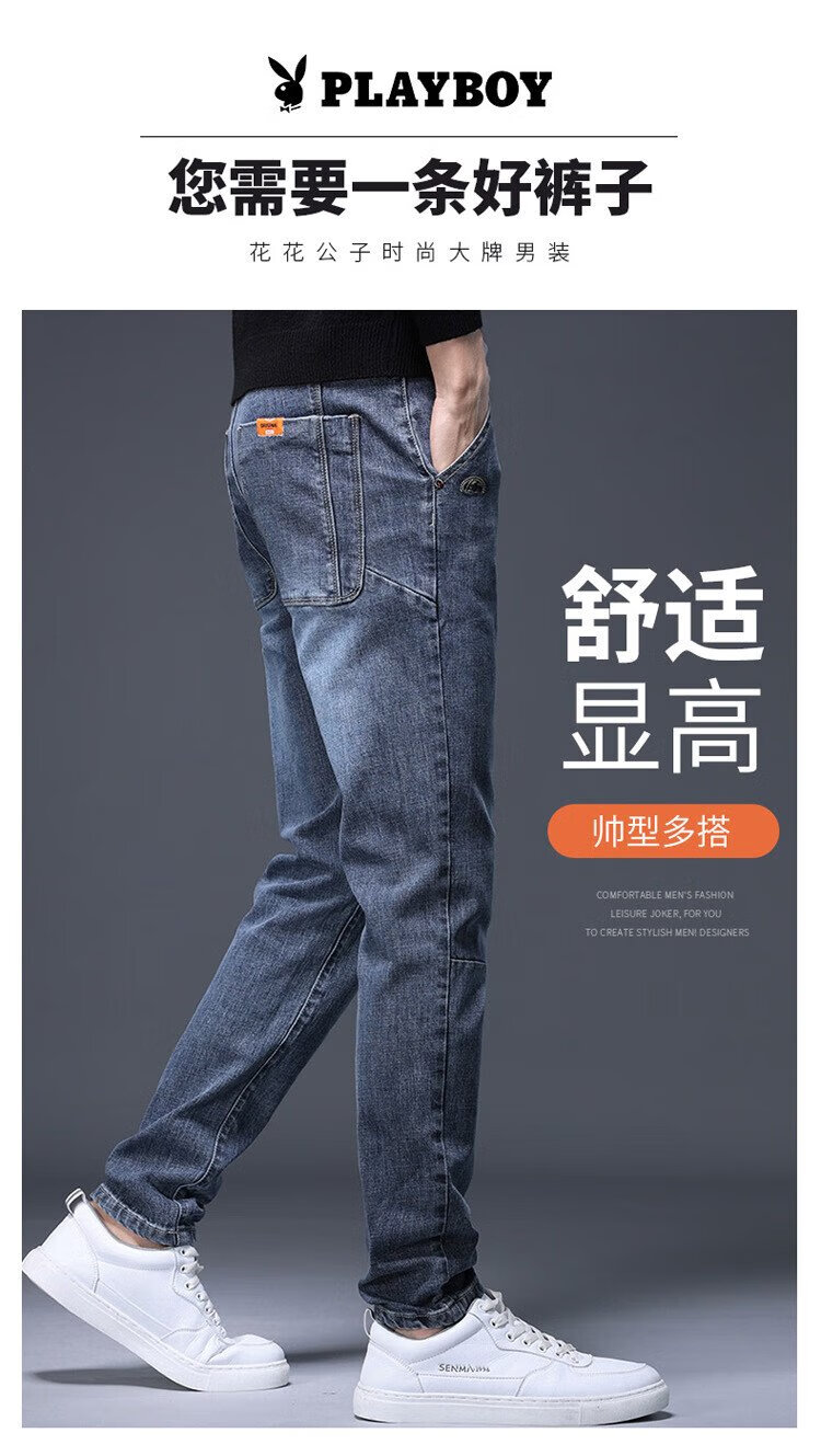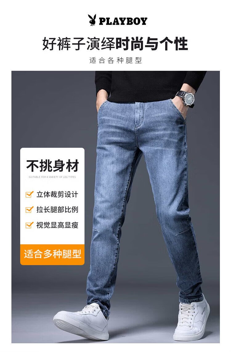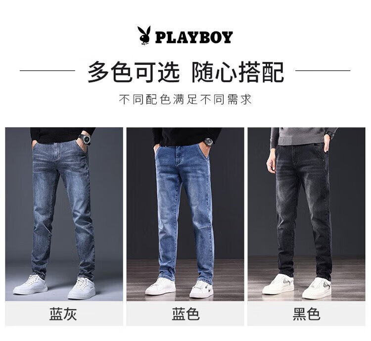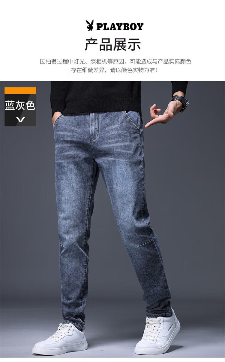 Playboy (PLAYBOY) jeans men's trendy autumn and winter casual pants men's loose business straight versatile trousers blue gray 33