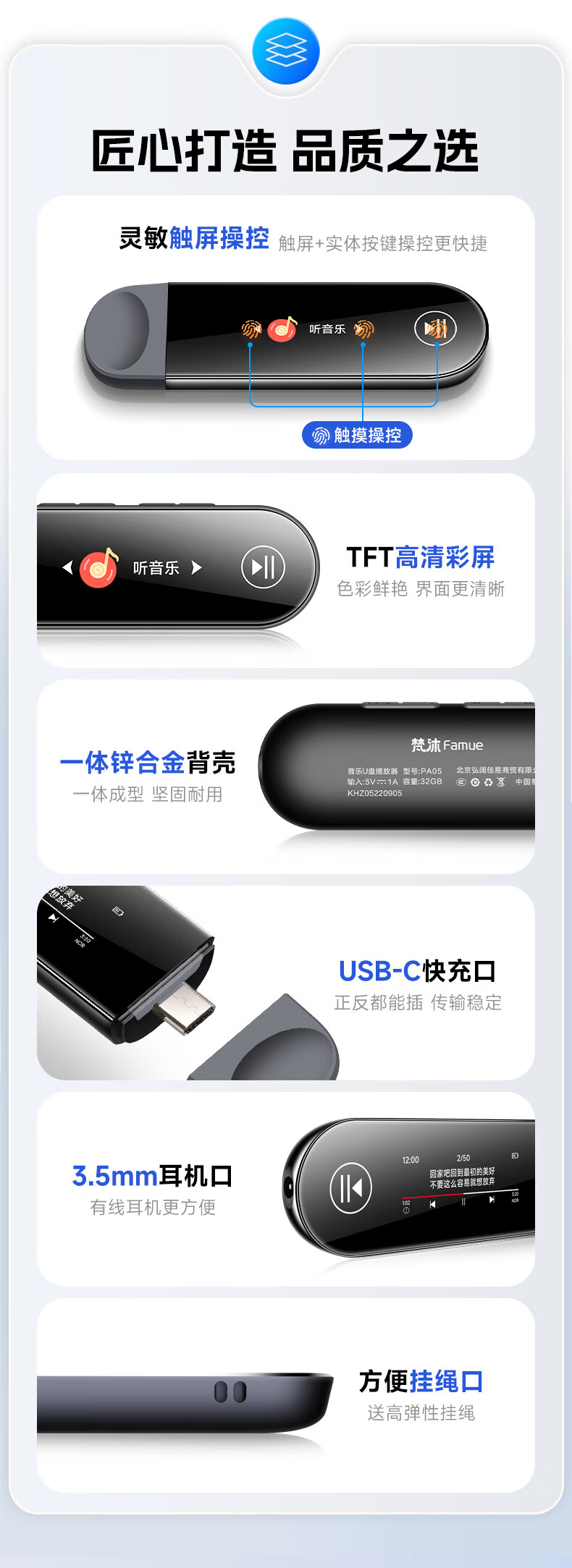 Fanmu PA05 32G mp3 music player mp4 Bluetooth student walkman English Bluetooth recording sports running U disk mobile phone direct download USB-C port
