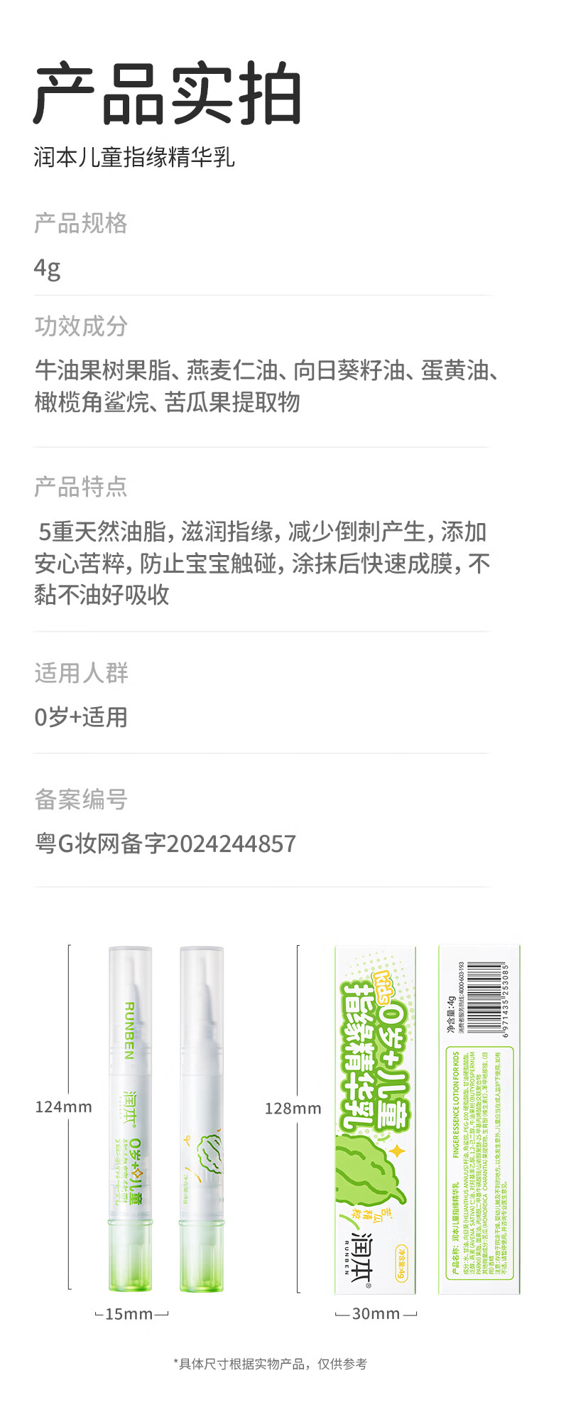 Moisten children's finger edge cream 4g finger edge oil non-bitter nail water children's hand cream essence milk barb repair oil nail edge oil