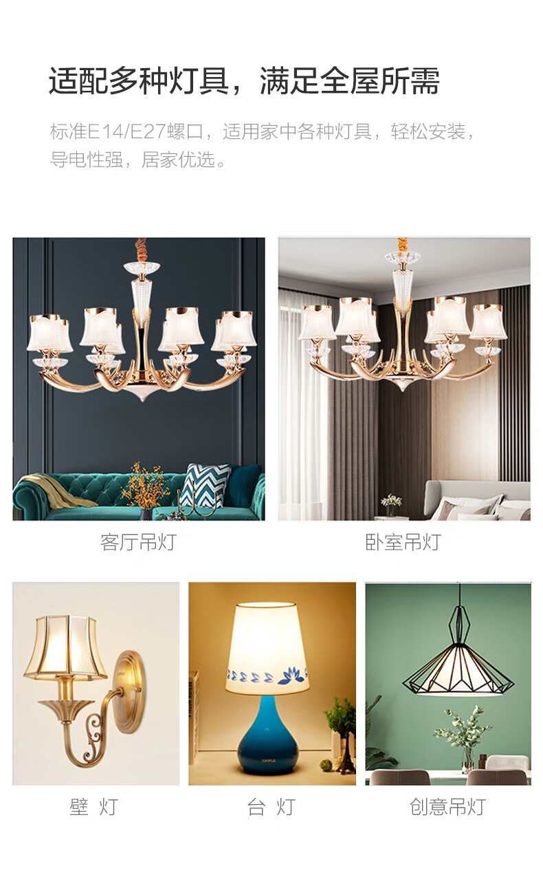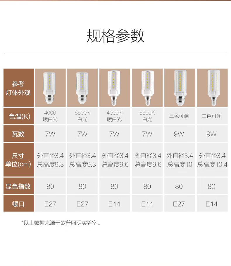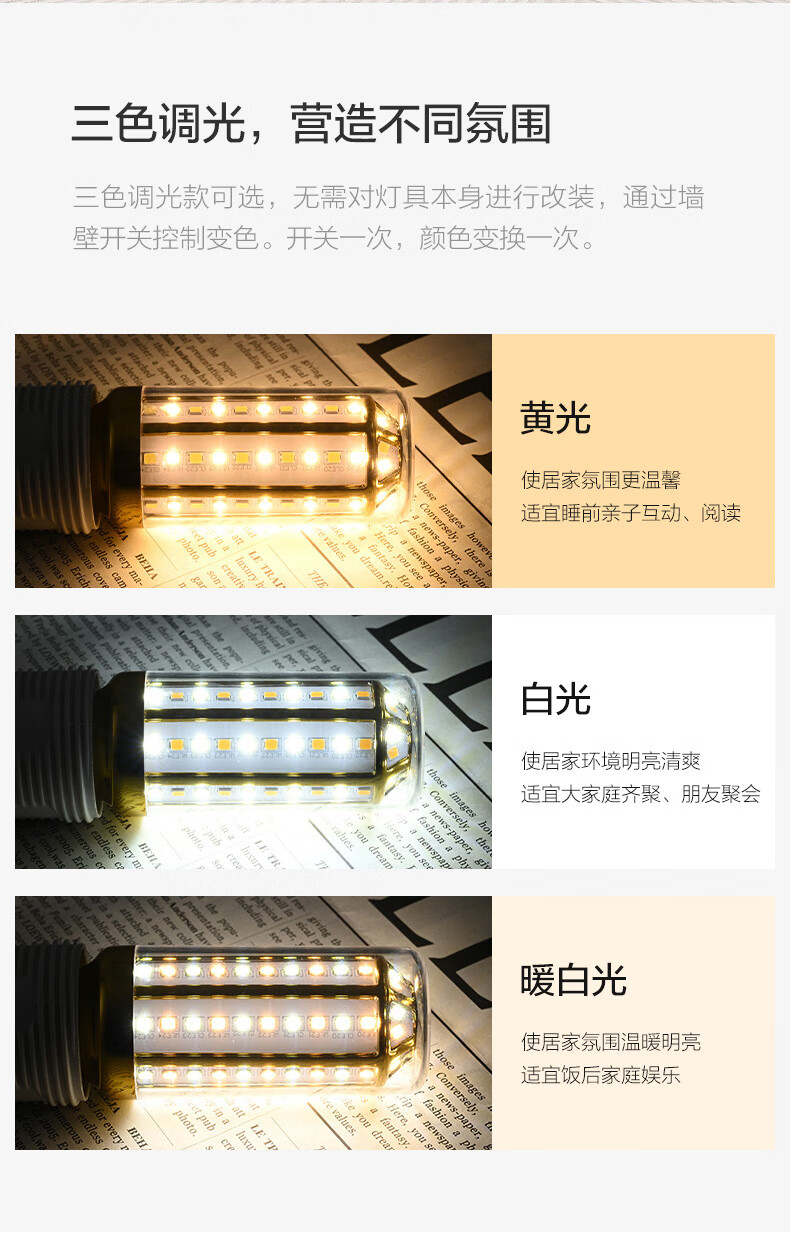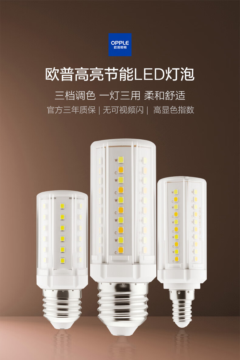 OPPLE super bright LED light bulb E27 large screw corn lamp candle bulb columnar household energy-saving lamp 9W three-speed color adjustment