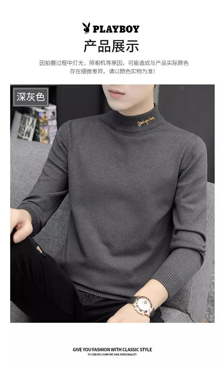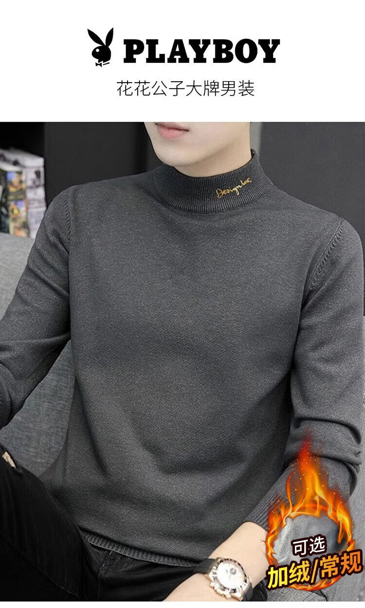 Playboy (PLAYBOY) sweater men's half turtleneck jacket men's winter sweater men's base warm men's line clothes