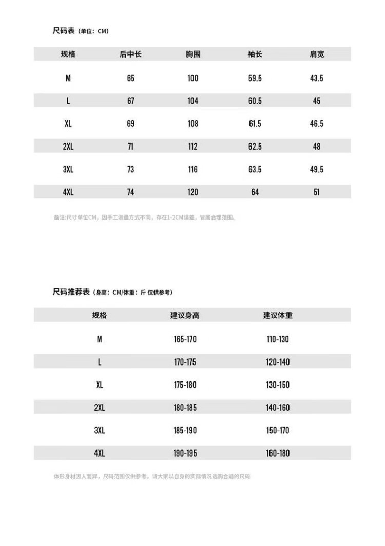 China (cm) 165 / 88-90 170 / 96-98 175 / 108-110 180 / 118-122 185 / 126-130
