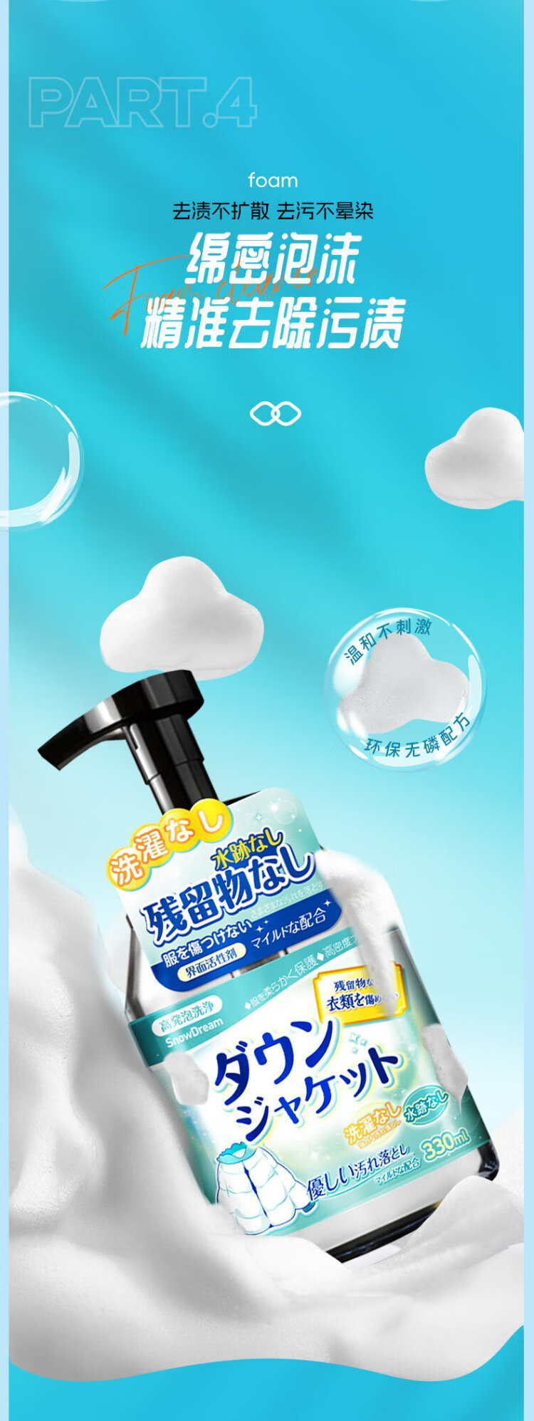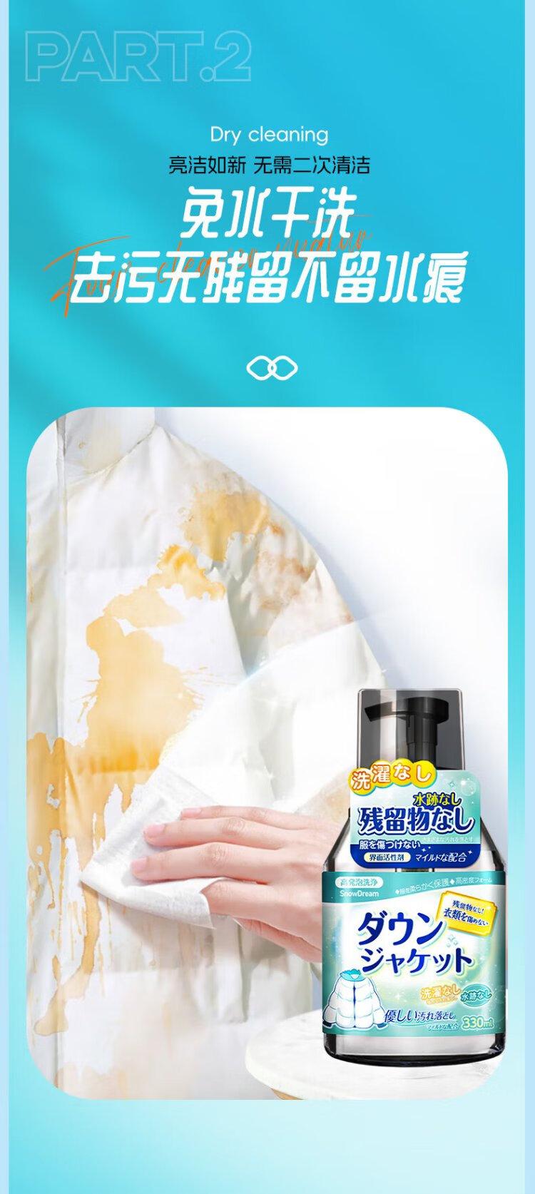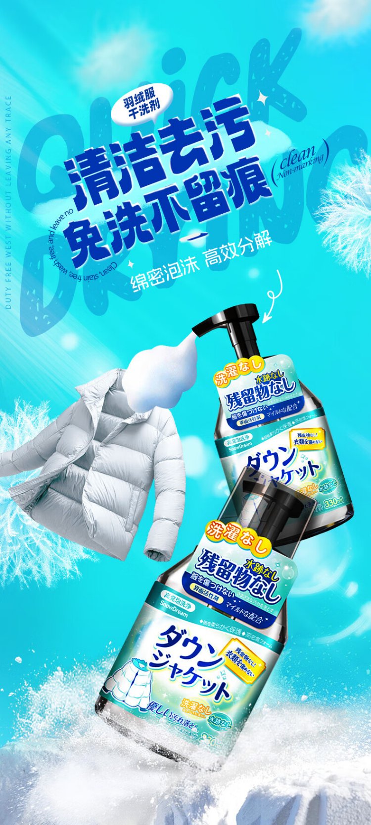 SnowDream Japanese Down Jacket Cleaner 330ml Dry Cleaning Agent Water-free Artifact Cotton Clothes Cleaner Powerful Degreasing