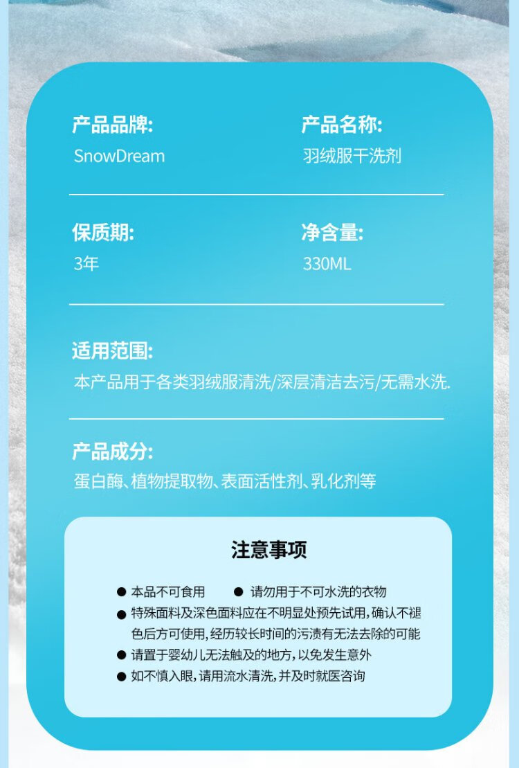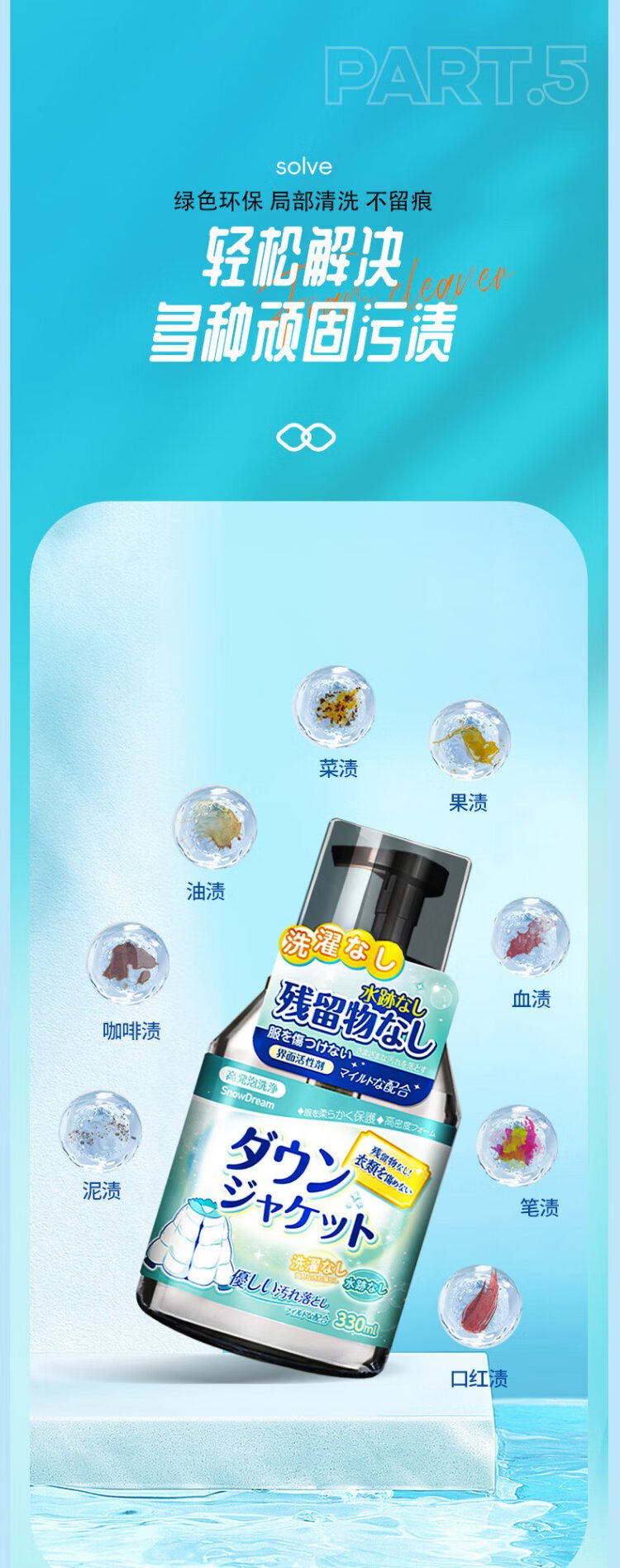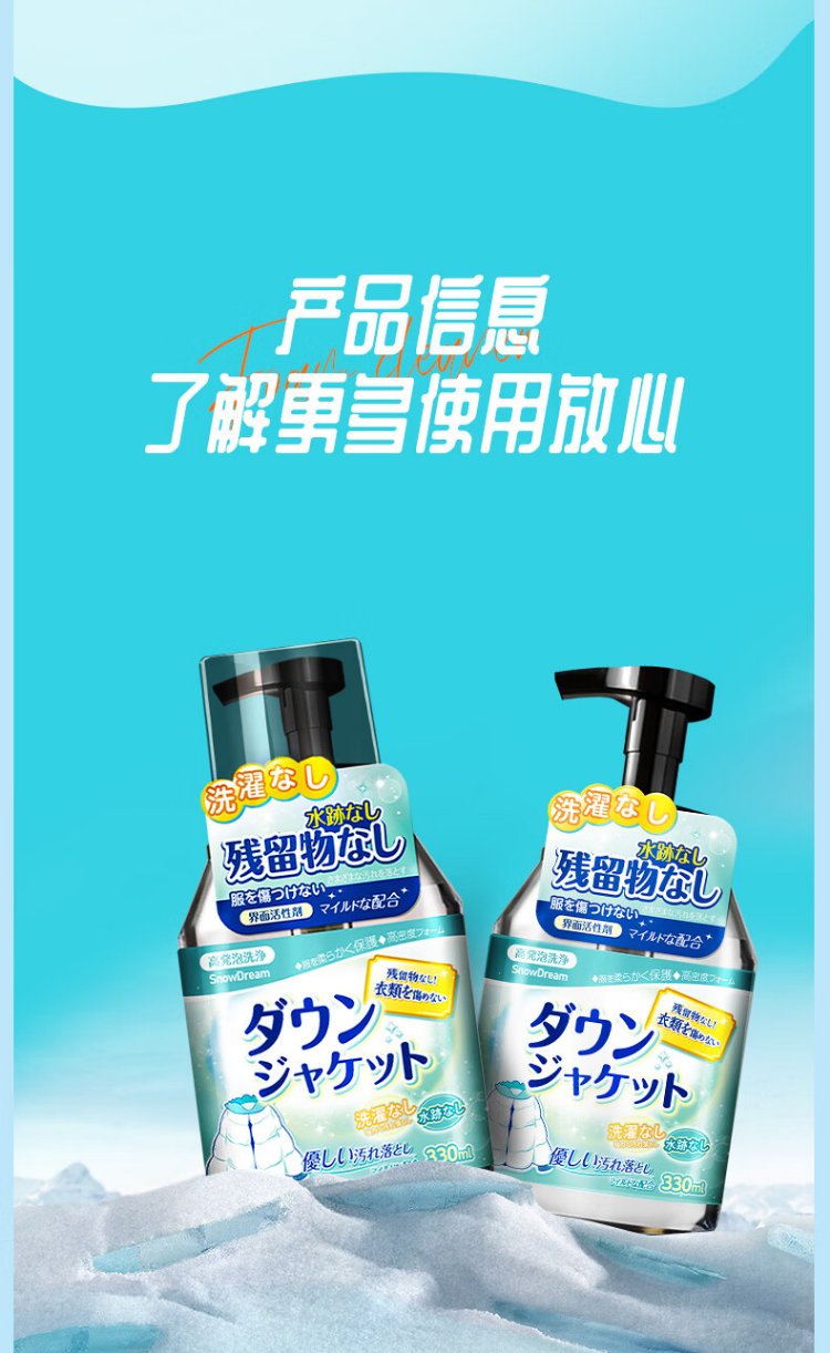 SnowDream Japanese Down Jacket Cleaner 330ml Dry Cleaning Agent Water-free Artifact Cotton Clothes Cleaner Powerful Degreasing
