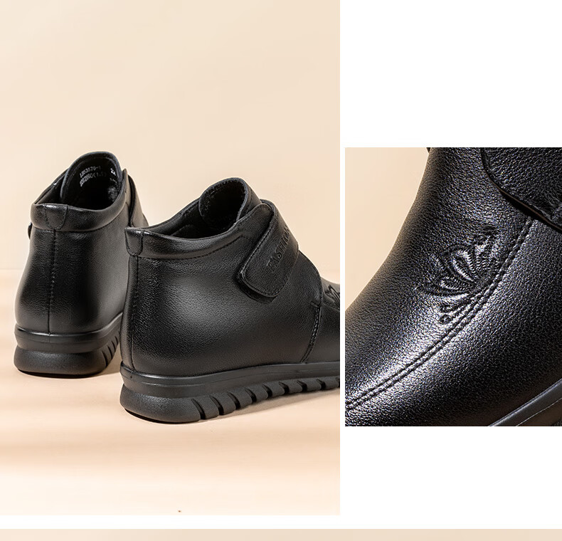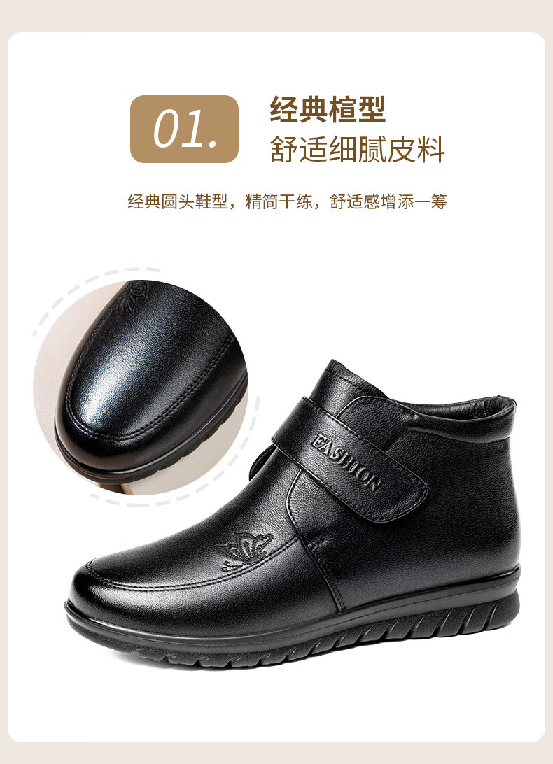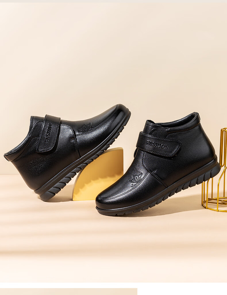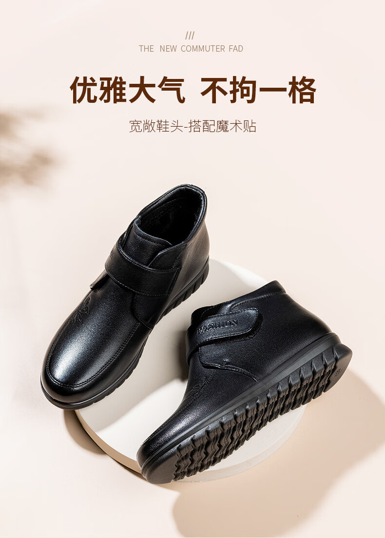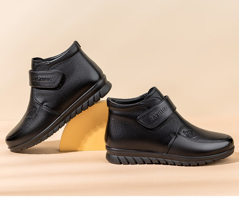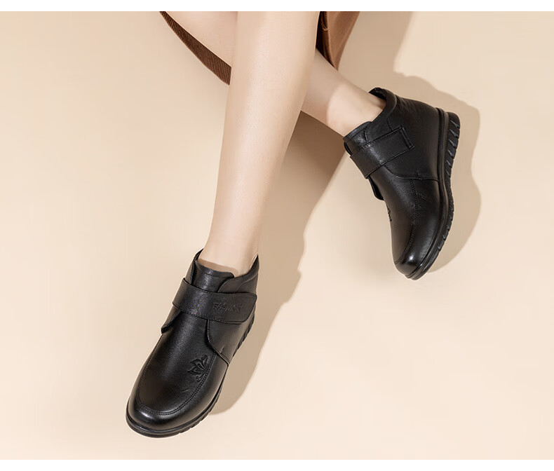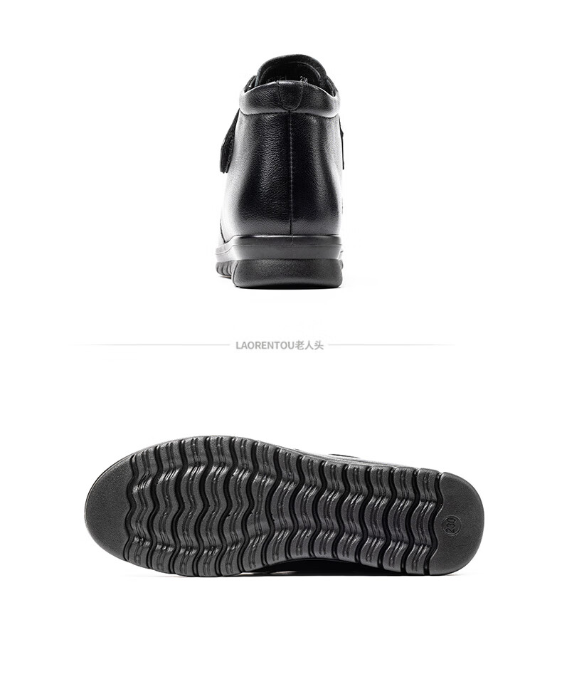 LAORENTOU women's single toe layer leather fashionable wedge workplace shoes plus velvet warm middle-aged mother's shoes LB53570 black 38