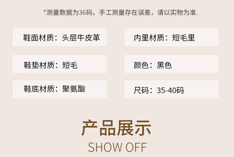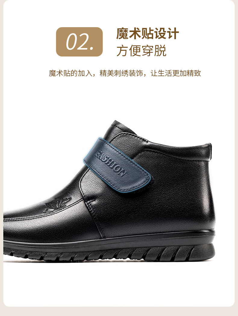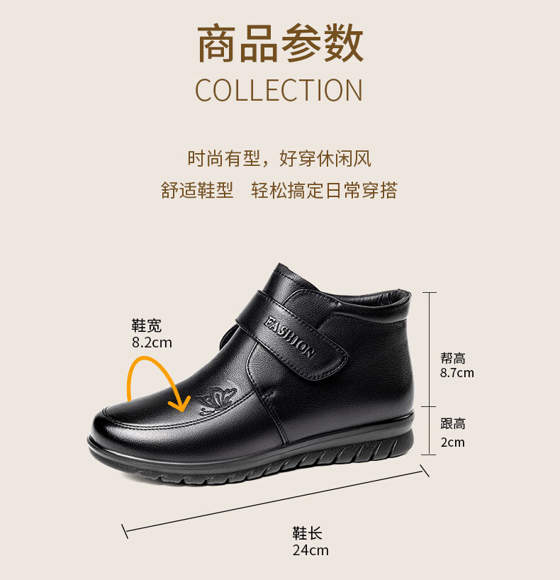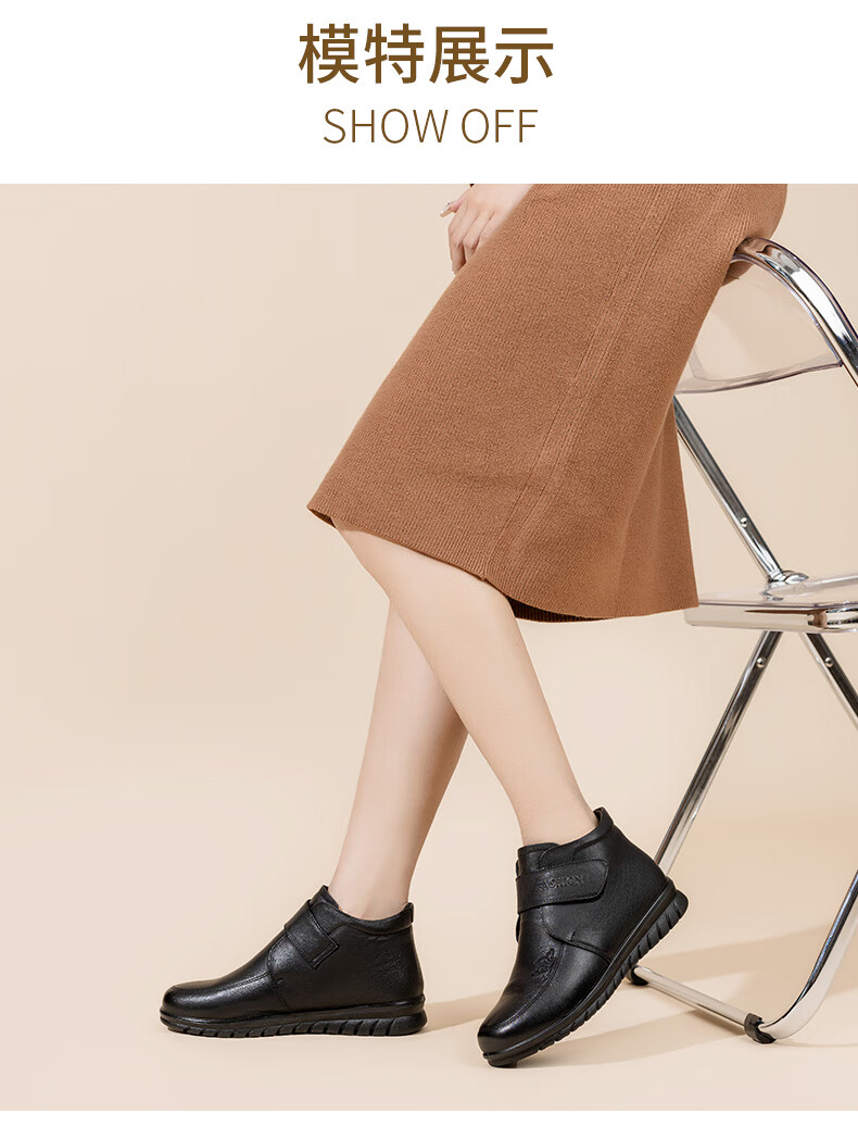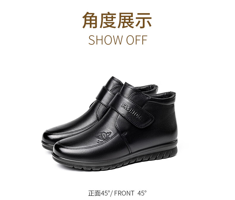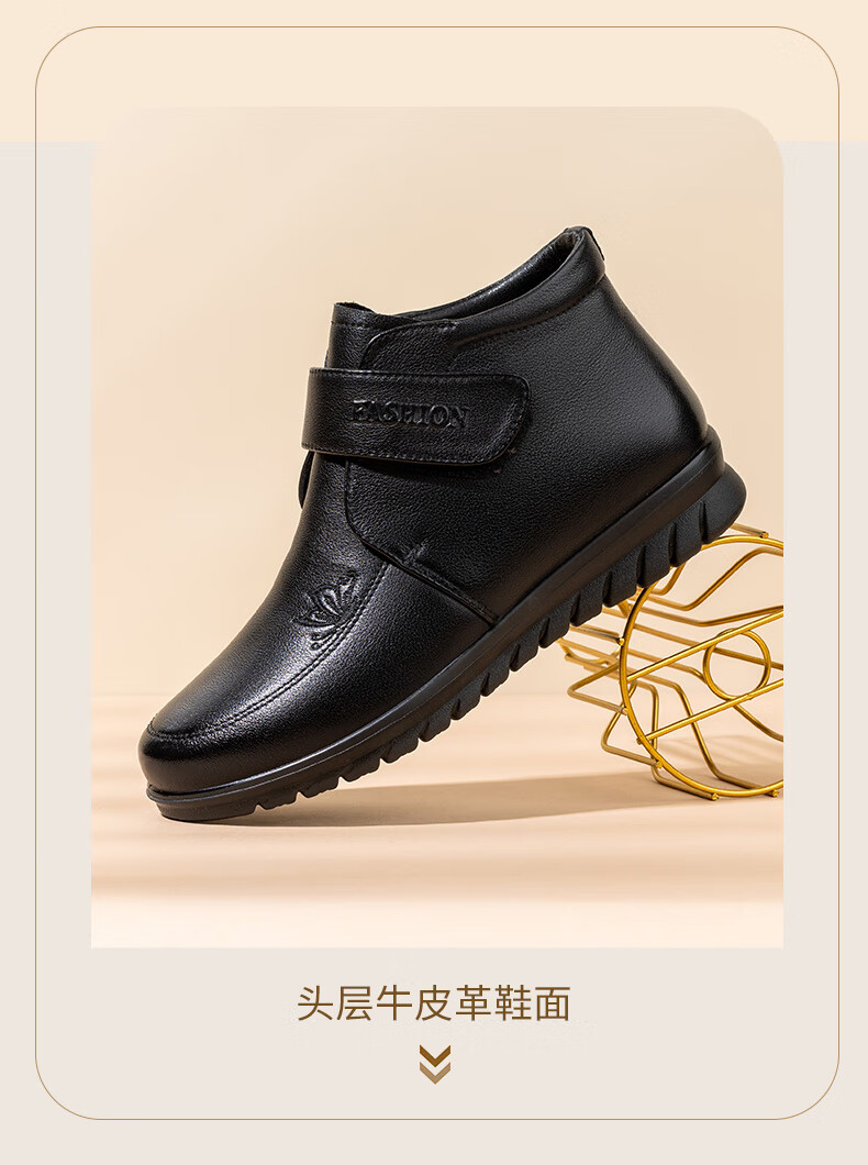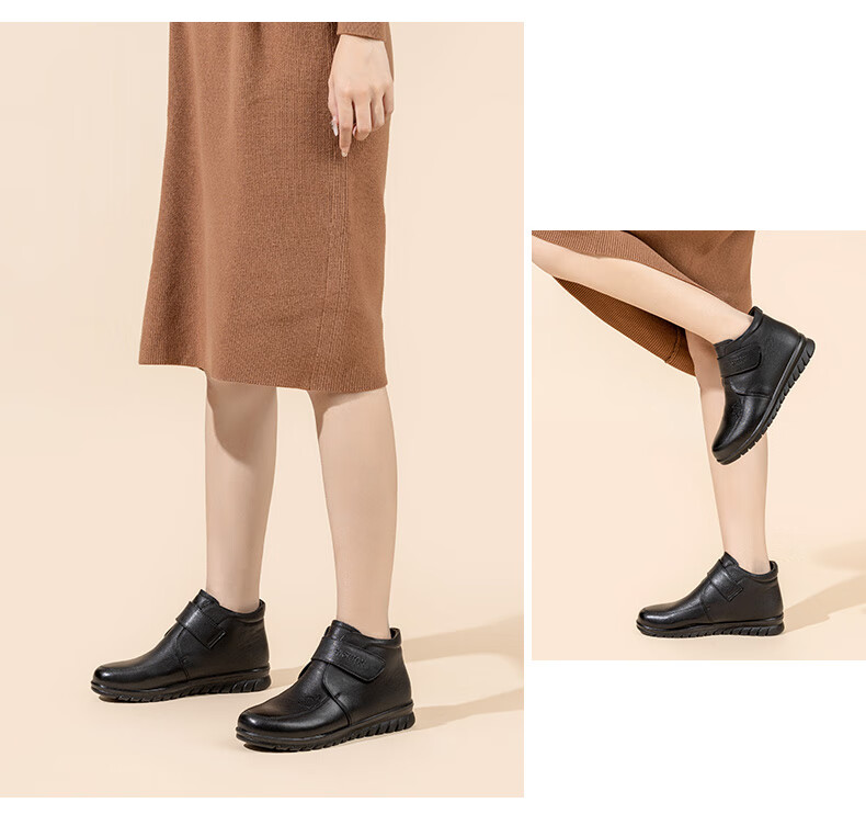 LAORENTOU women's single toe layer leather fashionable wedge workplace shoes plus velvet warm middle-aged mother's shoes LB53570 black 38