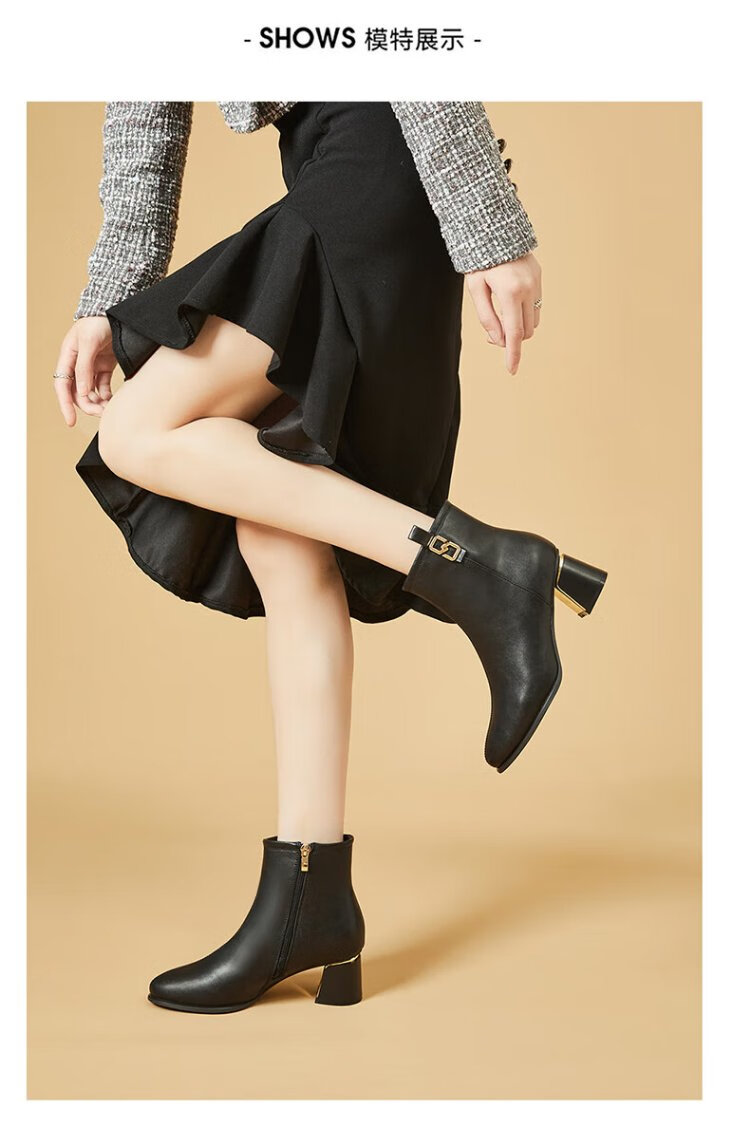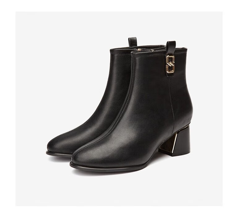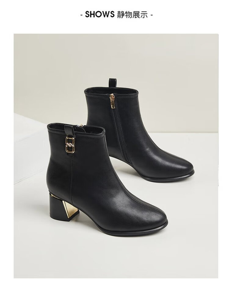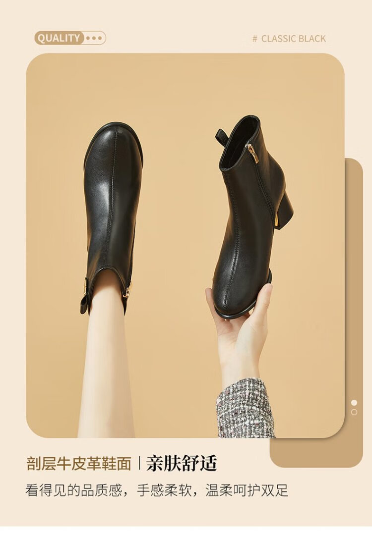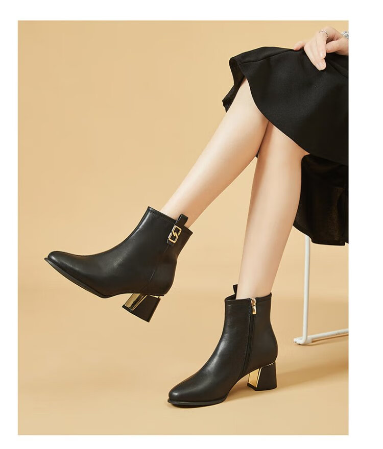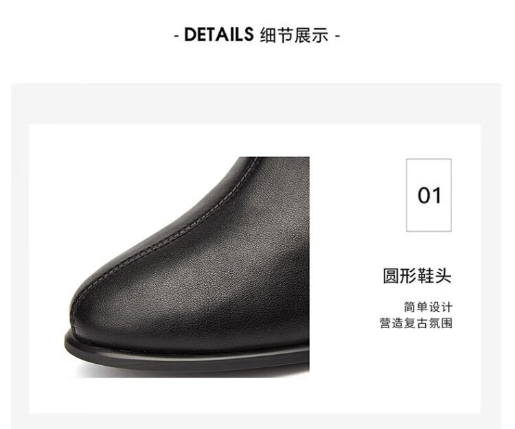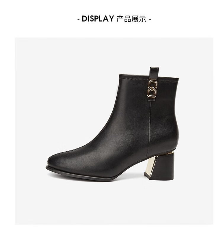 Daphne high heels women's French thick heel short boots heightening slimming leather boots for women 4622607023 black (plus velvet) 36