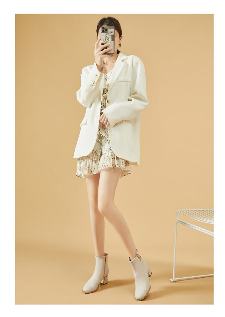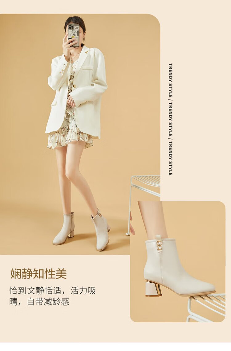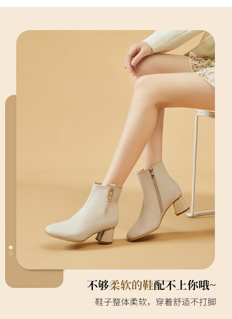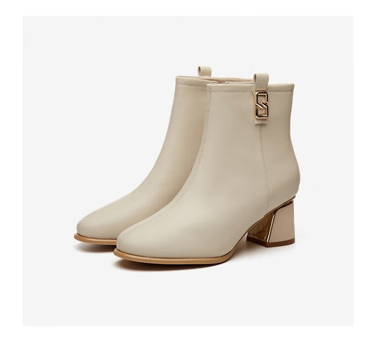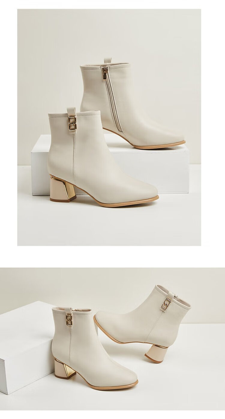 Daphne high heels women's French thick heel short boots heightening slimming leather boots for women 4622607023 black (plus velvet) 36