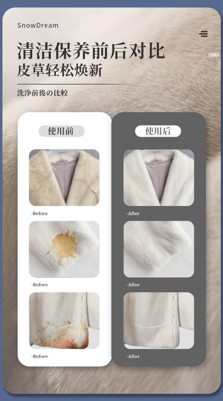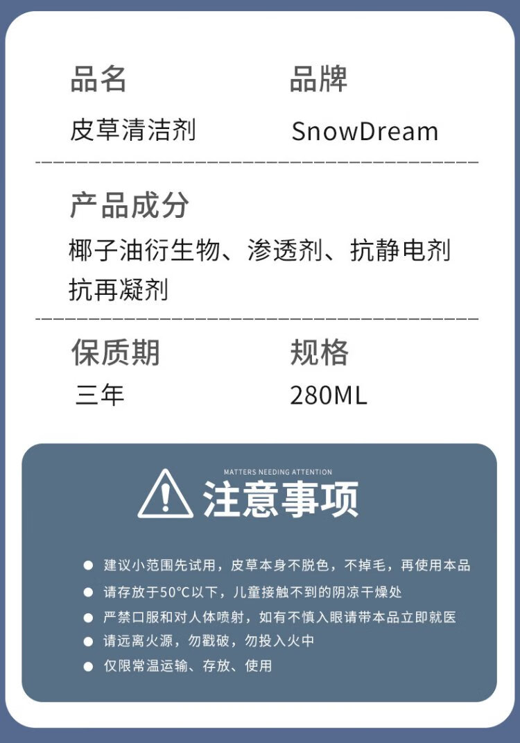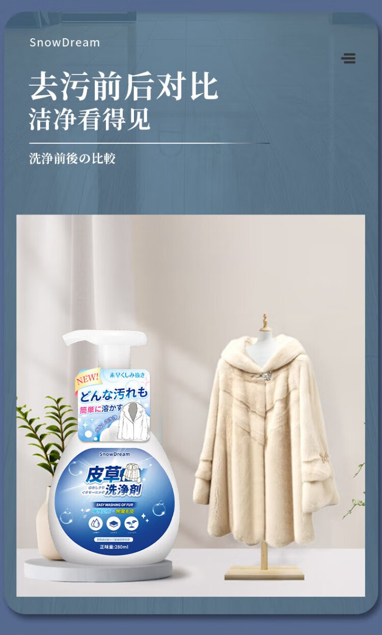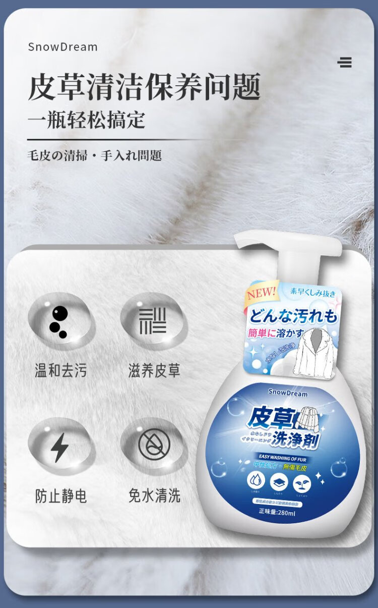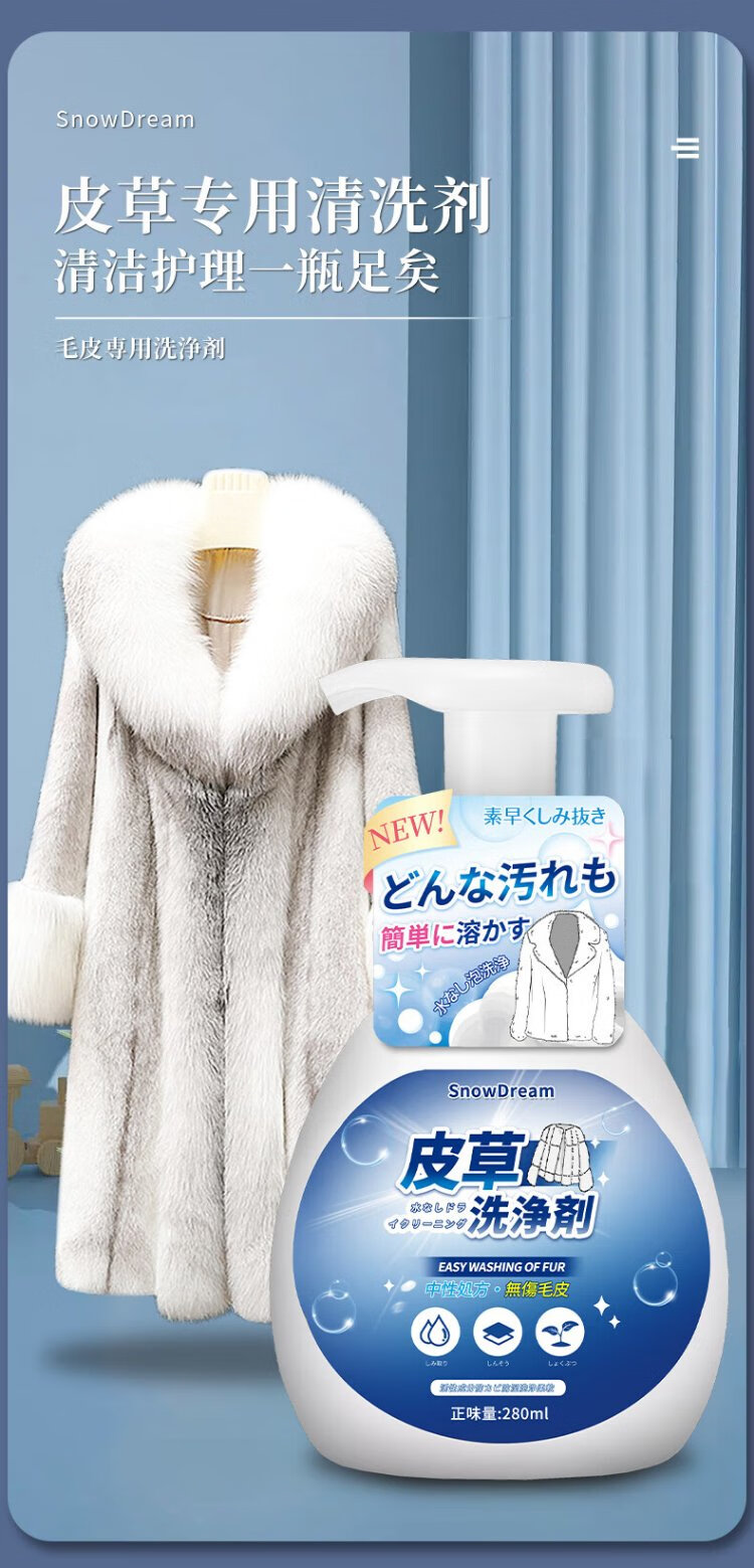 SnowDream Fur Dry Cleaning Agent 280ml Cleaning Agent Sheared Mink Fur Clothes Fur All-in-one Household Wash-Free Cleaning Agent