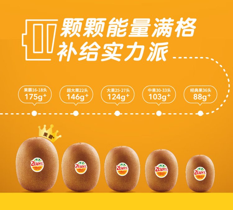 Zespri New Zealand Sunshine Golden Kiwi 18-piece Gift Box Selected Fruit Single Fruit Approximately 101-124g Kiwi Fruit