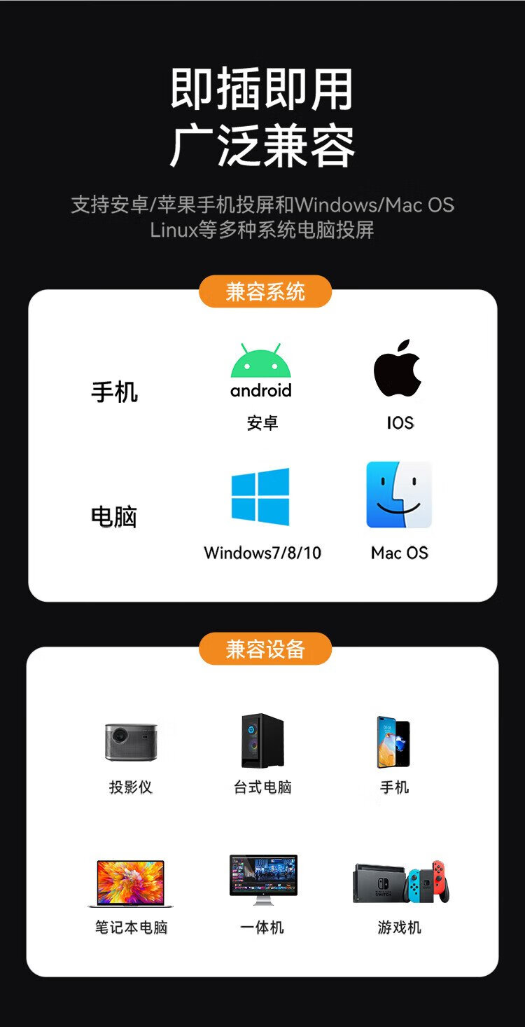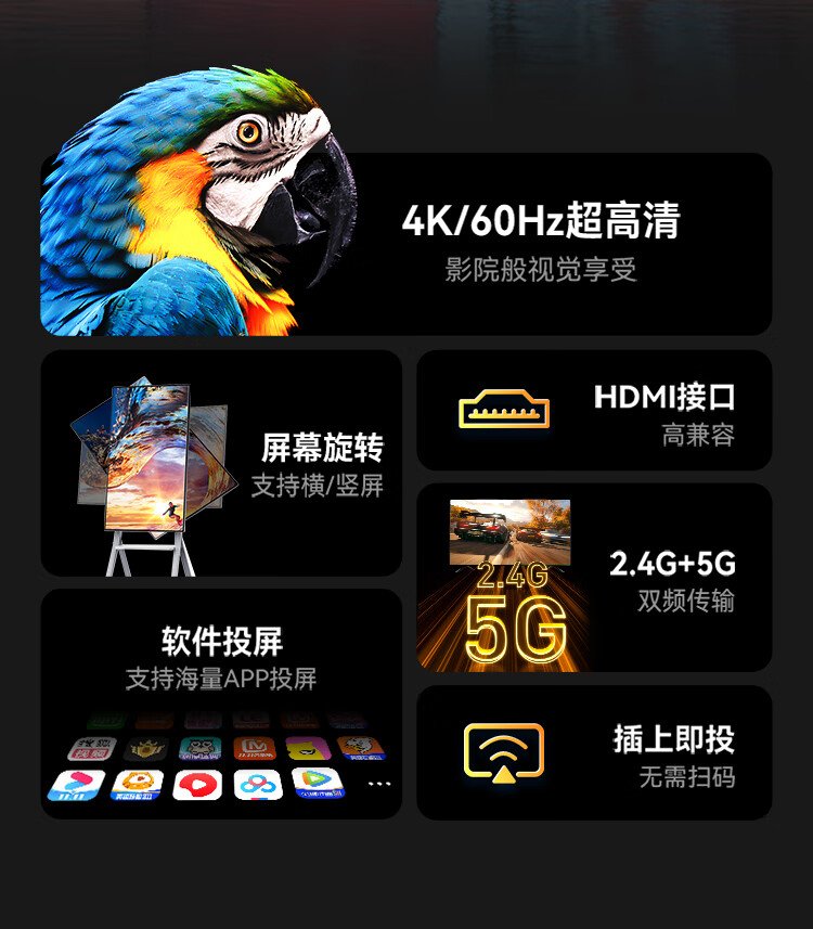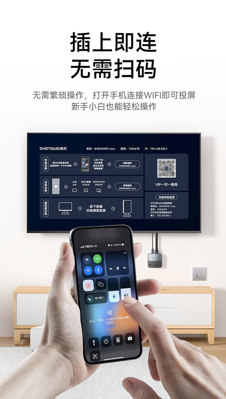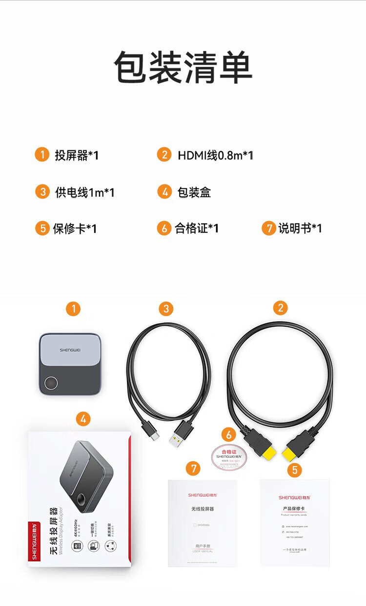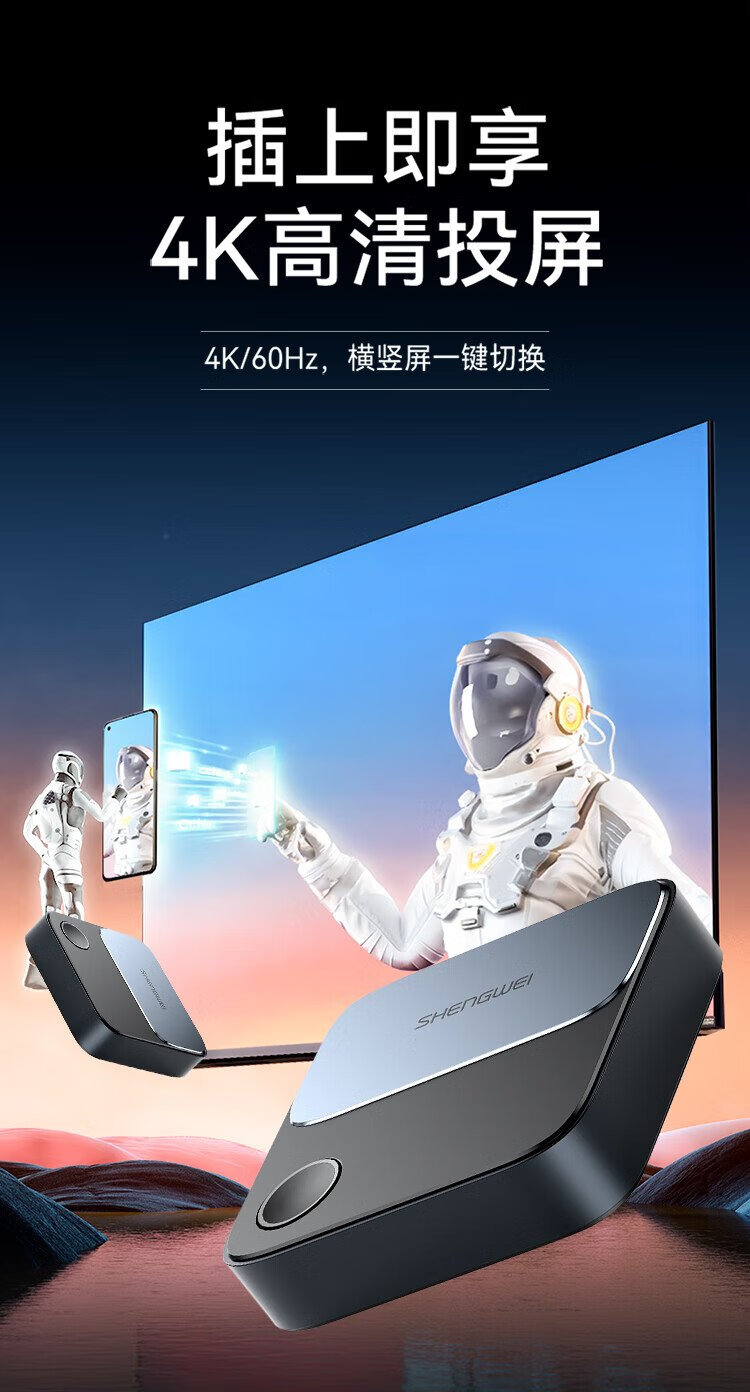 Shengwei (shengwei) wireless screen projector 4K60Hz high-definition HDMI horizontal and vertical screen switching artifact Android Apple mobile phone tablet laptop connected to TV DHD0006G