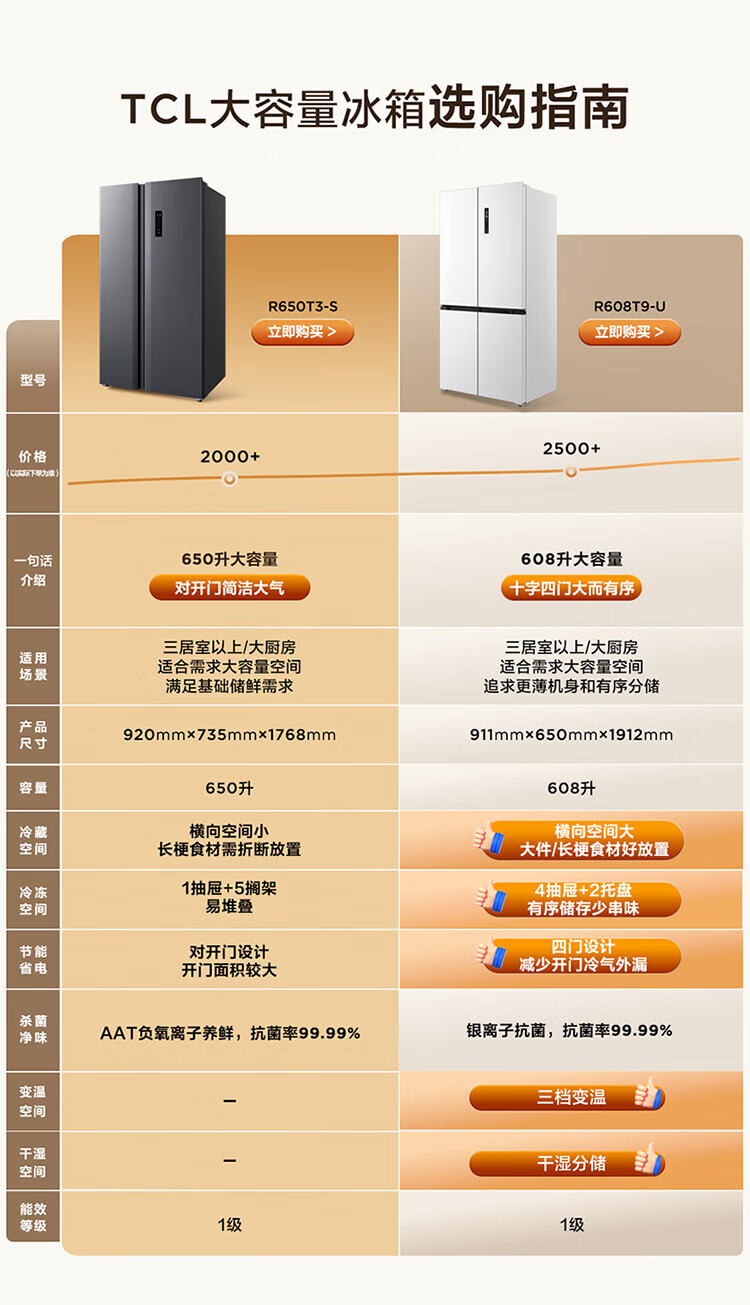 TCL 650 liter double door double door ultra-large capacity large freezer household refrigerator dual frequency conversion first-level energy efficiency energy saving national subsidy 20% air-cooled frost-free R650T3-S
