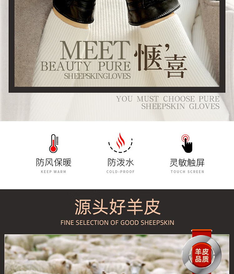 RED DRAGONFLY genuine leather gloves for women winter riding warm motorcycle driving plus velvet thickened touch screen sheepskin gloves